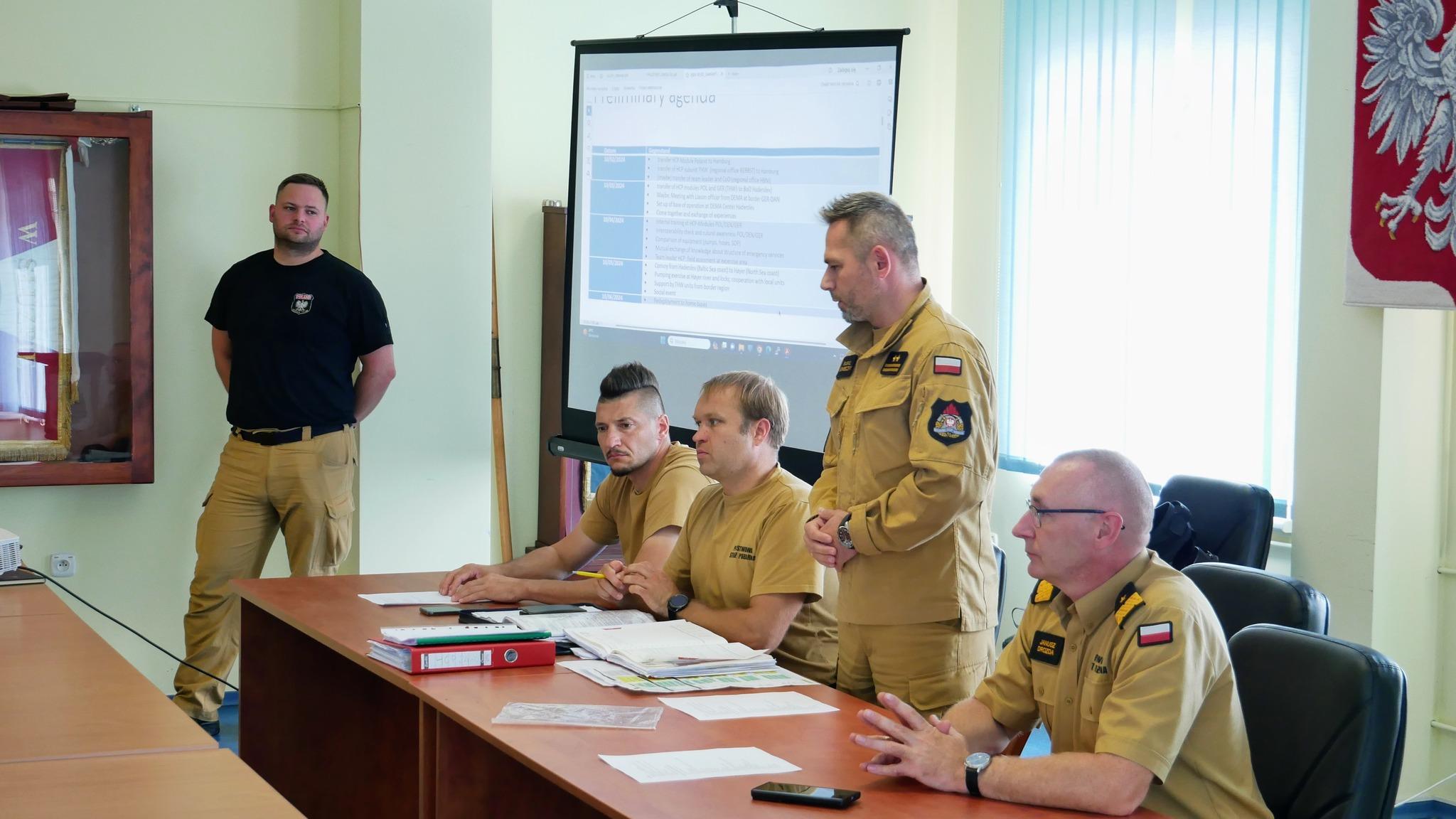 Po zakończonej inspekcji, odbyła się narada informacyjna dotycząca nadchodzących ćwiczeń międzynarodowych z udziałem modułu HCP w Danii, którą prowadził młodszy specjalista Wydziału Informatyki i Łączności mł. kpt. Zygfryd Zandecki.