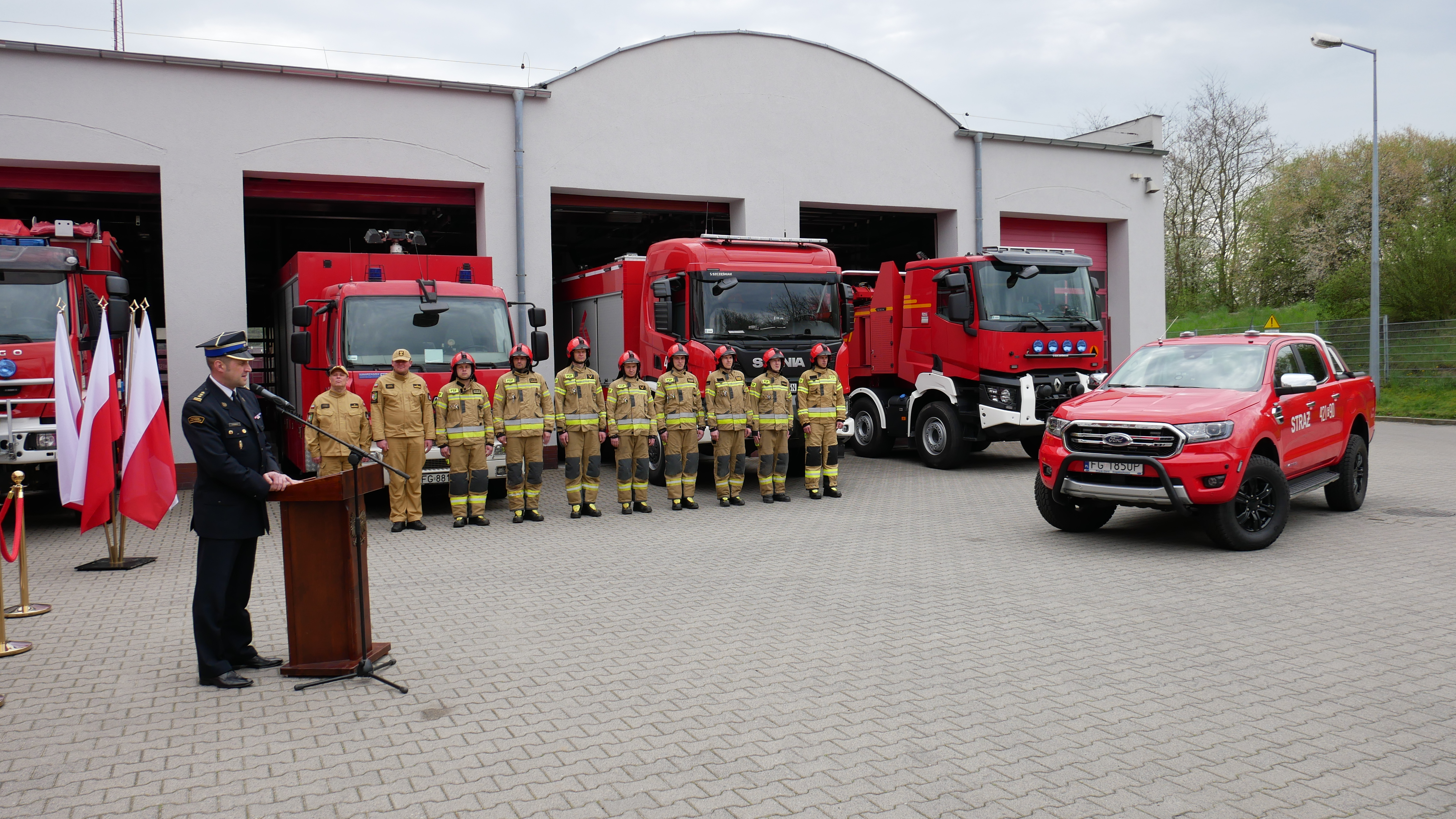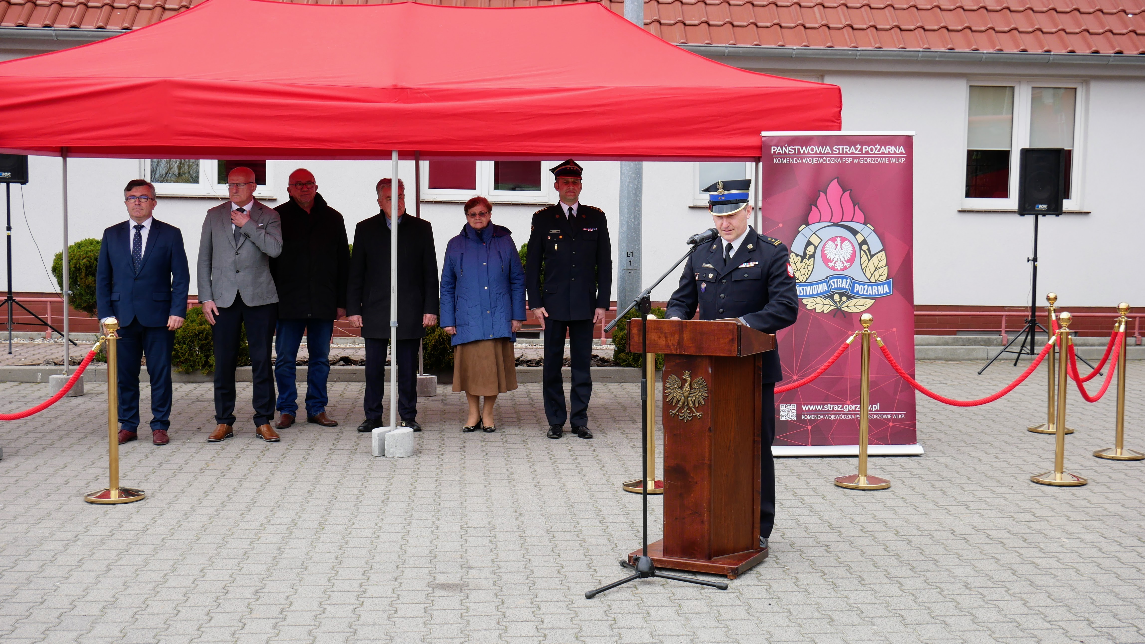 Zastępca Lubuskiego Komendanta Wojewódzkiego st. bryg. Krystian Kosela wraz z Wicewojewodą Lubuskim Wojciechem Perczakiem oraz Posłami na Sejm RP Elżbietą Płonką i Jackiem Kurzępą, wręczył akt przekazania pojazdu Komendantowi Powiatowemu PSP w Świebodzinie bryg. Mariuszowi Wójcikowi.
