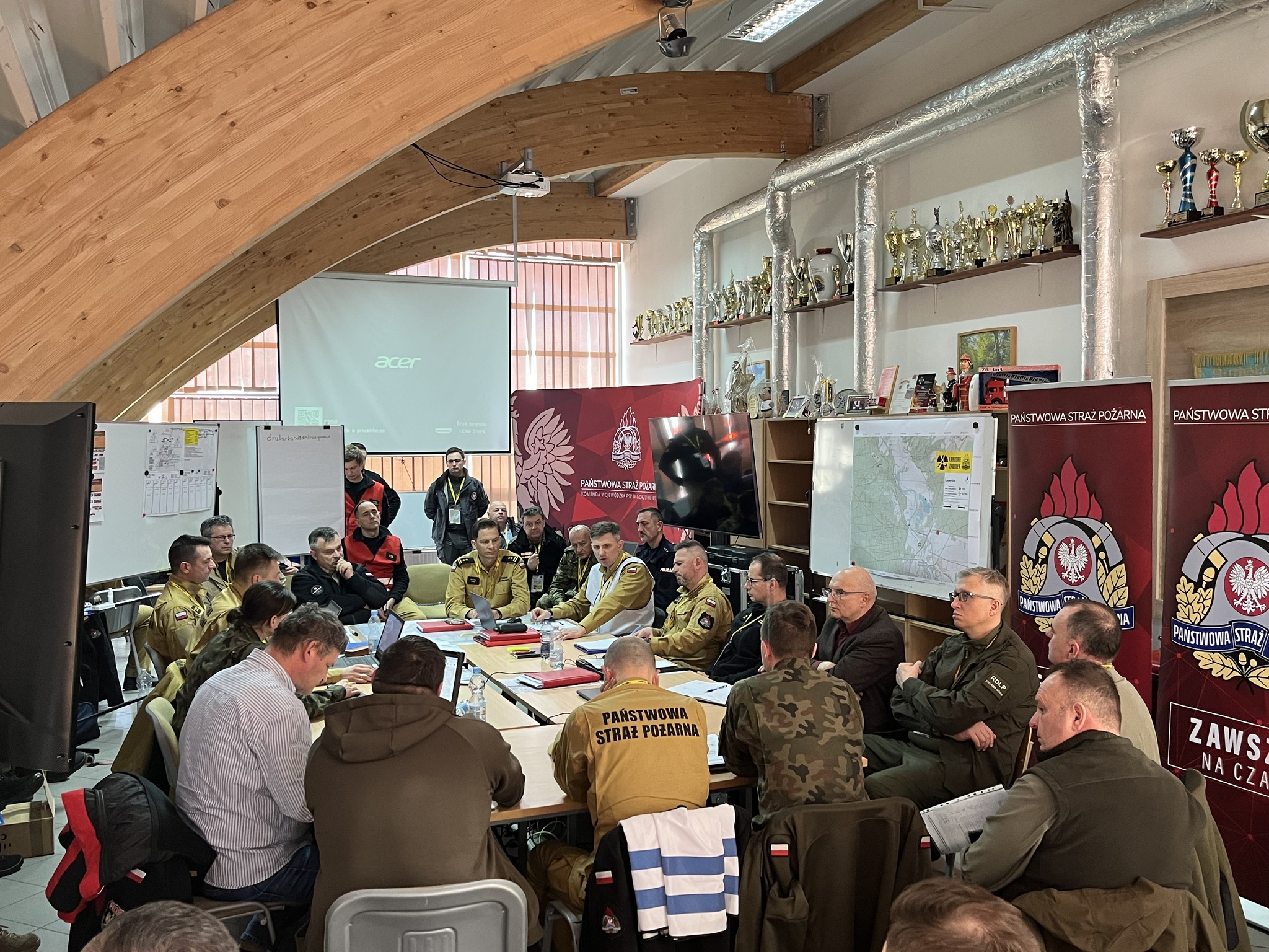Zgodnie z realizacją scenariusza ćwiczeń, po wydaniu decyzji Lubuskiego Komendanta Wojewódzkiego PSP, dziś (28 marca) o godz. 14.30 rozpoczął pracę sztab zarządzający zdarzeniem. Celem pracy sztabu jest neutralizacja znalezionych na terenie poniemieckiej fabryki broni i amunicji w pobliżu Nowogrodu Bobrzańskiego materiałów niebezpiecznych, w postaci niezidentyfikowanych substancji zmagazynowanych w 2 mogilnikach.