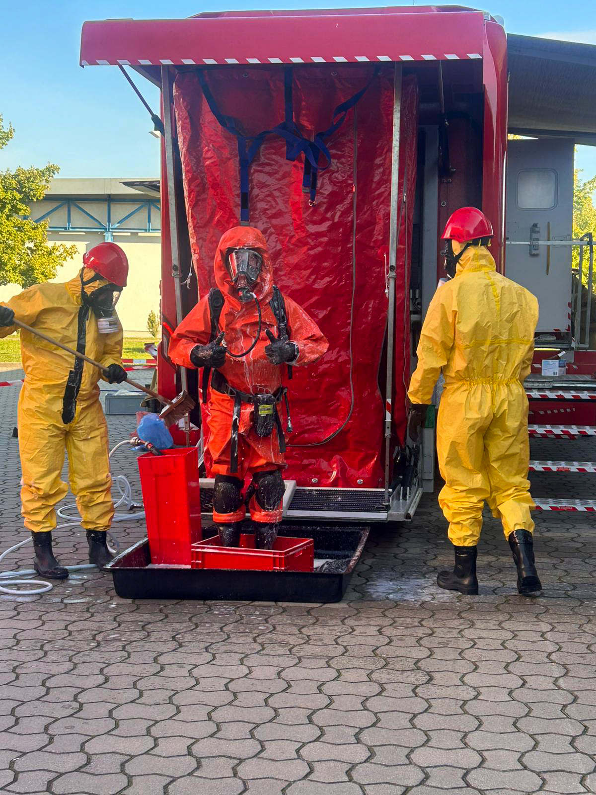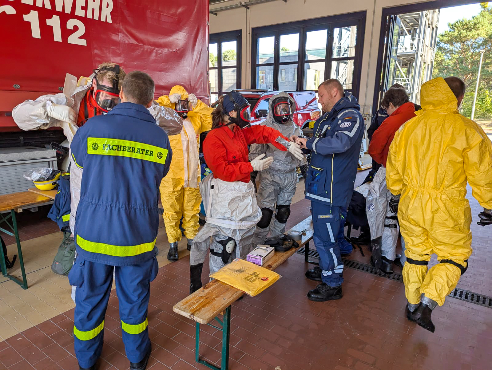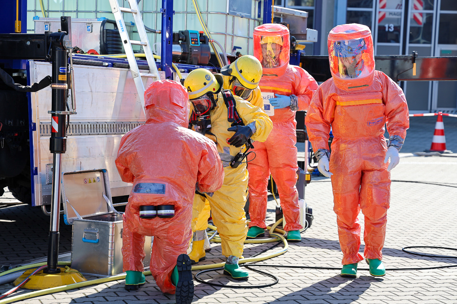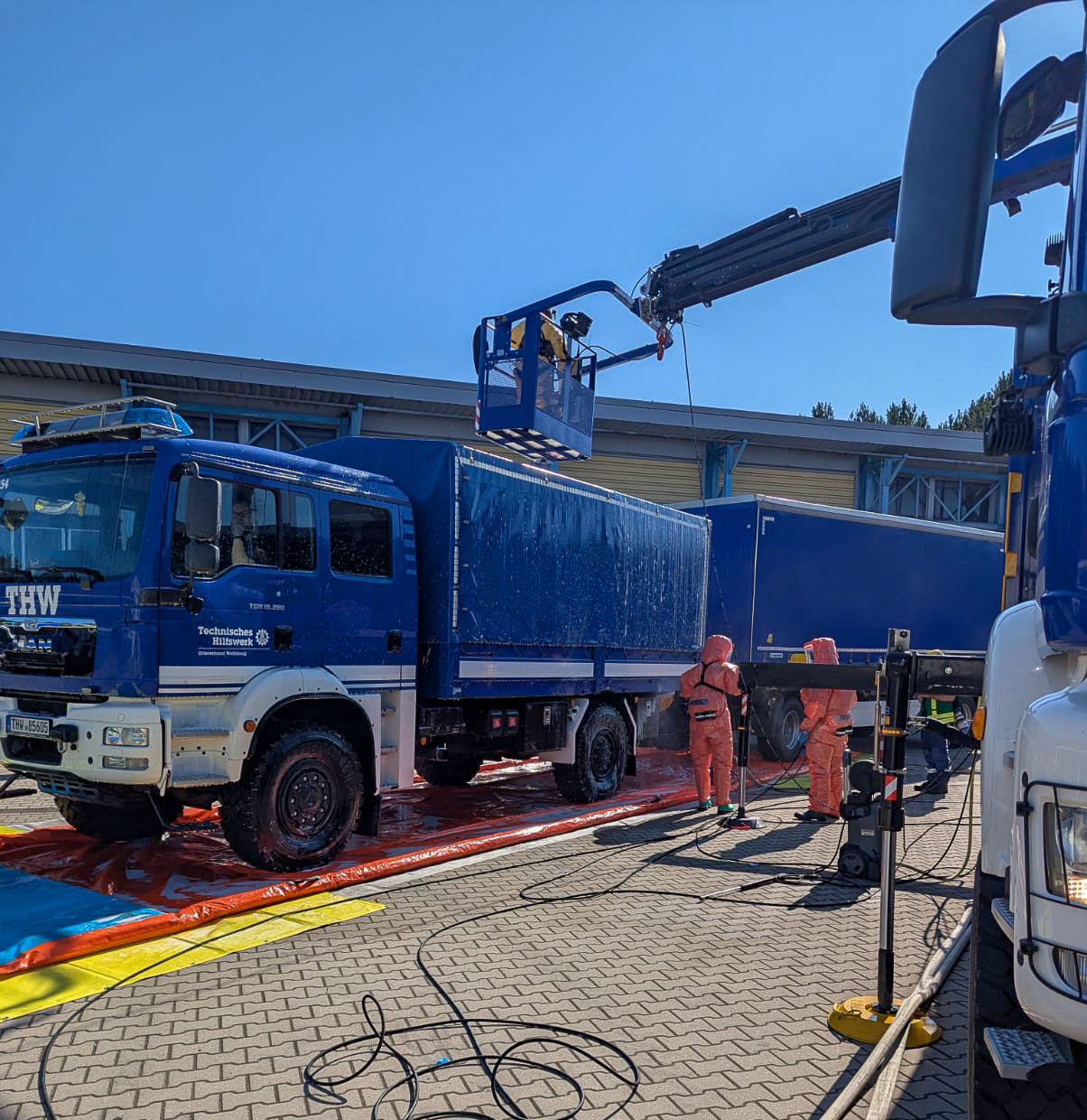Członkowie Federalnej Służby Ratownictwa Technicznego mieli za zadanie sprawić kompletną linię dekontaminacji pojazdów oraz ludzi wykorzystywaną podczas działań dekontaminacyjnych w zdarzeniach masowych. W dalszej części ćwiczenia należało przeprowadzić kompletną dekontaminację sprzętu skażonego biologicznie.
