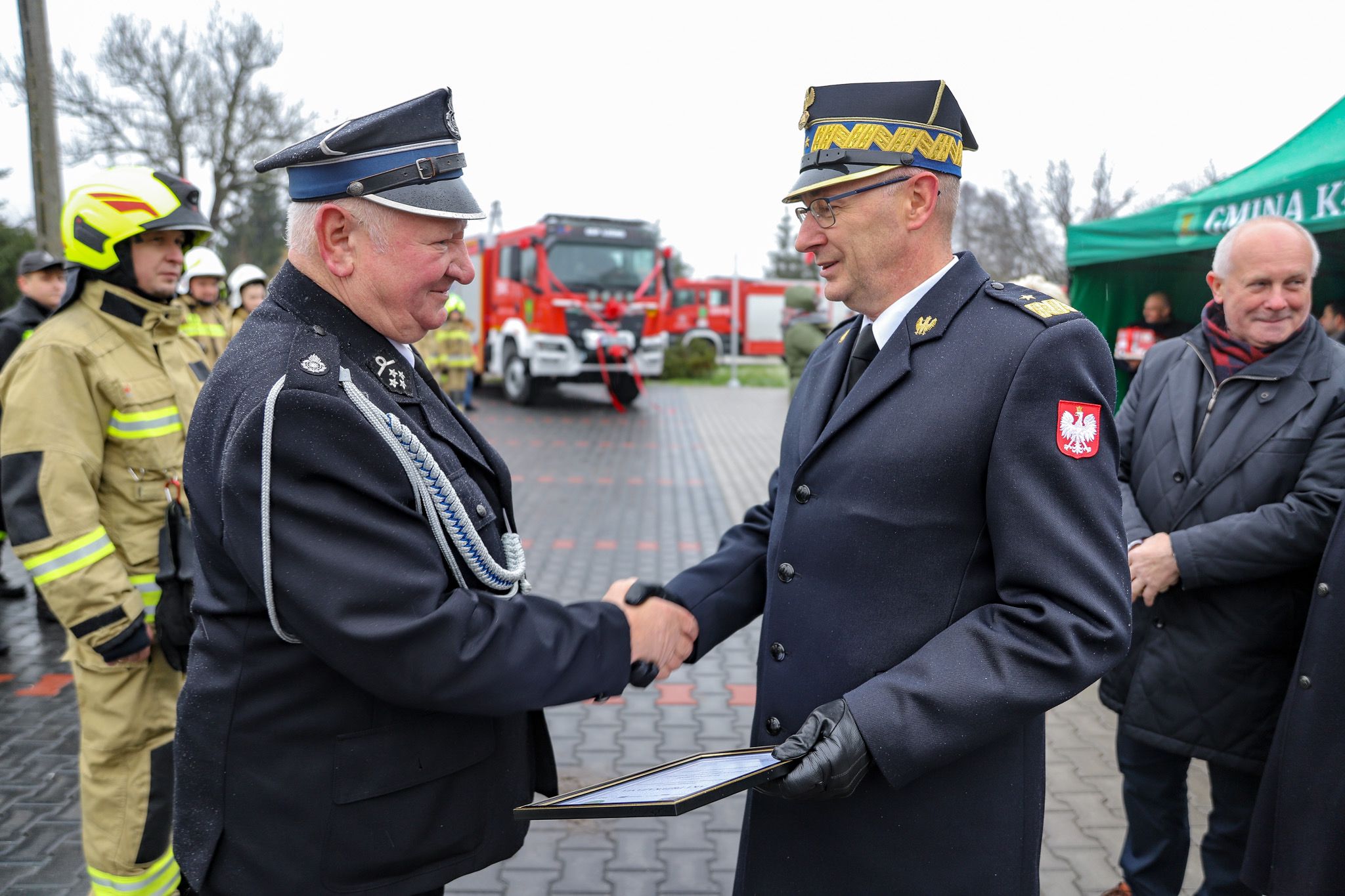 Akt przekazania pojazdu wręczył strażakom z OSP Łośno - lubuski komendant wojewódzki PSP nadbryg. Janusz Drozda.