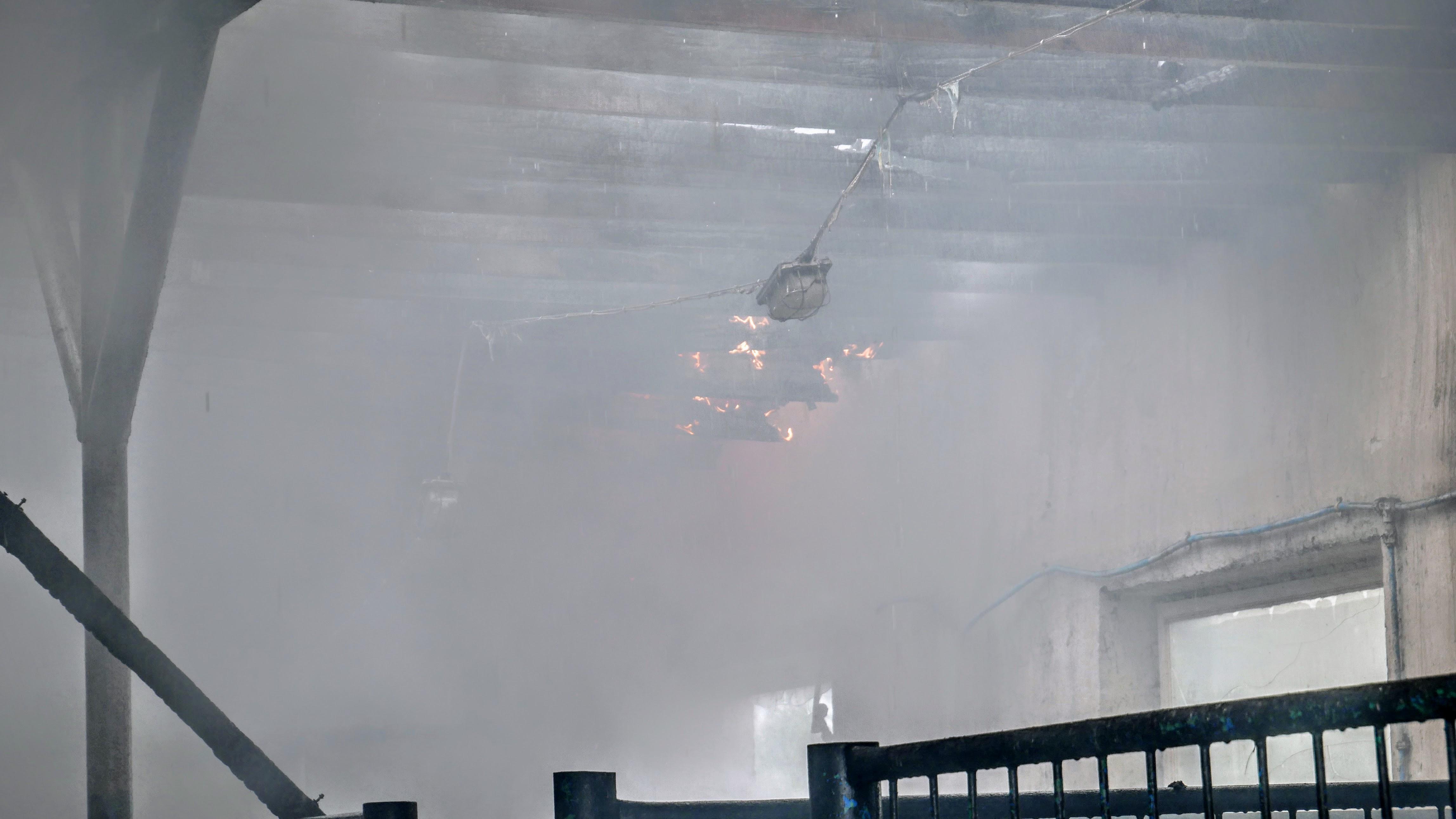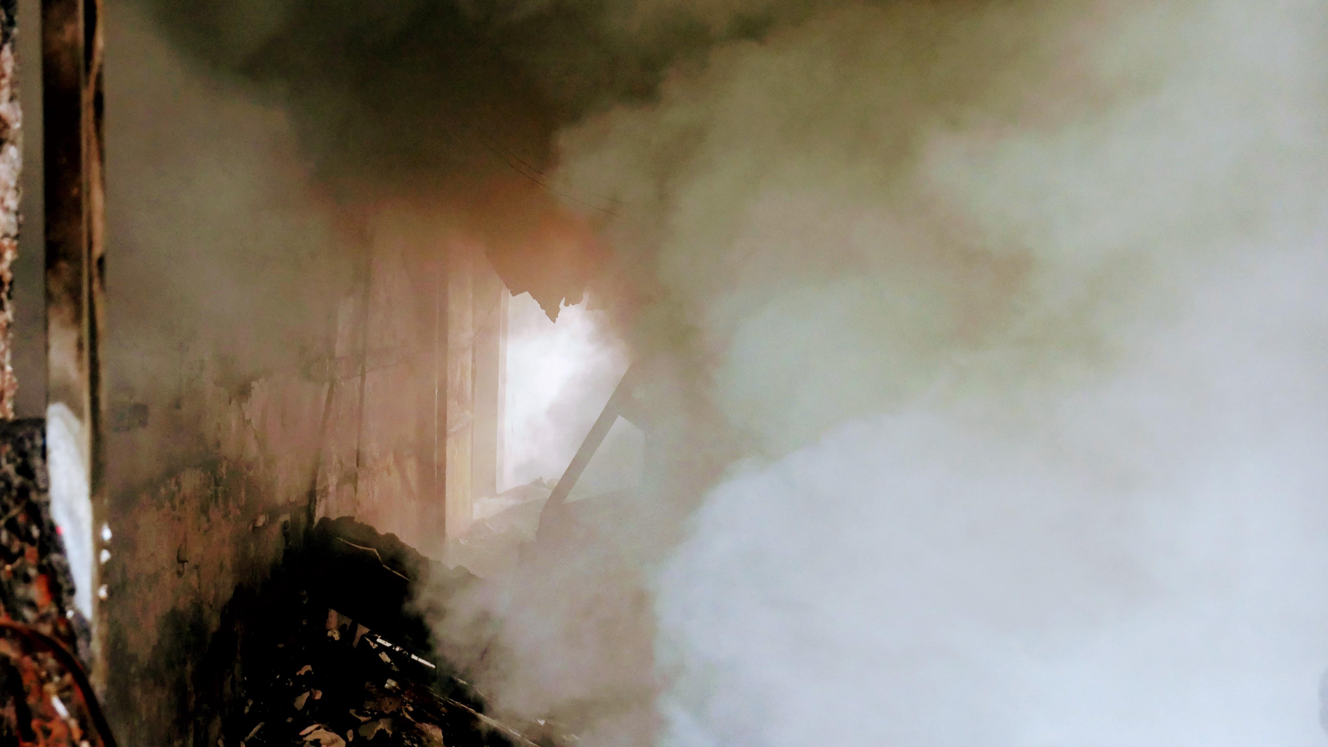 W wyniku dużej kumulacji gazów pożarowych, wysokiej temperatury i dużej przestrzeni objętej pożarem, szybko doszło do zawalenia dachu oraz jednej ze ścian wewnętrznych budynku.