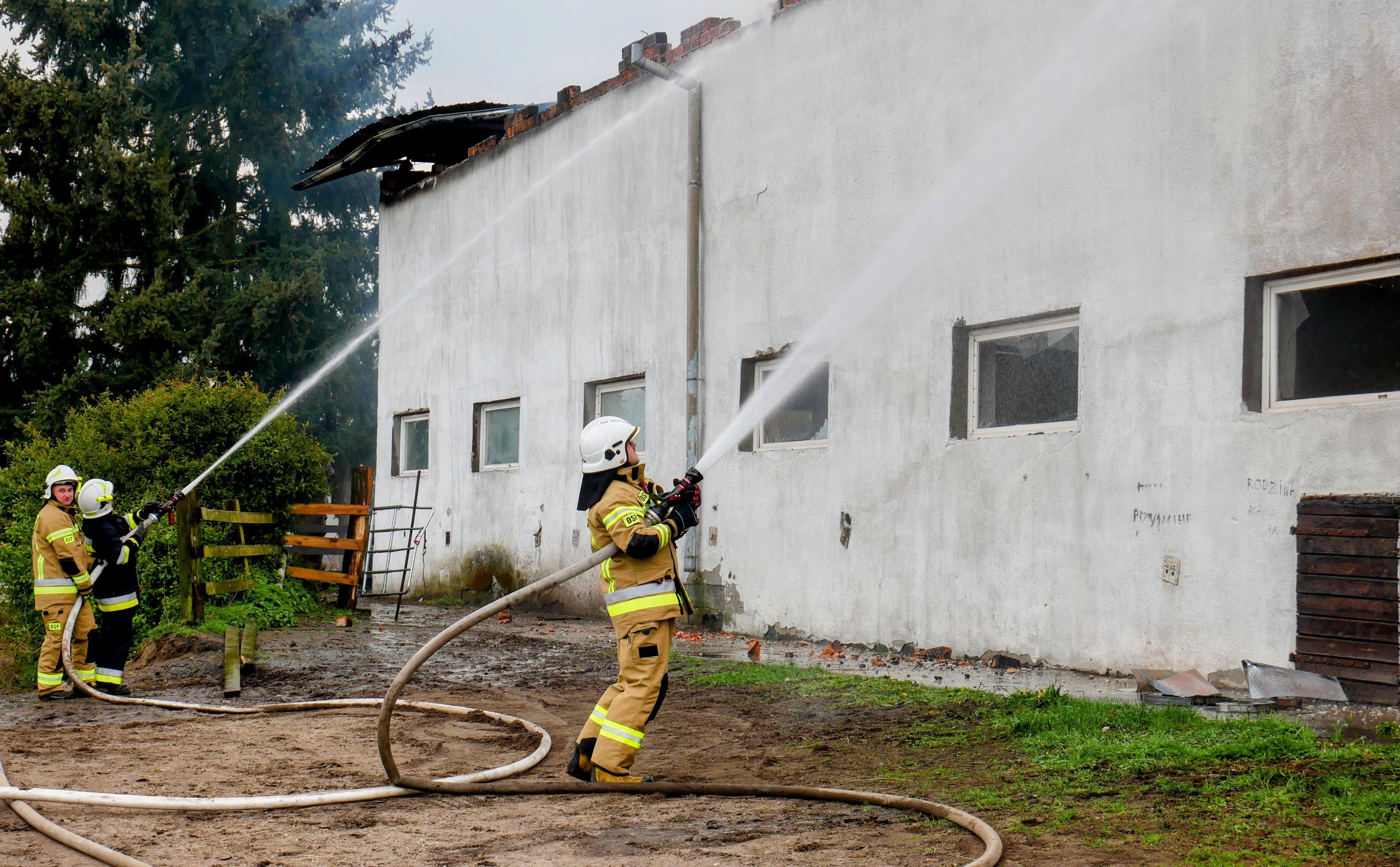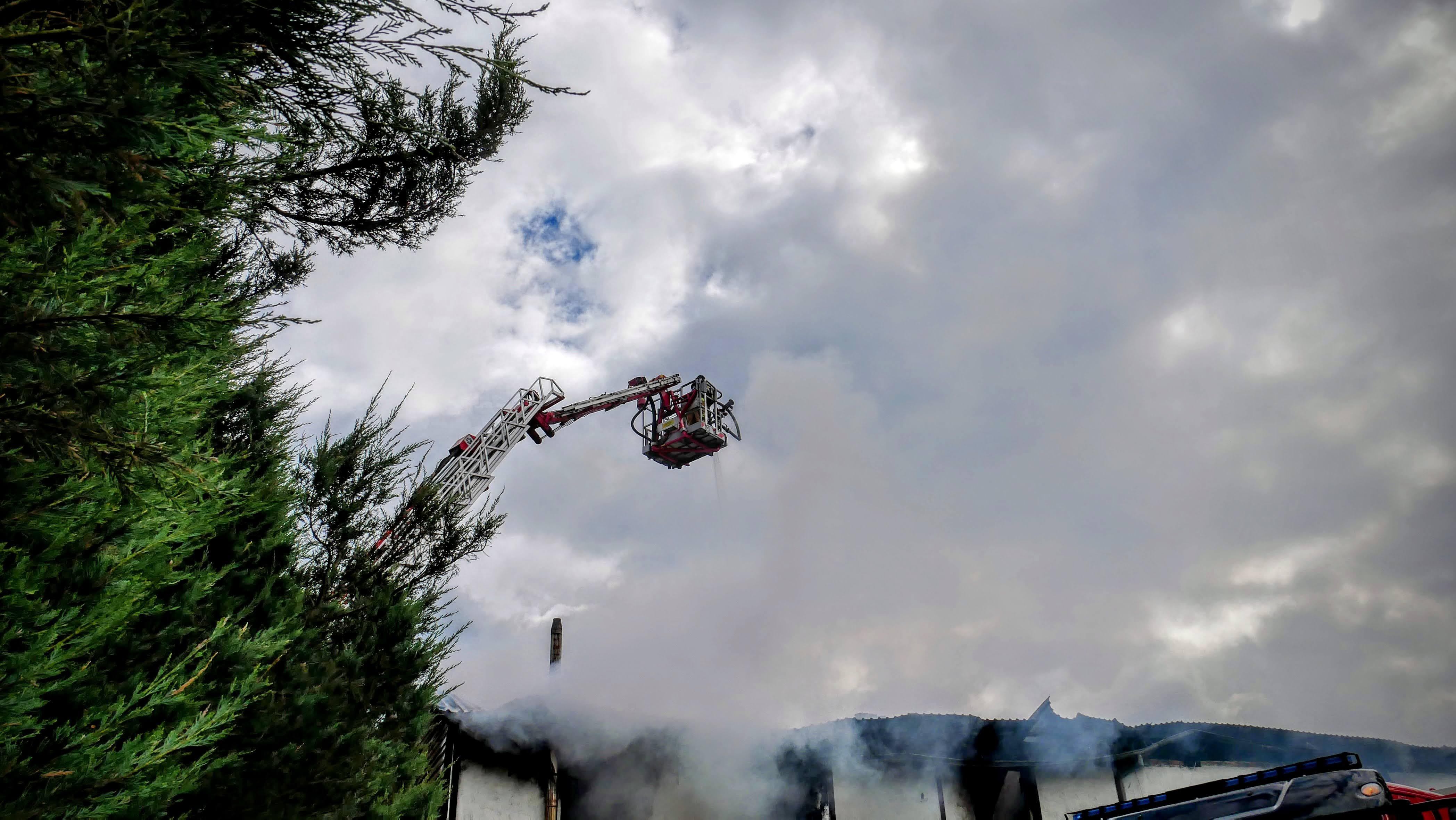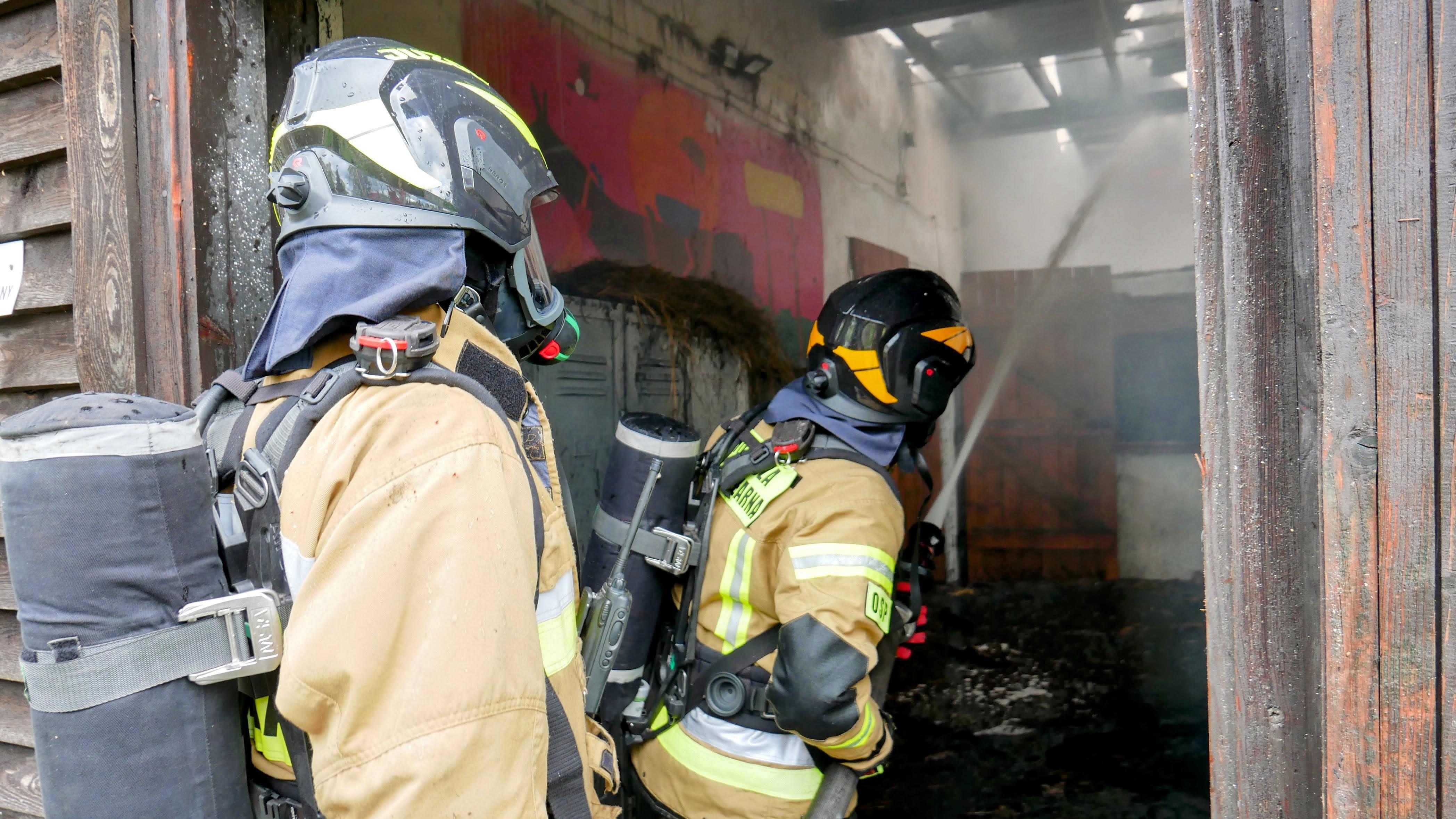 Strażacy szybko przystąpili do działań gaśniczych, jednak ze względu na konstrukcję budynku, ognień błyskawicznie rozprzestrzenił się na całą powierzchnię drewnianego poddasza, w którym magazynowane było siano.
