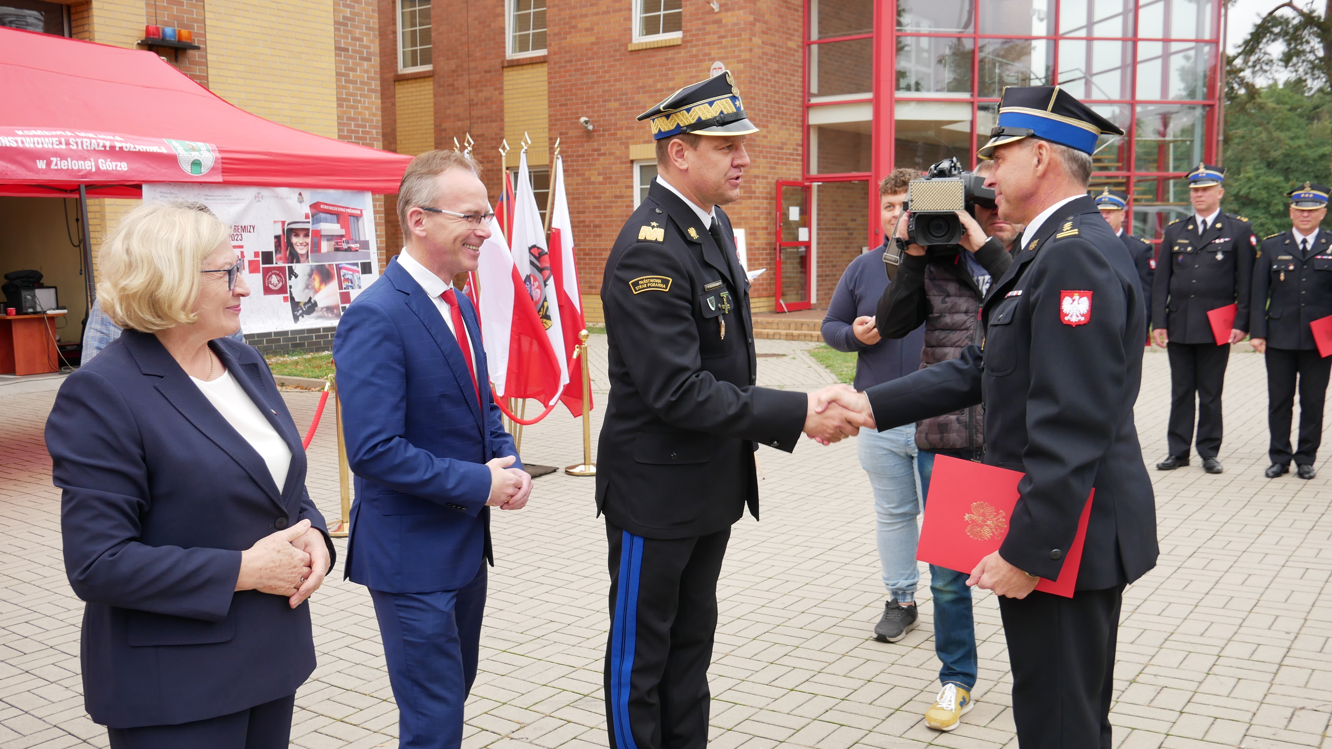 6 października 2023r., na placu przed Jednostką Ratowniczo-Gaśniczą nr 2 w Zielonej Górze odbyła się uroczystość przekazania agregatów prądotwórczych dla 9 lubuskich Komend Państwowej Straży Pożarnej oraz nowego samochodu gaśniczego dla Komendy Miejskiej PSP w Zielonej Górze.