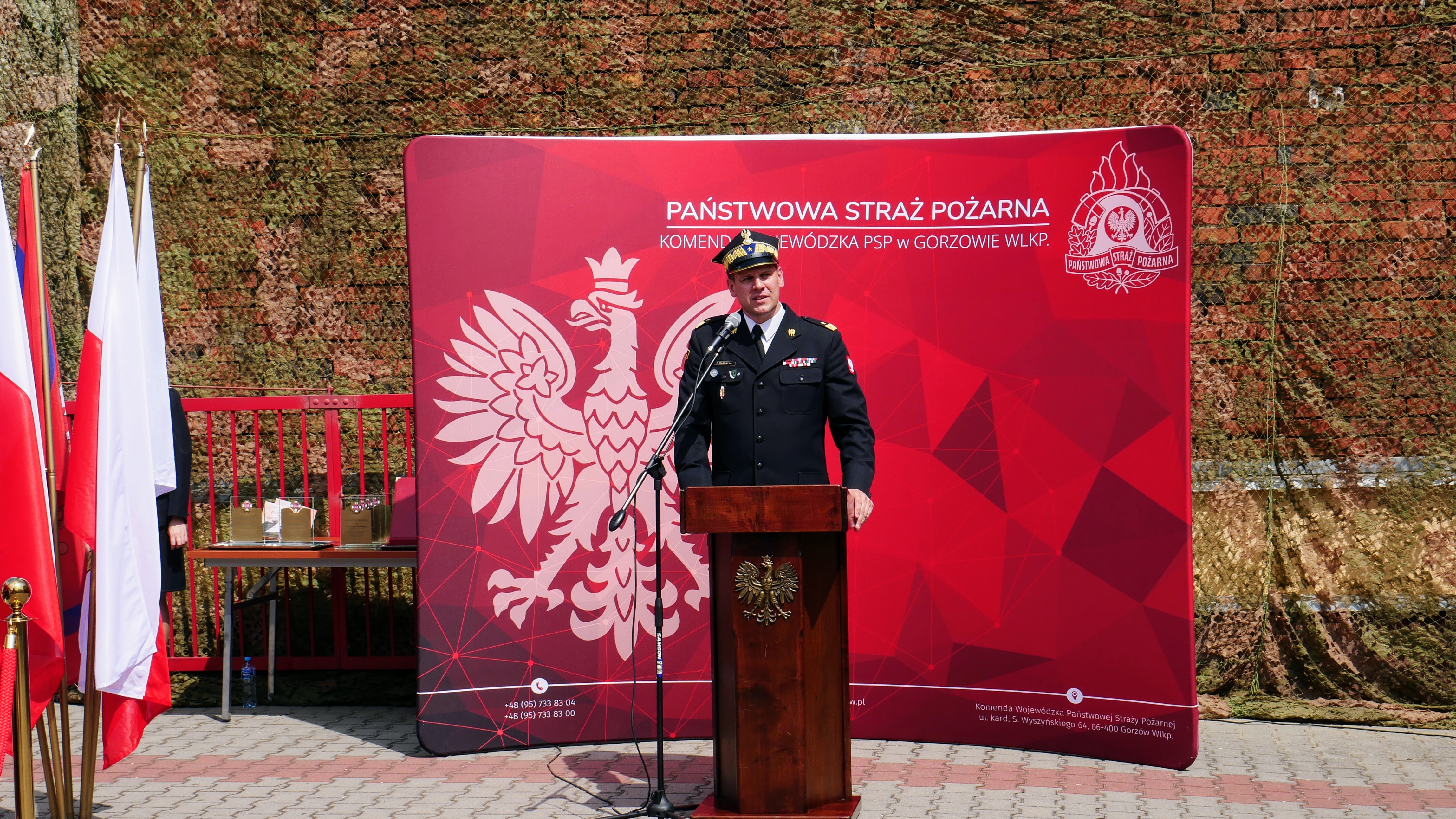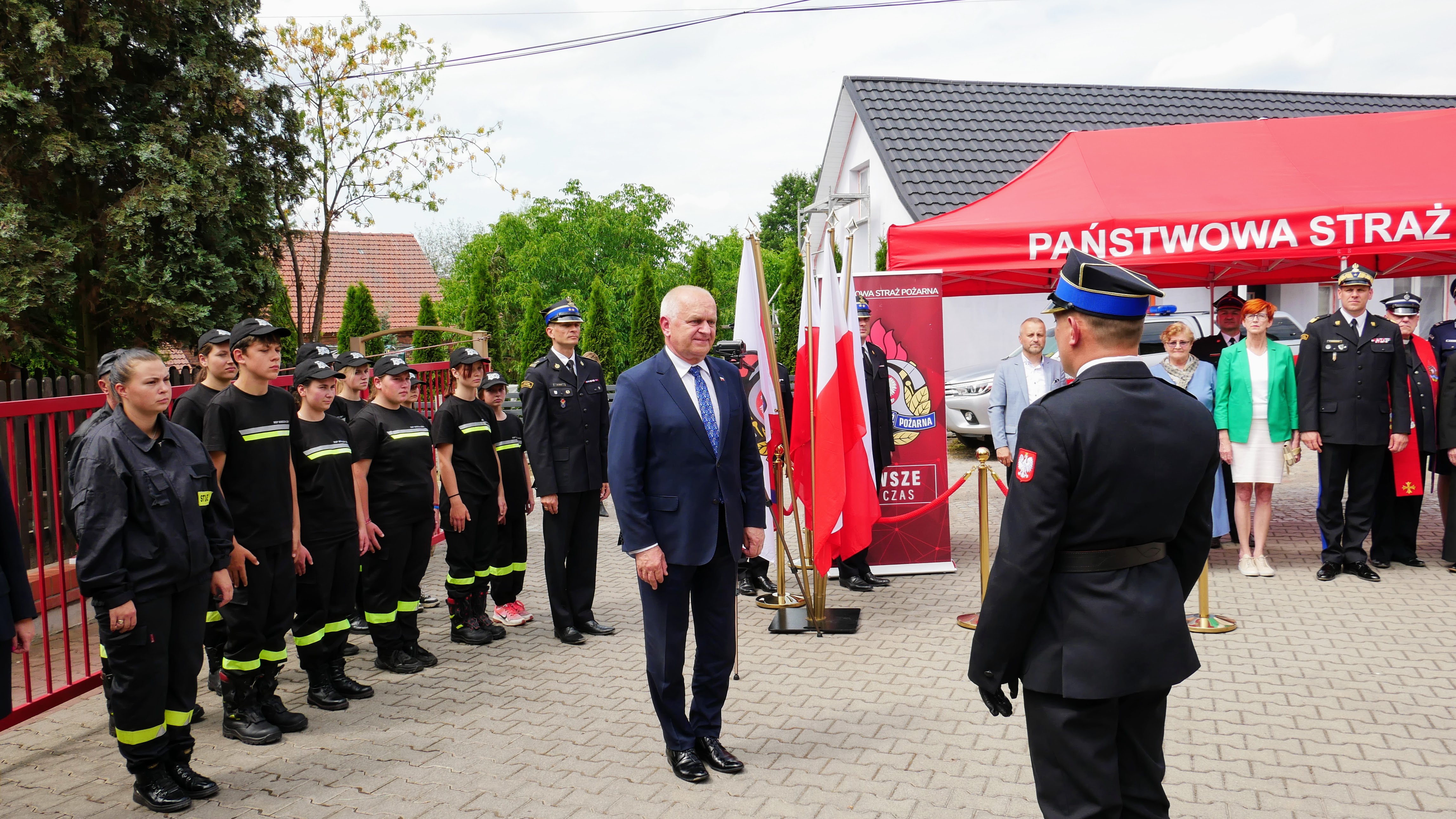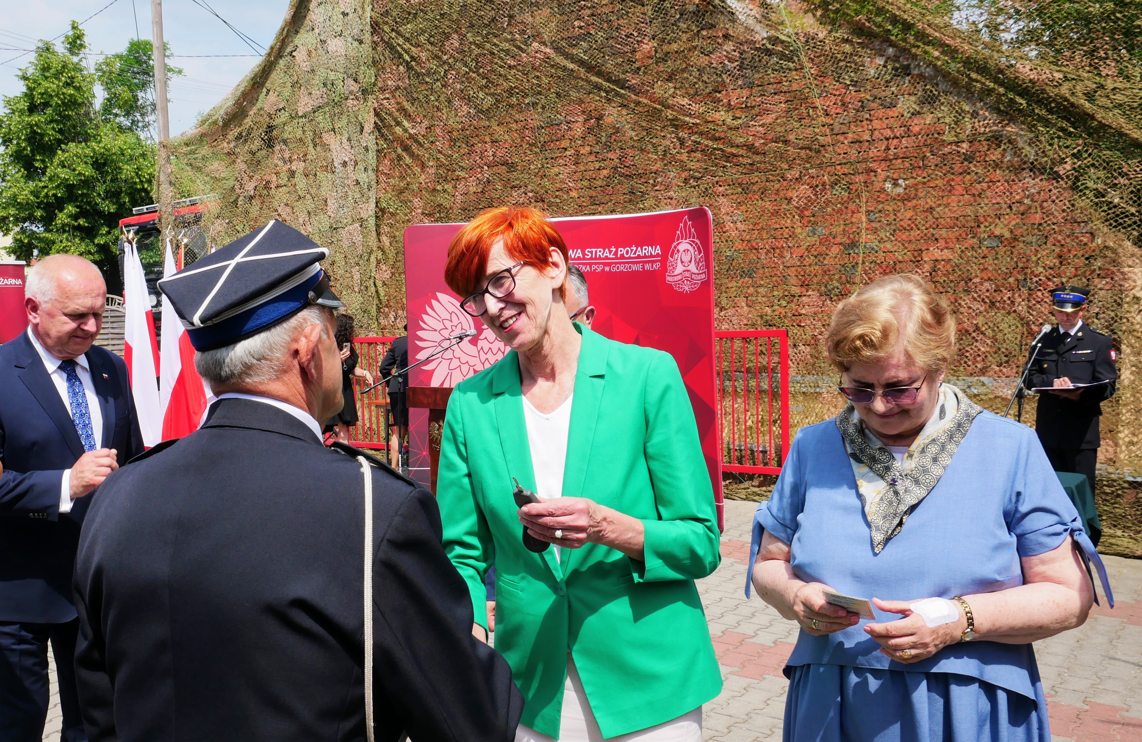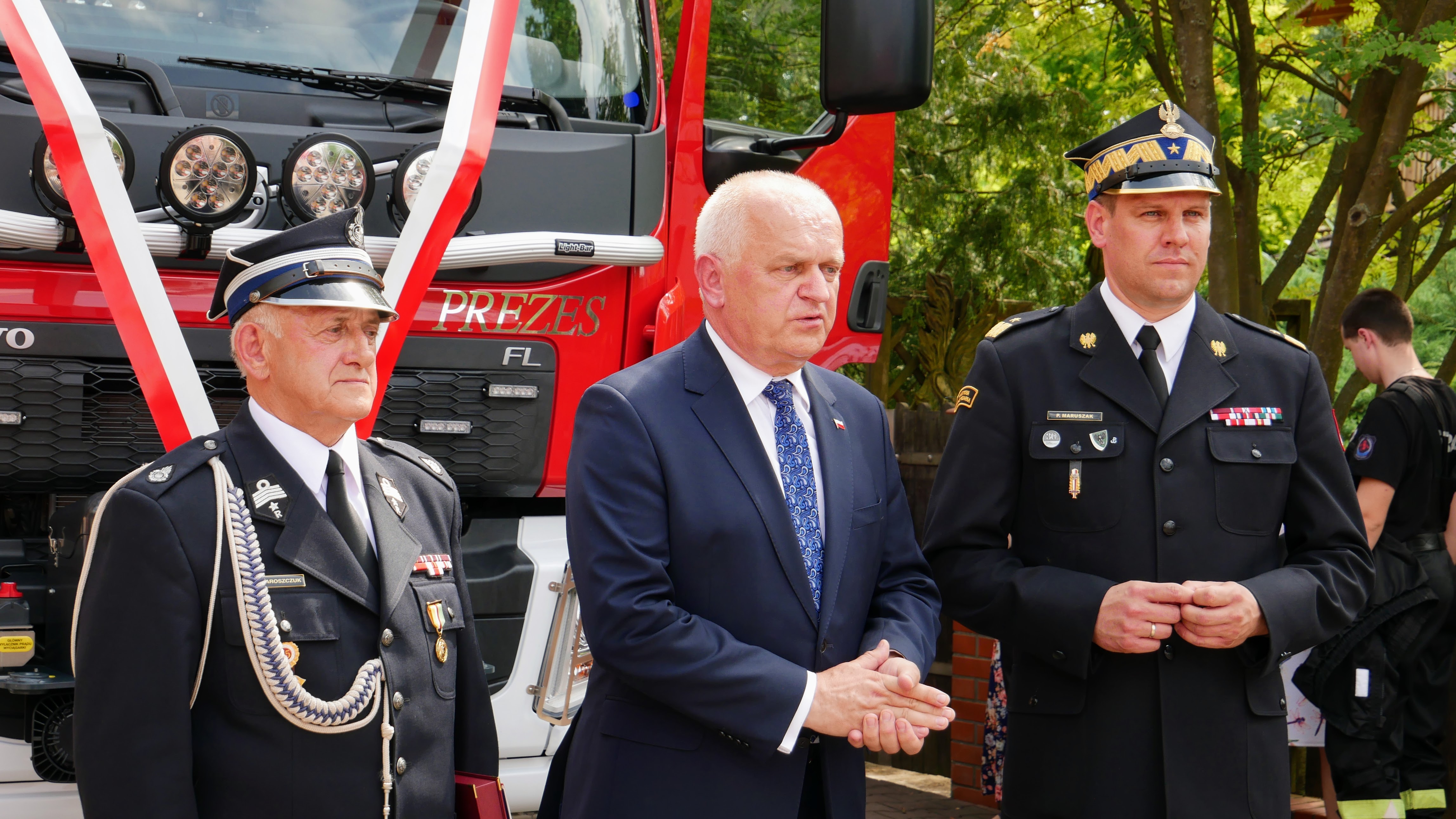 Lubuski Komendant Wojewódzki PSP nadbryg. Patryk Maruszak wraz z Wojewodą Lubuskim Władysławem Dajczakiem, Posłem do Parlamentu Europejskiego Elżbietą Rafalską, Posłem na Sejm RP Elżbietą Płonką i Prezesem Zarządu Wojewódzkiego Funduszu Ochrony Środowiska i Gospodarki Wodnej w Zielonej Górze Mariuszem Herbutem, wręczył akt przekazania pojazdu Prezesowi OSP Mirocin Górny dh Andrzejowi Staroszczukowi.