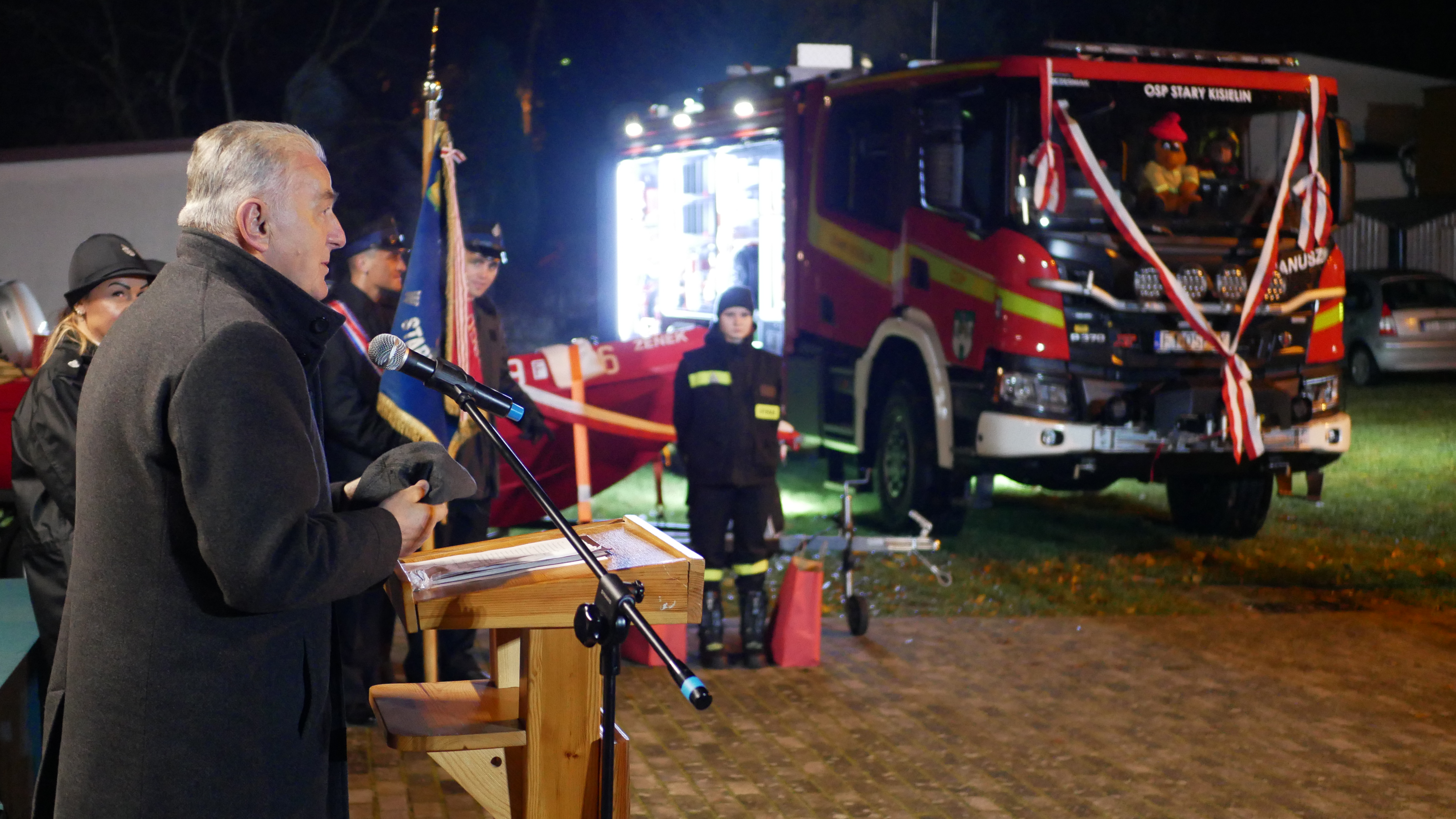W sobotni wieczór, na placu wewnętrznym OSP Stary Kisielin, Zastępca Lubuskiego Komendanta Wojewódzkiego Państwowej Straży Pożarnej st. bryg. Janusz Drozda wraz z Wicewojewodą Lubuskim Wojciechem Perczakiem, Prezesem Zarządu Wojewódzkiego Funduszu Ochrony Środowiska i Gospodarki Wodnej w Zielonej Górze Mariuszem Herbutem oraz Prezydentem Miasta Zielona Góra Januszem Kubickim, wręczył akt przekazania pojazdu Prezesowi OSP Stary Kisielin dh Piotrowi Sienkiewiczowi.