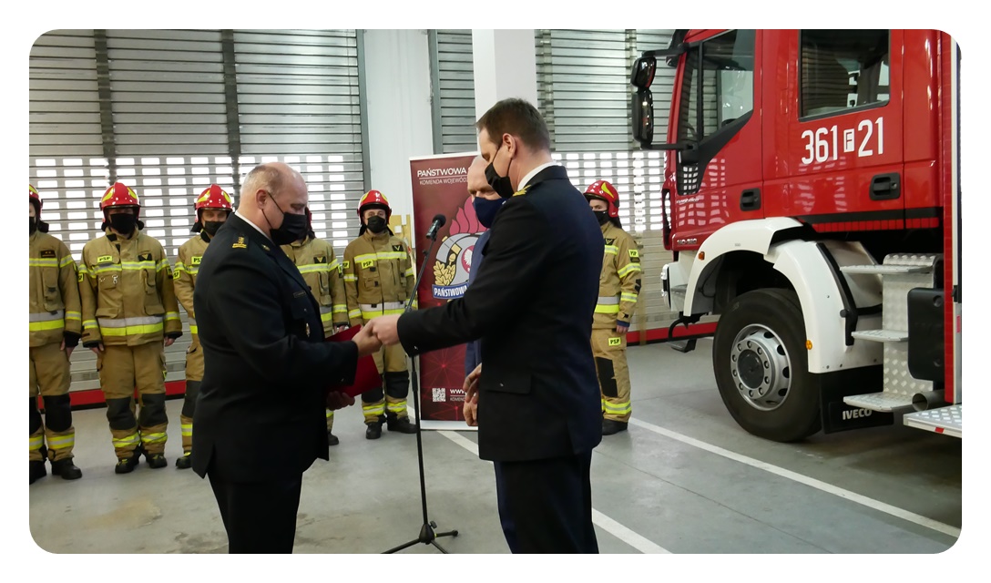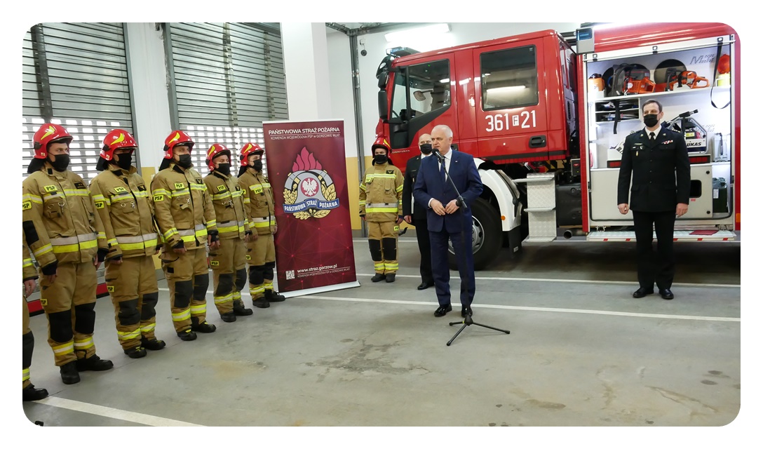 Dnia 9 grudnia w siedzibie Komendy Powiatowej Państwowej Straży Pożarnej w Krośnie Odrz. dokonano uroczystego aktu przekazania nowego średniego samochodu ratowniczo-gaśniczego. W uroczystości udział wzięli: