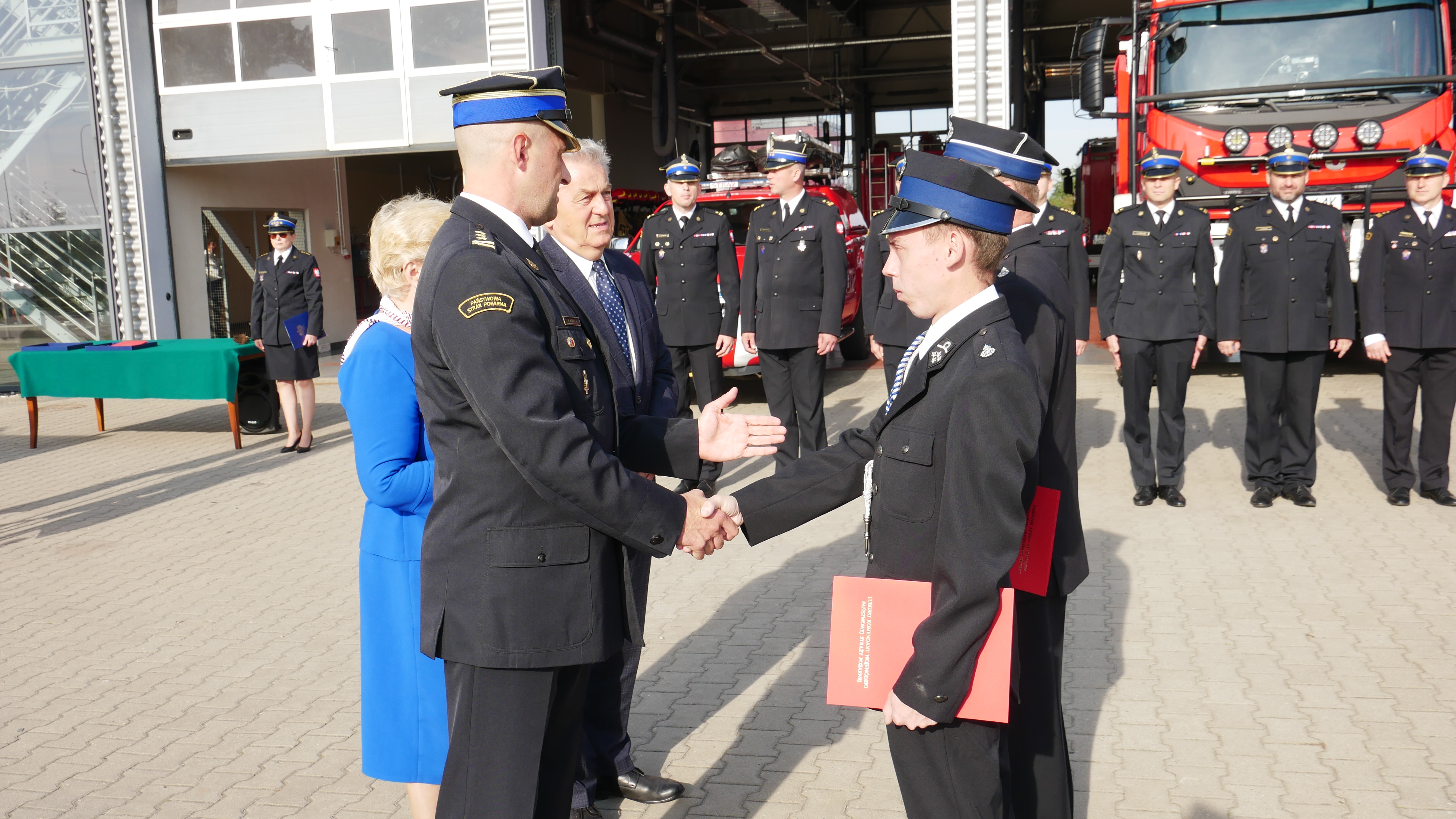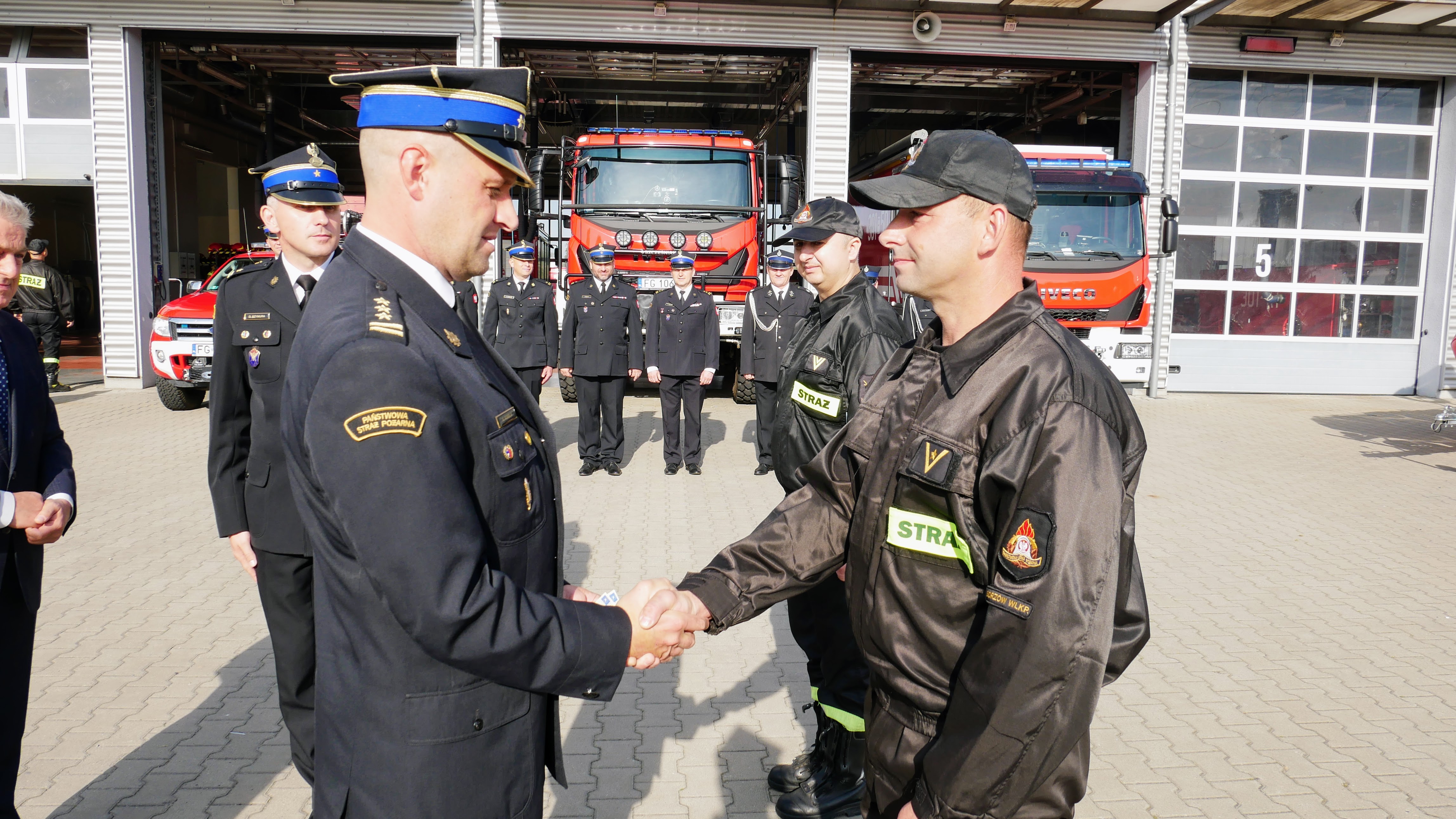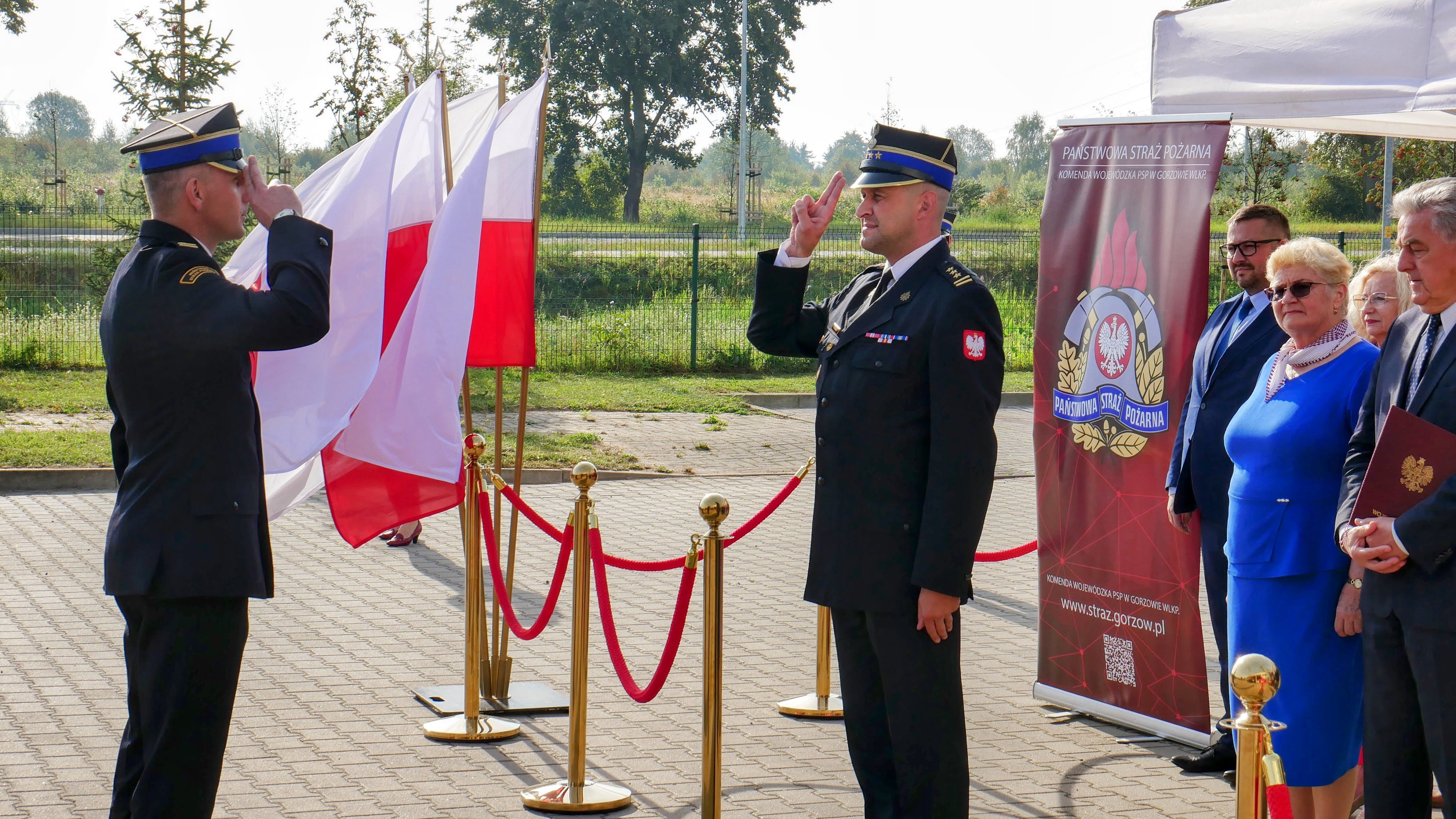 Zastępca Lubuskiego Komendanta Wojewódzkiego st. bryg. Krystian Kosela wraz z Wicewojewodą Lubuskim Wojciechem Perczakiem i Posłem na Sejm RP Elżbietą Płonką, wręczył akt przekazania pojazdów Komendantowi Miejskiemu PSP w Gorzowie Wielkopolskim mł. bryg. Dariuszowi Szymurze.