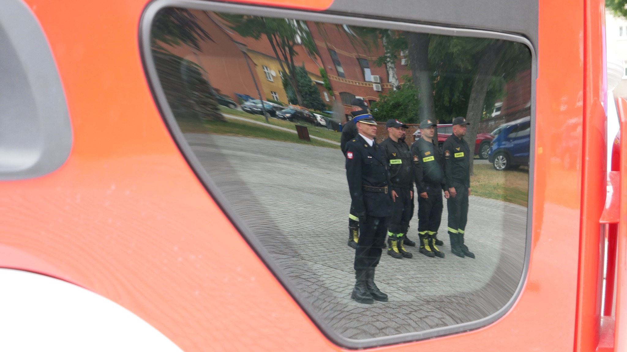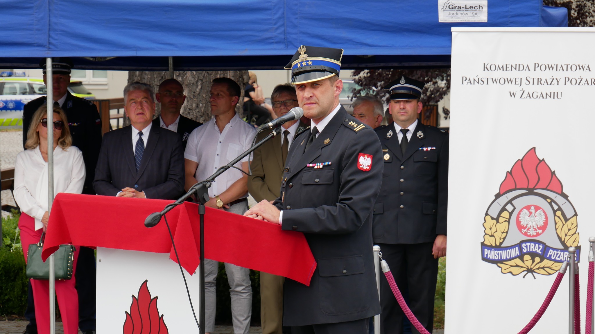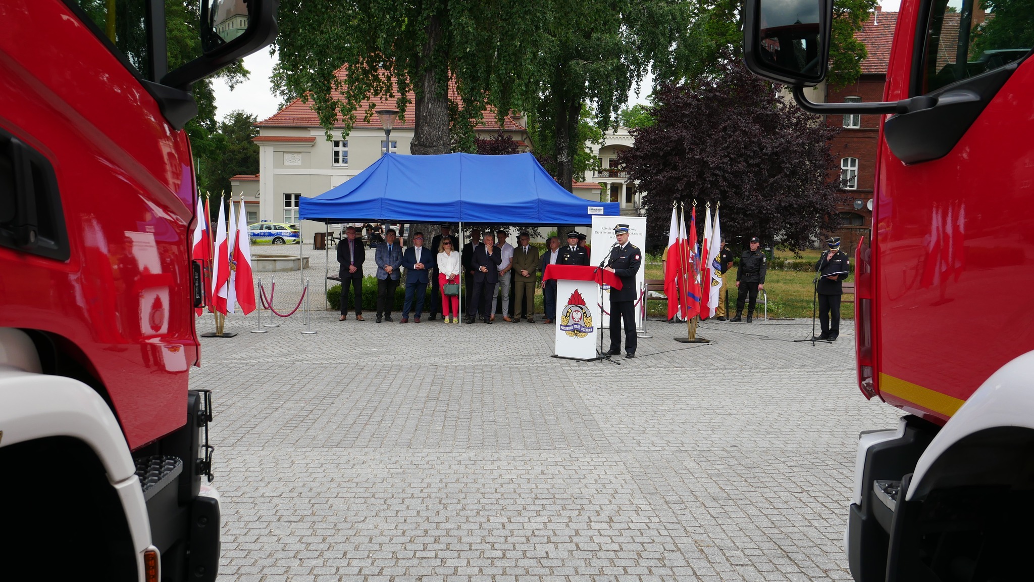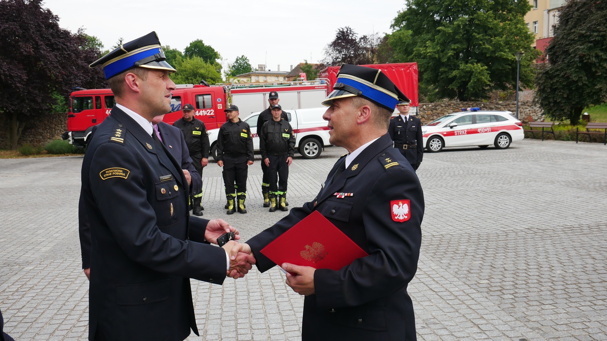 Zastępca Lubuskiego Komendanta Wojewódzkiego st. bryg. Krystian Kosela wraz z Wicewojewodą Lubuskim Wojciechem Perczakiem oraz Posłami na Sejm RP Jerzym Materną i Jackiem Kurzępą, wręczył akt przekazania pojazdów Komendantowi Powiatowemu PSP w Żaganiu bryg. Janowi Marszałkowi.