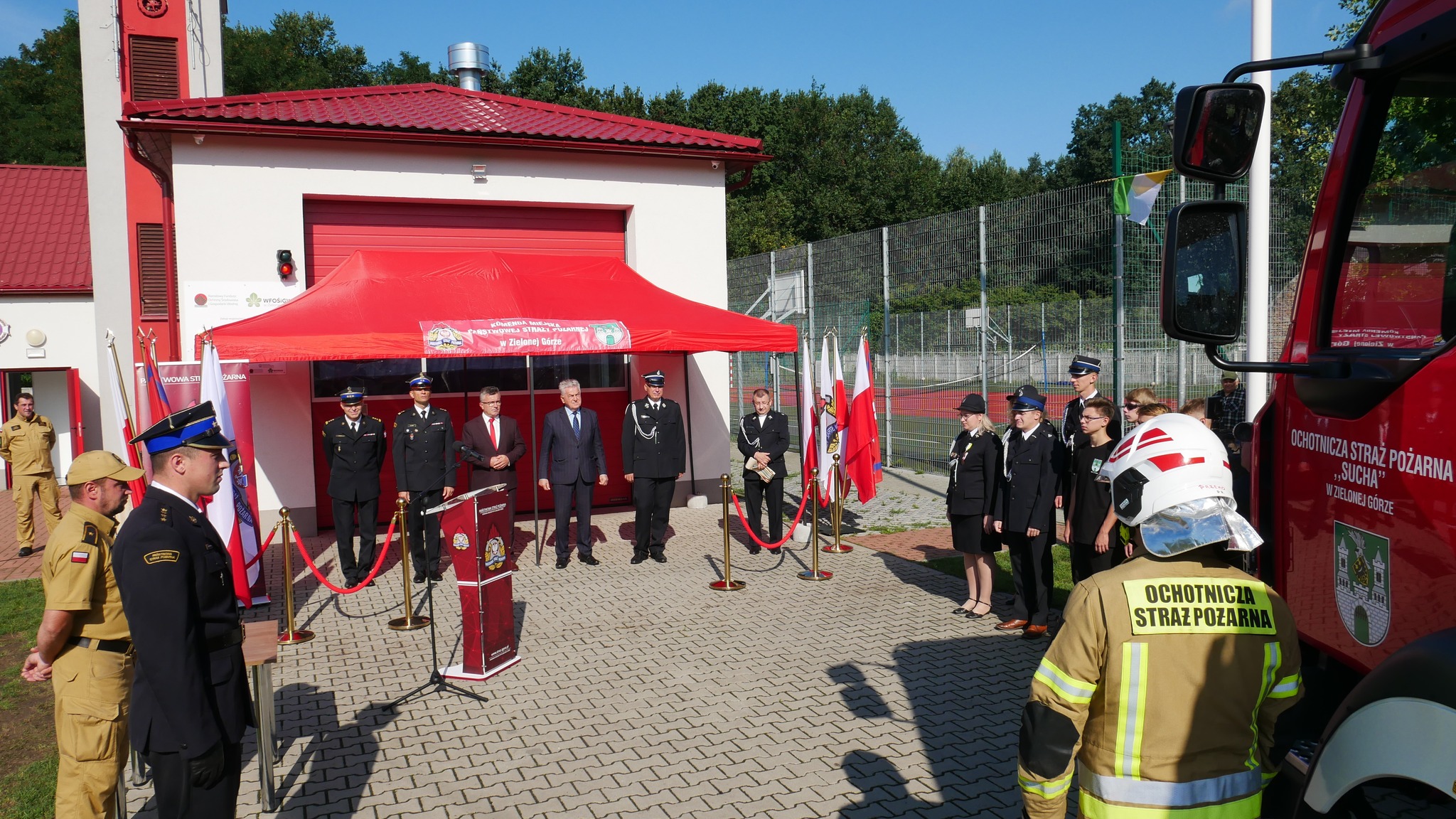 1 września br. na placu przy remizie OSP w zielonogórskiej dzielnicy Sucha, Zastępca Lubuskiego Komendanta Wojewódzkiego Państwowej Straży Pożarnej bryg. Maciej Iwko wraz z Wicewojewodą Lubuskim Wojciechem Perczakiem, wręczył akt przekazania nowego pojazdu Pani Prezes OSP Sucha druhnie Małgorzacie Żyła.