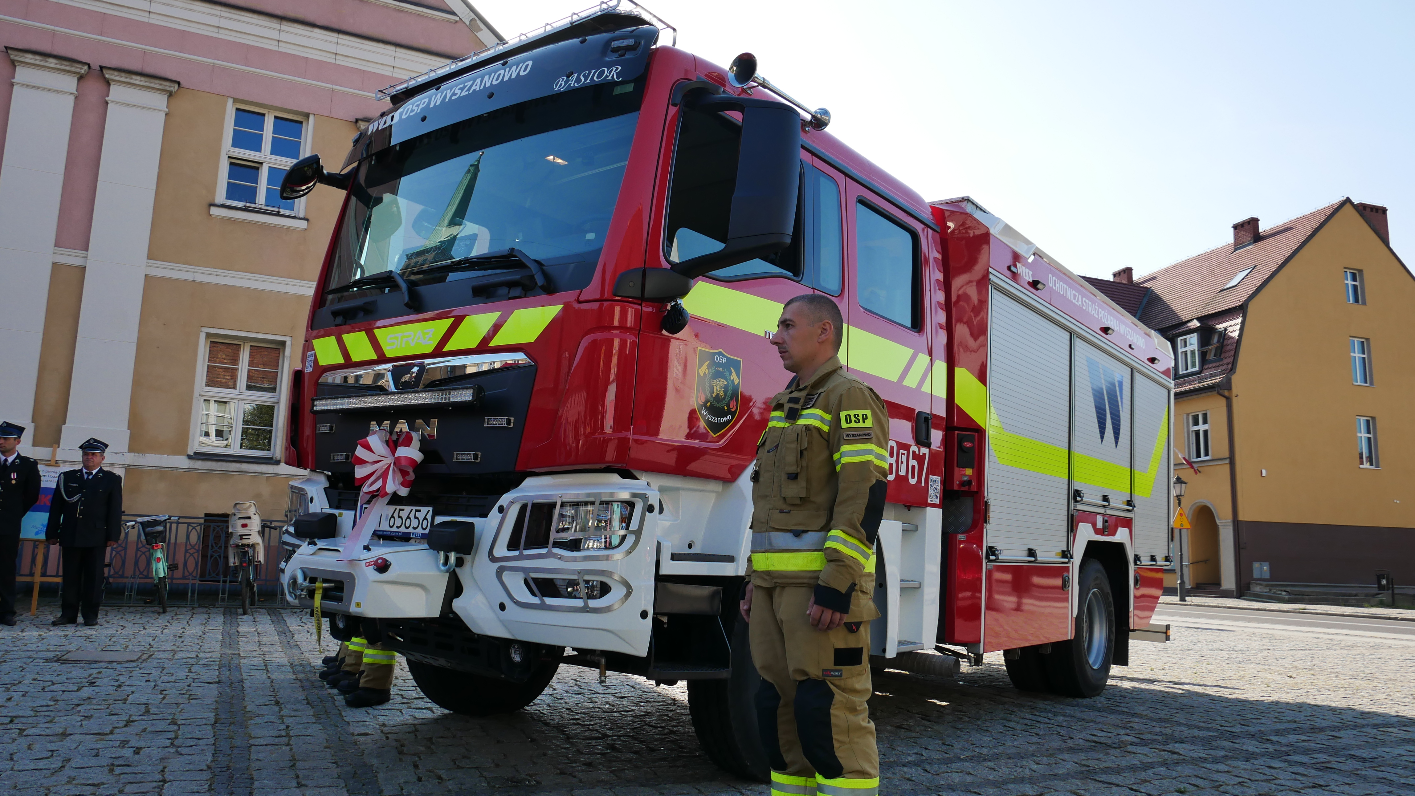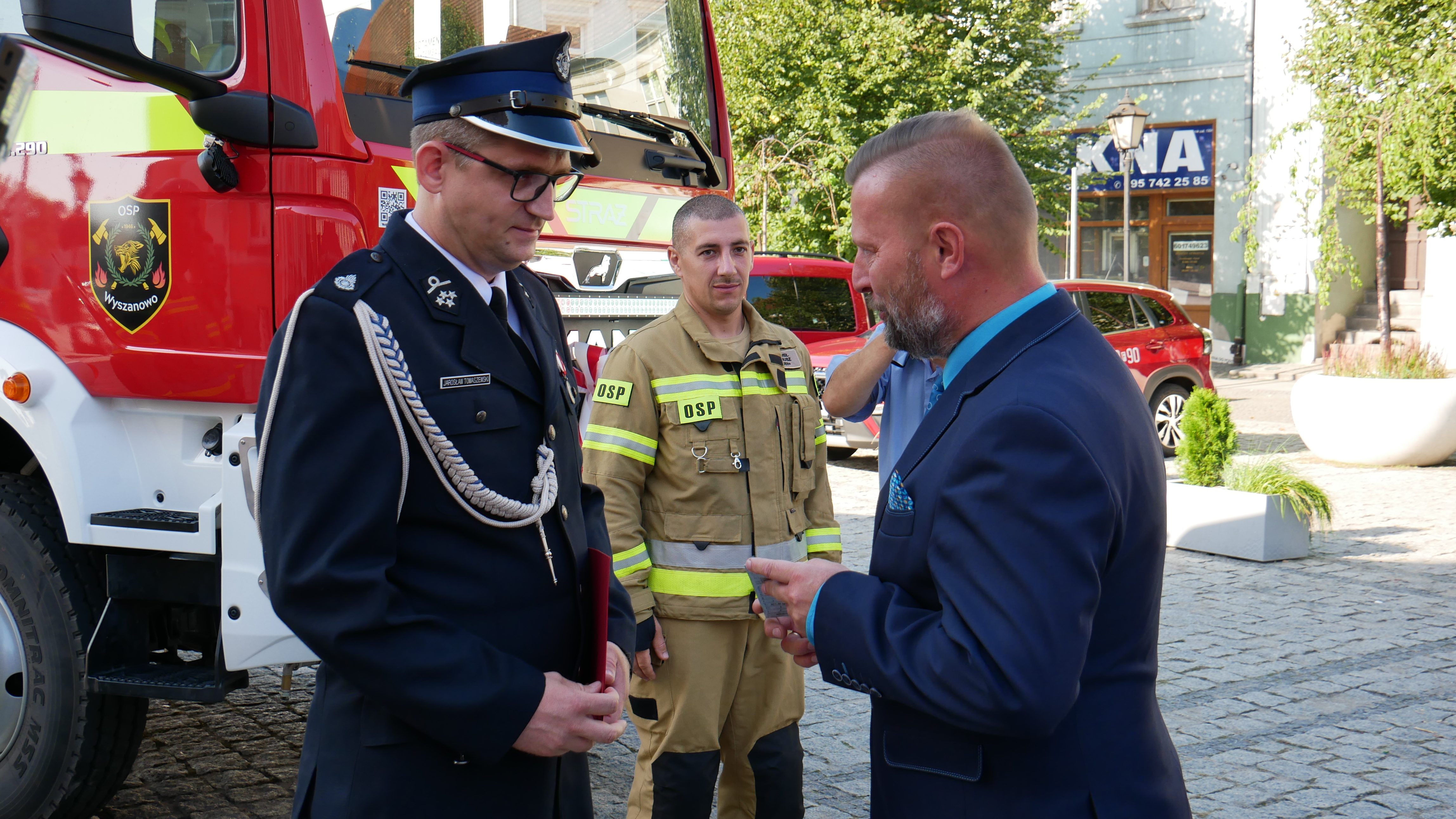 25 czerwca br. na Placu przy Ratuszu Miejskim w Międzyrzeczu, Zastępca Lubuskiego Komendanta Wojewódzkiego Państwowej Straży Pożarnej bryg. Maciej Iwko wraz z Burmistrzem Międzyrzecza Remigiuszem Lorenzem, wręczyli akt przekazania nowego pojazdu Naczelnikowi OSP Wyszanowo dh Jarosławowi Tomaszewskiemu.