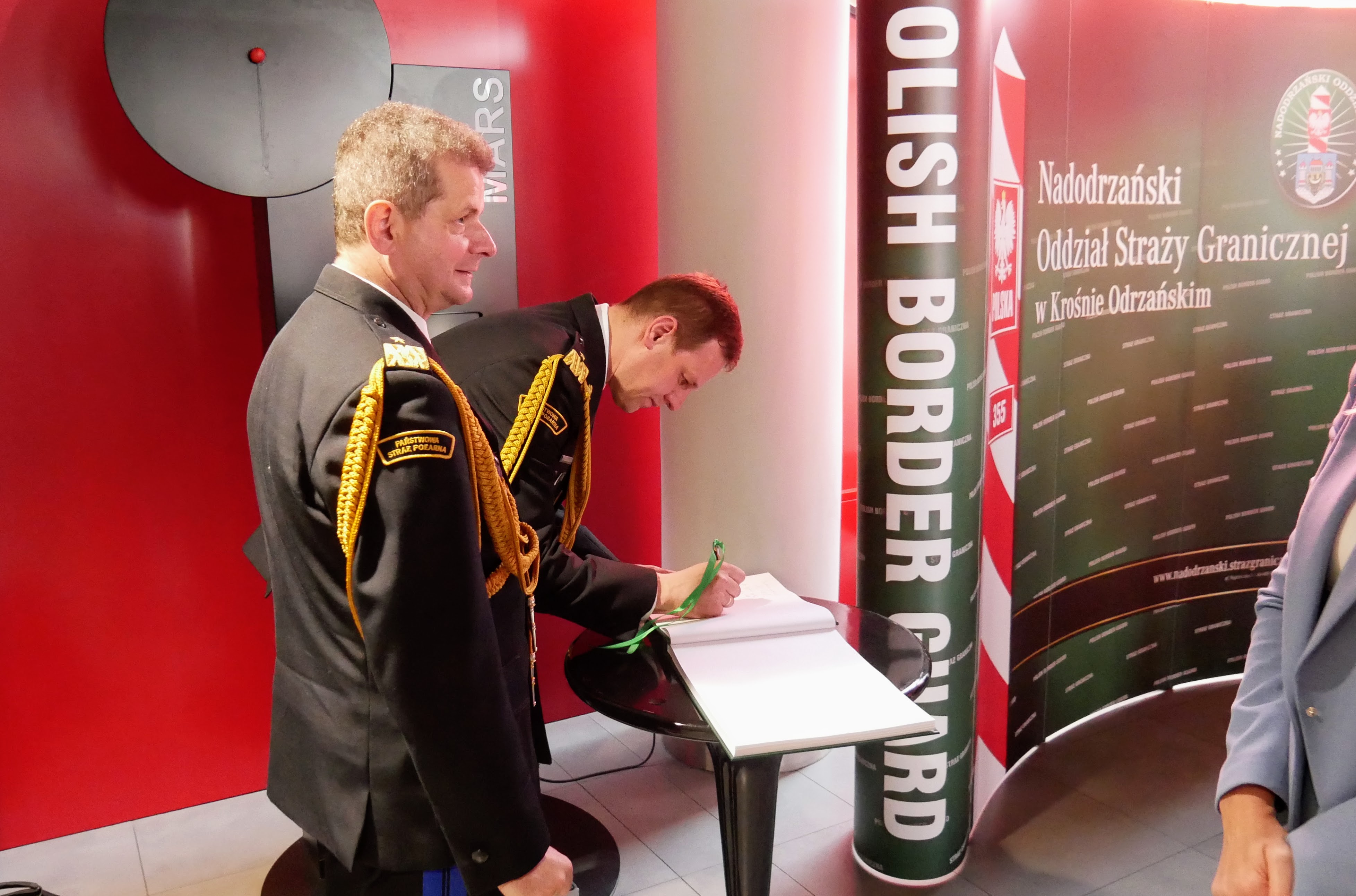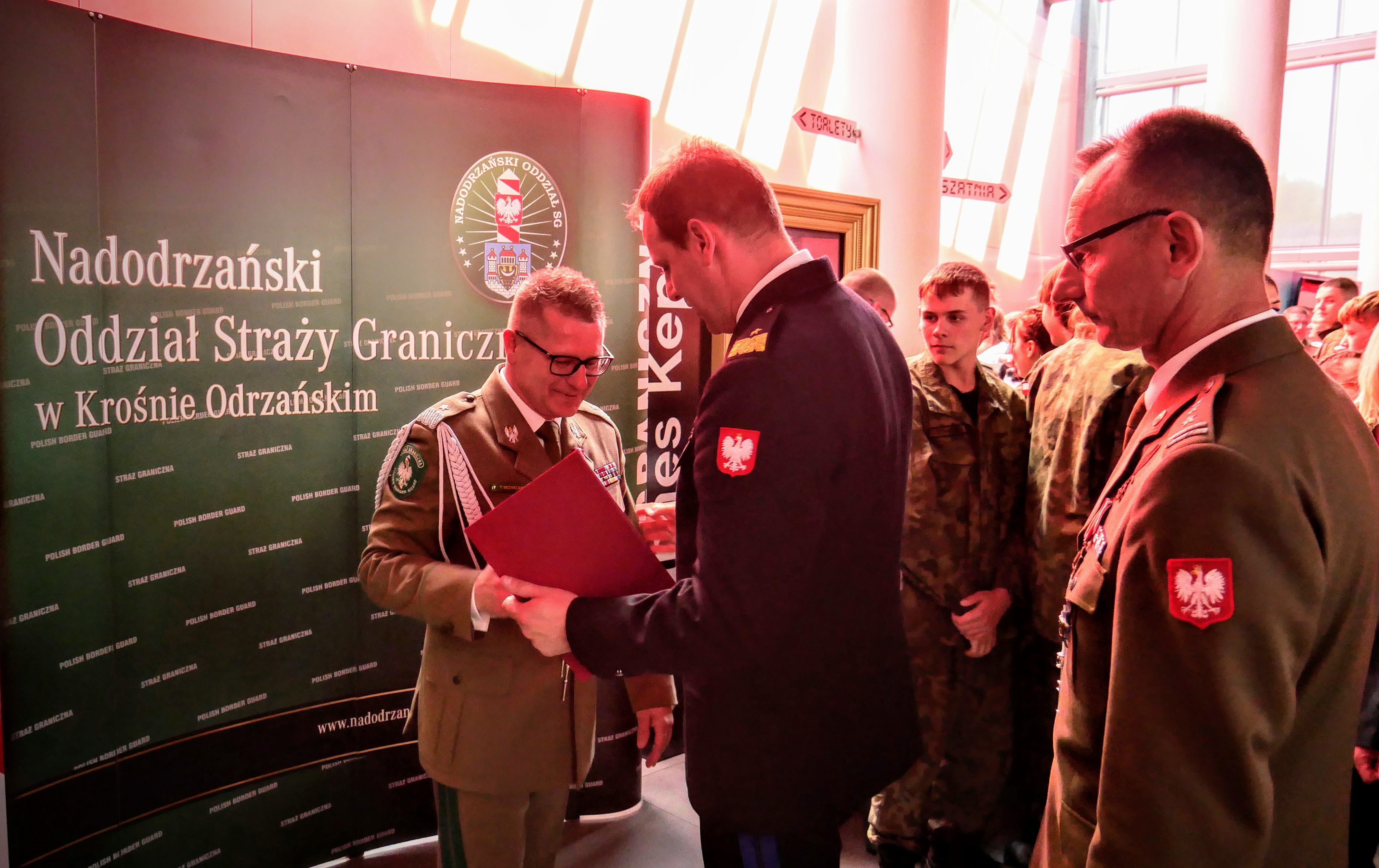 Po zakończonym apelu, nadbryg. Patryk Maruszak, podziękował Komendantowi Nadodrzańskiego Oddziału gen. bryg. SG Tomaszowi Michalskiemu za wieloletnią współpracę i pomoc podczas wspólnych działań.