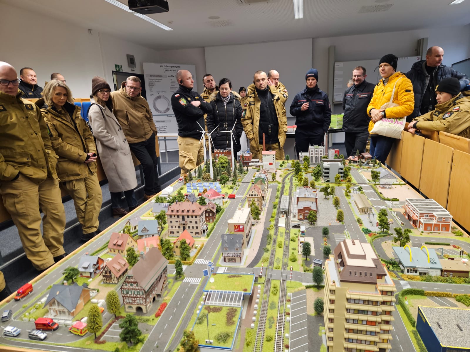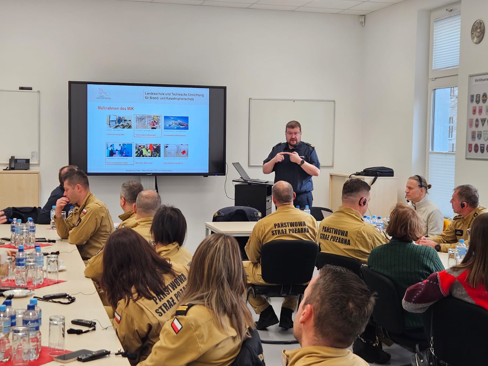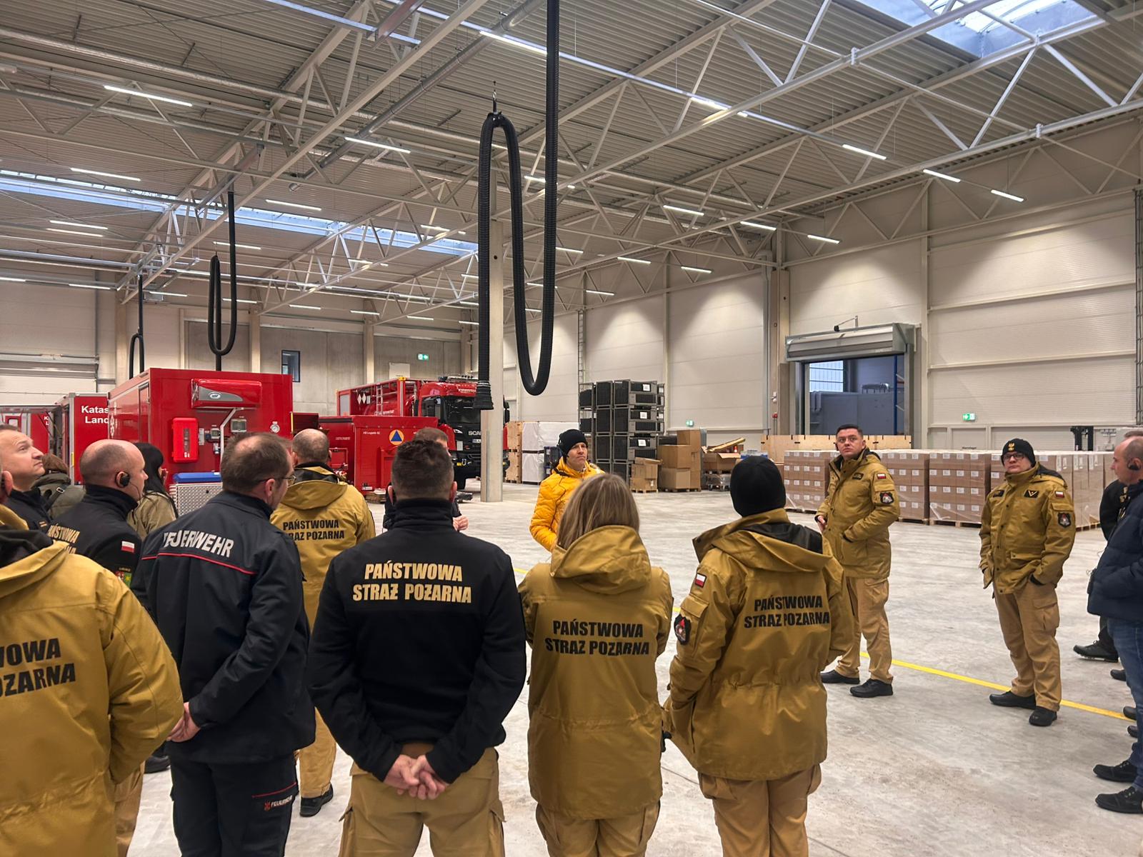 W drugim dniu odprawy, w ramach wizyty studyjnej zrealizowanej przez partnera w projekcie pn. „Lepiej zapobiegać niż ratować. Zapobieganie pożarom i innym niebezpiecznym zdarzeniom poprzez działania szkoleniowe, prewencji społecznej oraz wirtualną rzeczywistość”, uczestnicy zwiedzali Interimsstandort der LSTE, wraz z magazynem środków ochrony przeciwkatastroficznej. Była to świetna okazja do zapoznania się ze sprzętem znajdującym się na wyposażeniu naszych niemieckich partnerów.