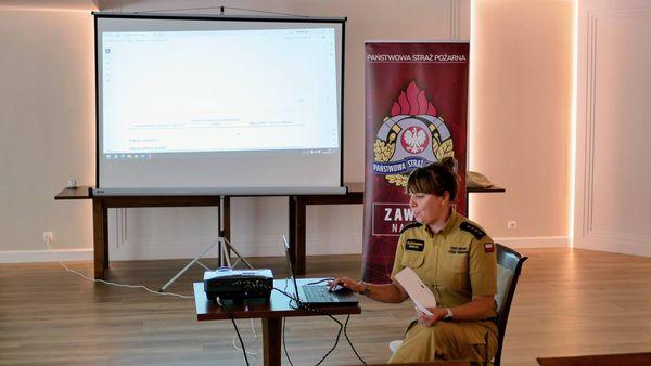 Prowadząca odprawę st. kpt. Aleksandra Świstel, koordynator ds. prewencji społecznej Komendy Wojewódzkiej PSP w Gorzowie Wielkopolskim, omówiła główne cele i założenia projektu, przedstawiła analizę harmonogramu działań i kluczowych etapów realizacji zadania.
