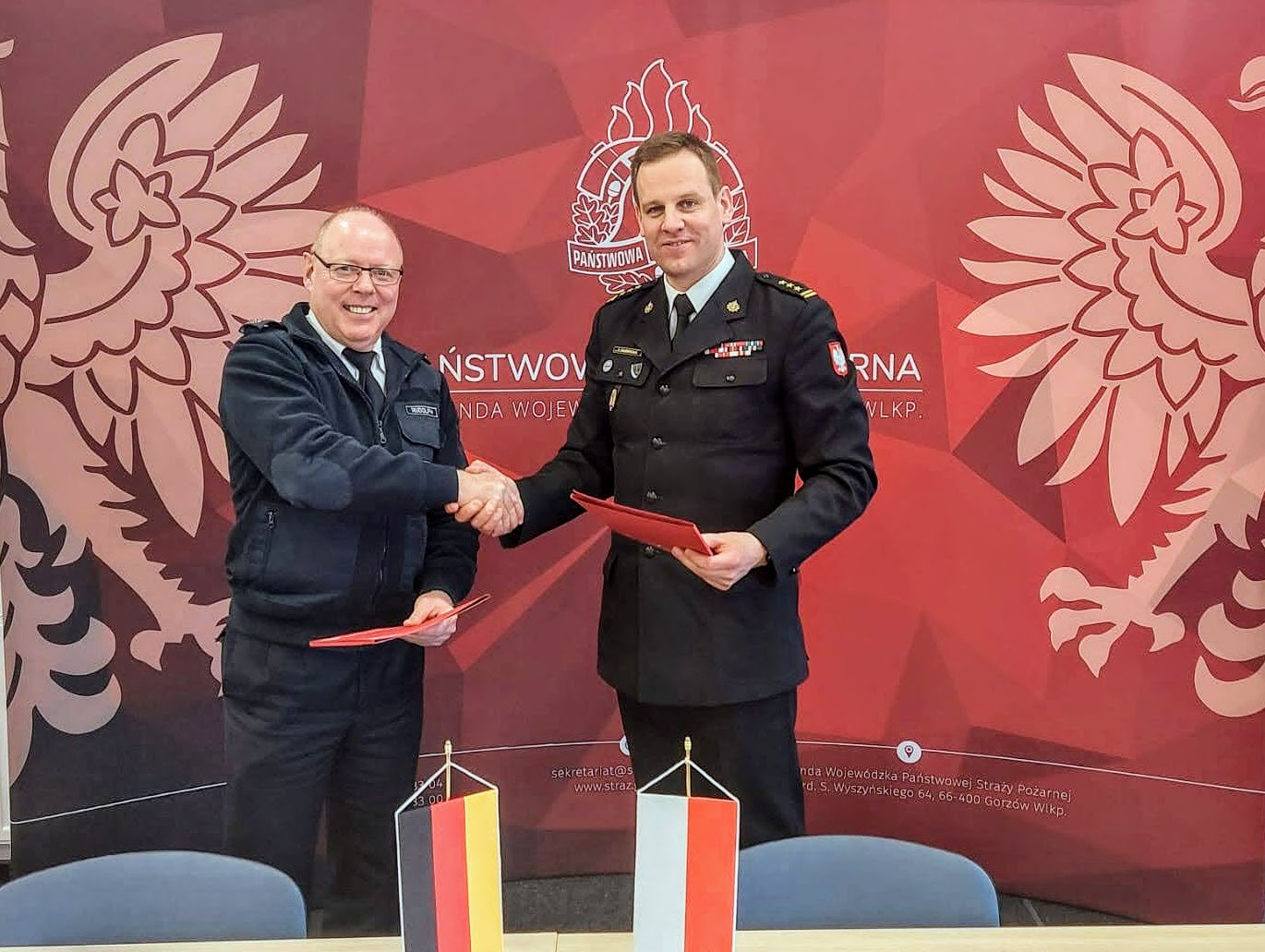 Lubuski Komendant Wojewódzki PSP st. bryg. Patryk Maruszak oraz dyrektor Landowej Szkoły Ochrony Przeciwpożarowej i przed Katastrofami LSTE w Eisenhüttenstadt podpisali 5 kwietnia 2023 r. plan współpracy na rok 2023. Polsko – niemiecka współpraca z LSTE trwająca od roku 2007 opiera się na corocznie sporządzanych planach współpracy opracowanych przez wyznaczonych przez obie jednostki koordynatorów na podstawie bieżących potrzeb i dotychczasowych wniosków z realizacji wspólnych zadań. Na rok bieżący zaplanowaliśmy m.in. warsztaty z ratownictwa wodno-nurkowego oraz cykliczne Warsztaty z pożarów wewnętrznych w budynku rozgorzeniowym.