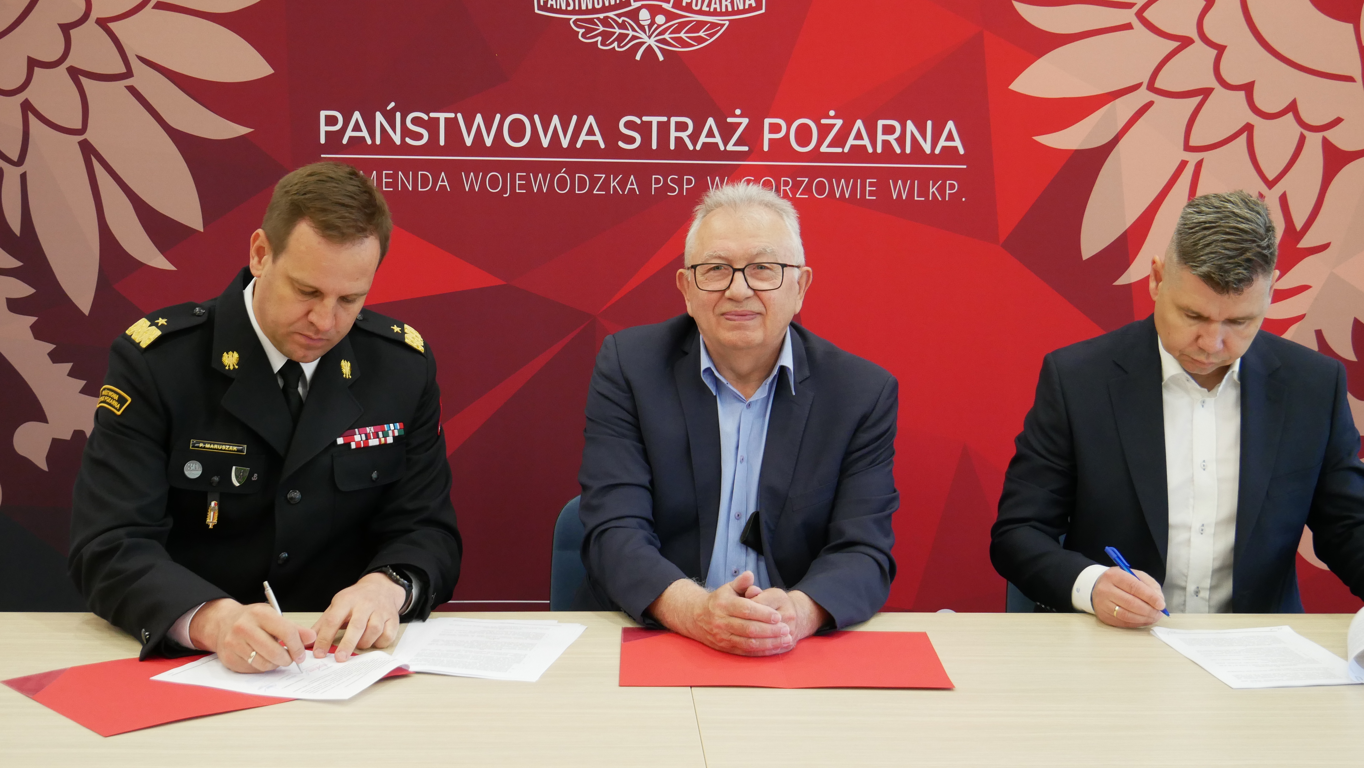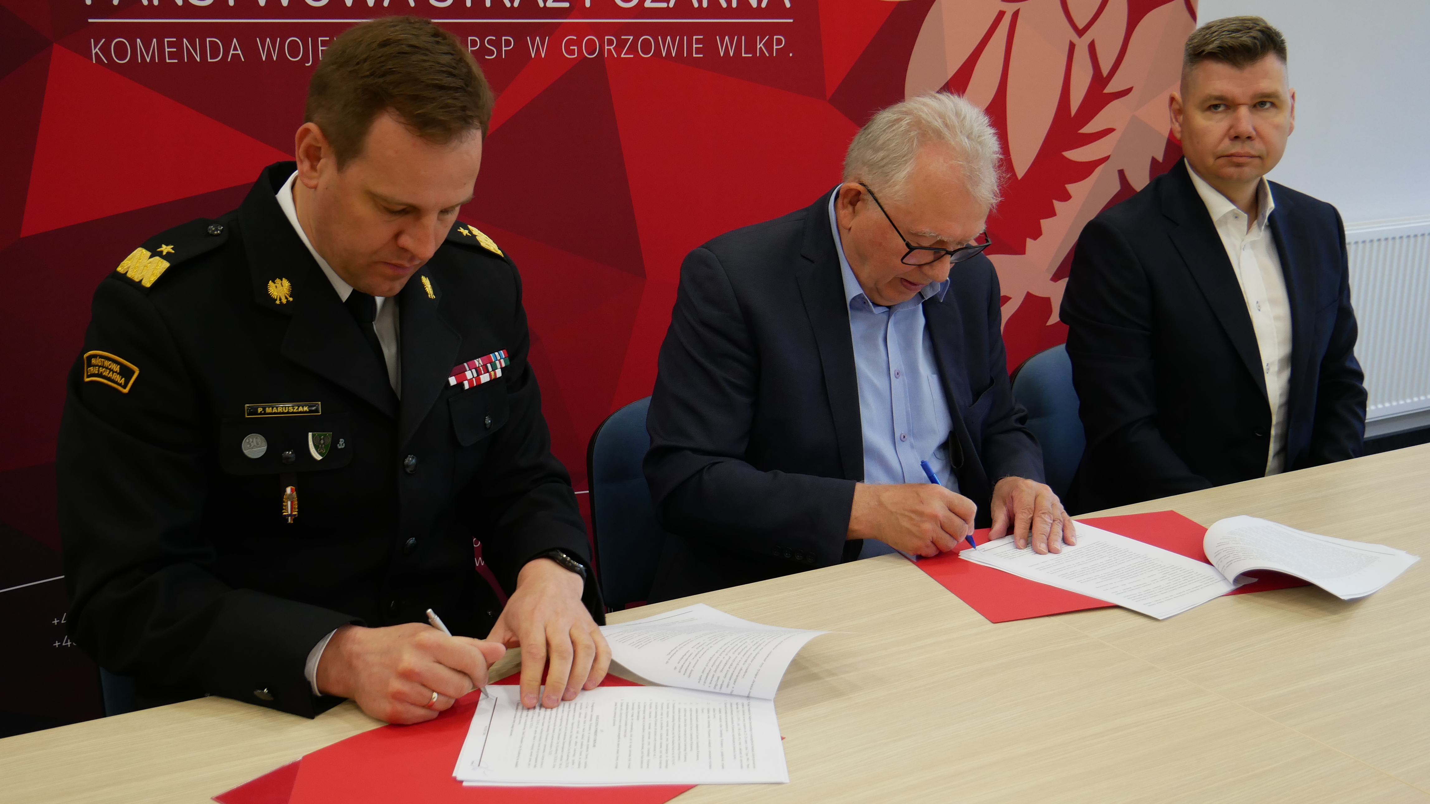 Umowę w siedzibie KW PSP w Gorzowie Wlkp. podpisali Lubuski Komendant Wojewódzki Państwowej Straży Pożarnej w Gorzowie Wielkopolskim nadbryg. Patryk Maruszak oraz Panowie Mariusz Batura – Prezes GOTECH i Paweł Krajewski – Prokurent reprezentujący Generalnego Wykonawcę firmę GOTECH Spółka z ograniczoną odpowiedzialnością, ul. Podmiejska Boczna 16, 66-400 Gorzów Wlkp.