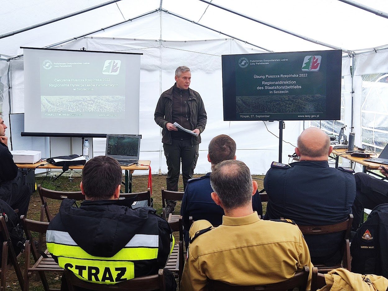 Trzeci dzień ćwiczeń to omówienie i podsumowanie gdzie, przedstawiciele straży pożarnej z Polski, Niemiec, Lasów Państwowych podsumowali ćwiczenia przedstawiając wnioski.