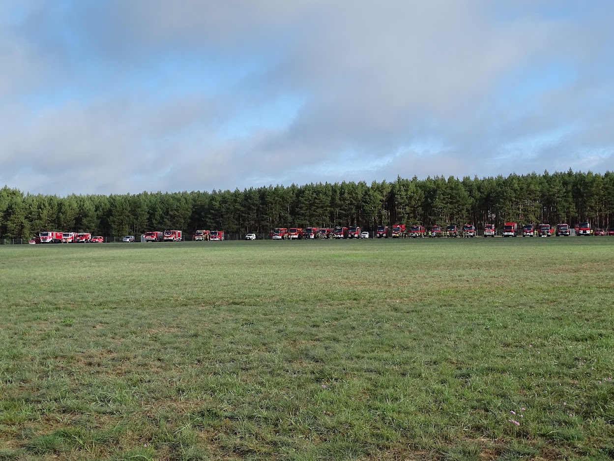Około godz. 9:00 z PAD w Nadleśnictwie Rzepin do SK KP PSP w Słubicach wpływa kolejne zgłoszenie, tym razem na temat silnego zadymienia w okolicy oddziału 544 Nadleśnictwa Rzepin - RDLP Szczecin (zadymienie realne stworzone przez zespół pozoracji). Rozpoznanie potwierdza, że doszło prawdopodobnie do kolejnego podpalenia, w wyniku którego pożar rozprzestrzenia się w kierunku północnym. Kierujący działaniem ratowniczym wspierany przez sztab Lubuskiego Komendanta Wojewódzkiego PSP podejmuje decyzję o zadysponowaniu na miejsce pożaru kompanii gaśniczej WOO „Słubice”, która została wcześniej sformowana i oczekuje na rozkazy w PPSiS utworzonym na bazie Lądowiska lasów Państwowych w Rzepinie. Potwierdzony na miejscu pożar przybiera na sile a siły zaangażowane w akcje są niewystarczające. Dalszy rozwój pożaru w kierunku północnym wskazuje jednoznacznie na zajecie młodnika, a tym samym wzrost szybkości rozprzestrzeniania się pożaru, który spowoduje najprawdopodobniej gęste zadymienie autostrady A2, co stworzy realne zagrożenie dla ruchu drogowego. Na miejsc zostają skierowane siły straży pożarnej z Niemiec oraz Kompania Gaśnicza COO „Lubuska”. W celu zabezpieczenia wschodniej części pożaru, do akcji włączone zostają także statki powietrzne Lasów Państwowych.