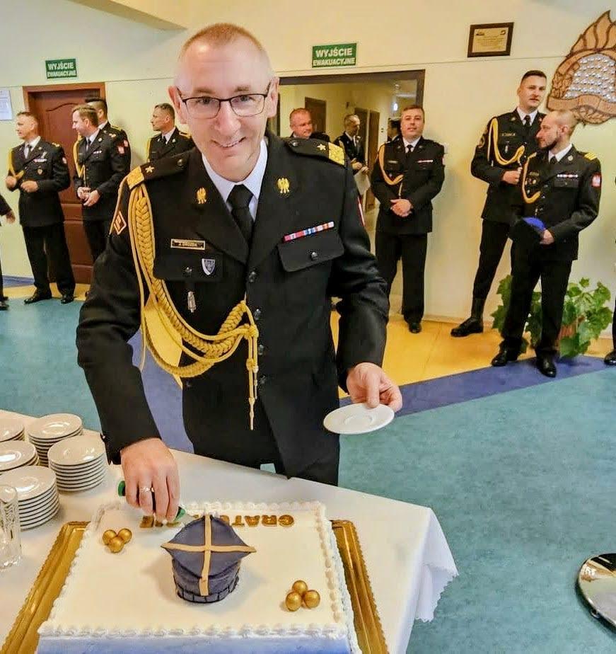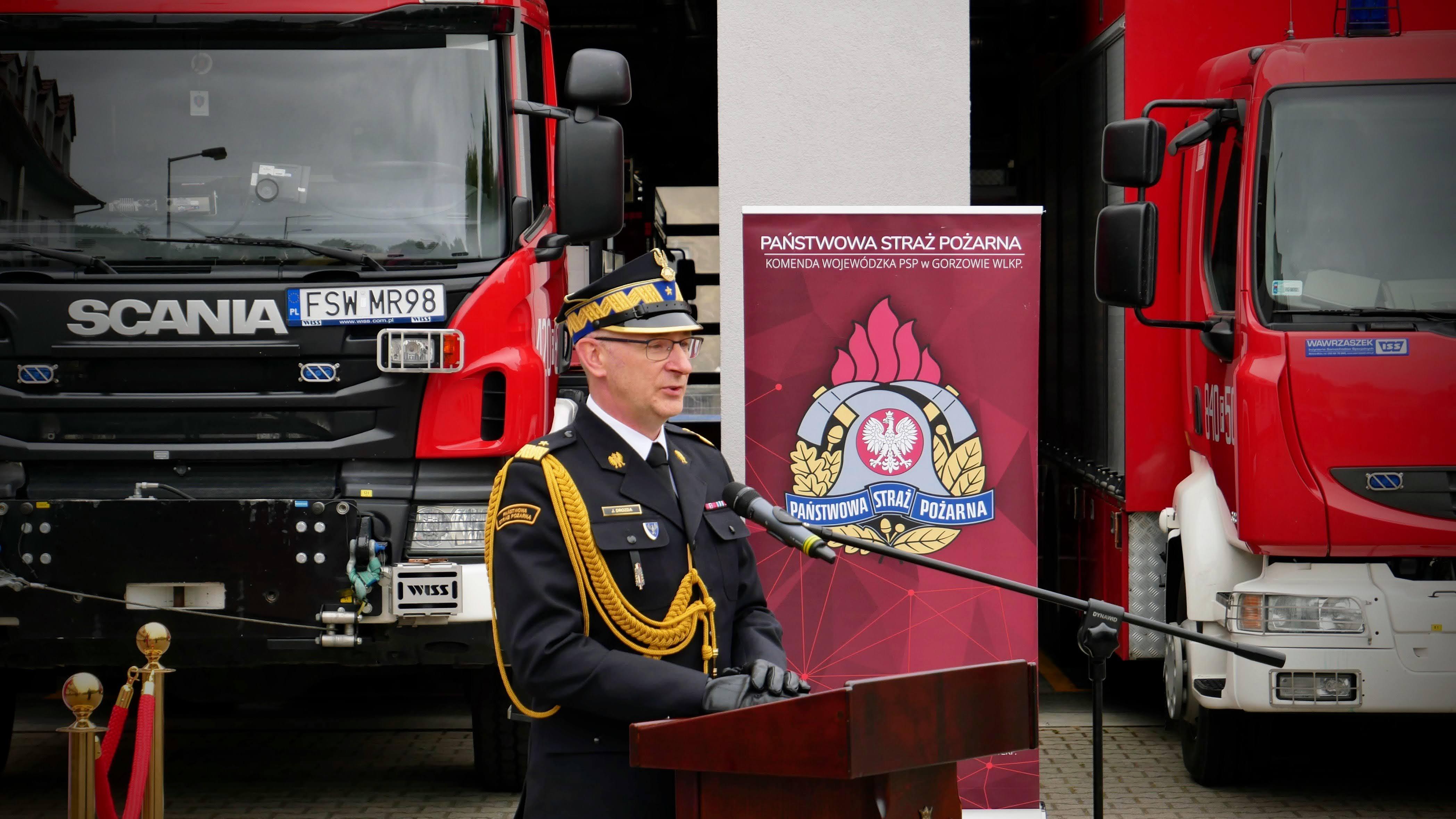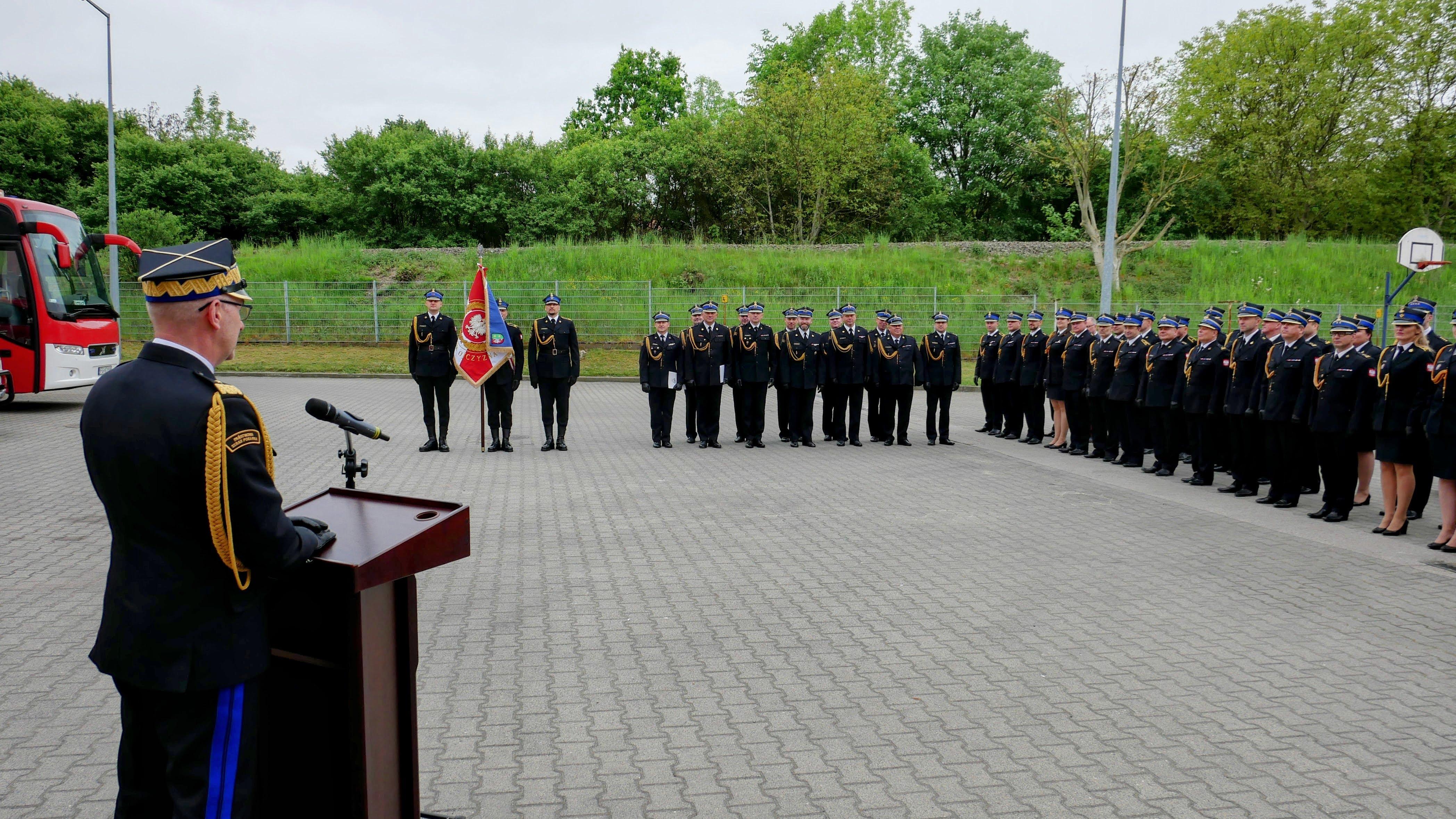 „Miejsce w którym się dziś spotykamy, nie jest przypadkowe. Mieści się tutaj nie tylko Ośrodek Szkolenia Komendy Wojewódzkiej PSP ale również Komenda Powiatowa, w której zdobyłem 18 lat doświadczenia w służbie.” – powiedział komendant.