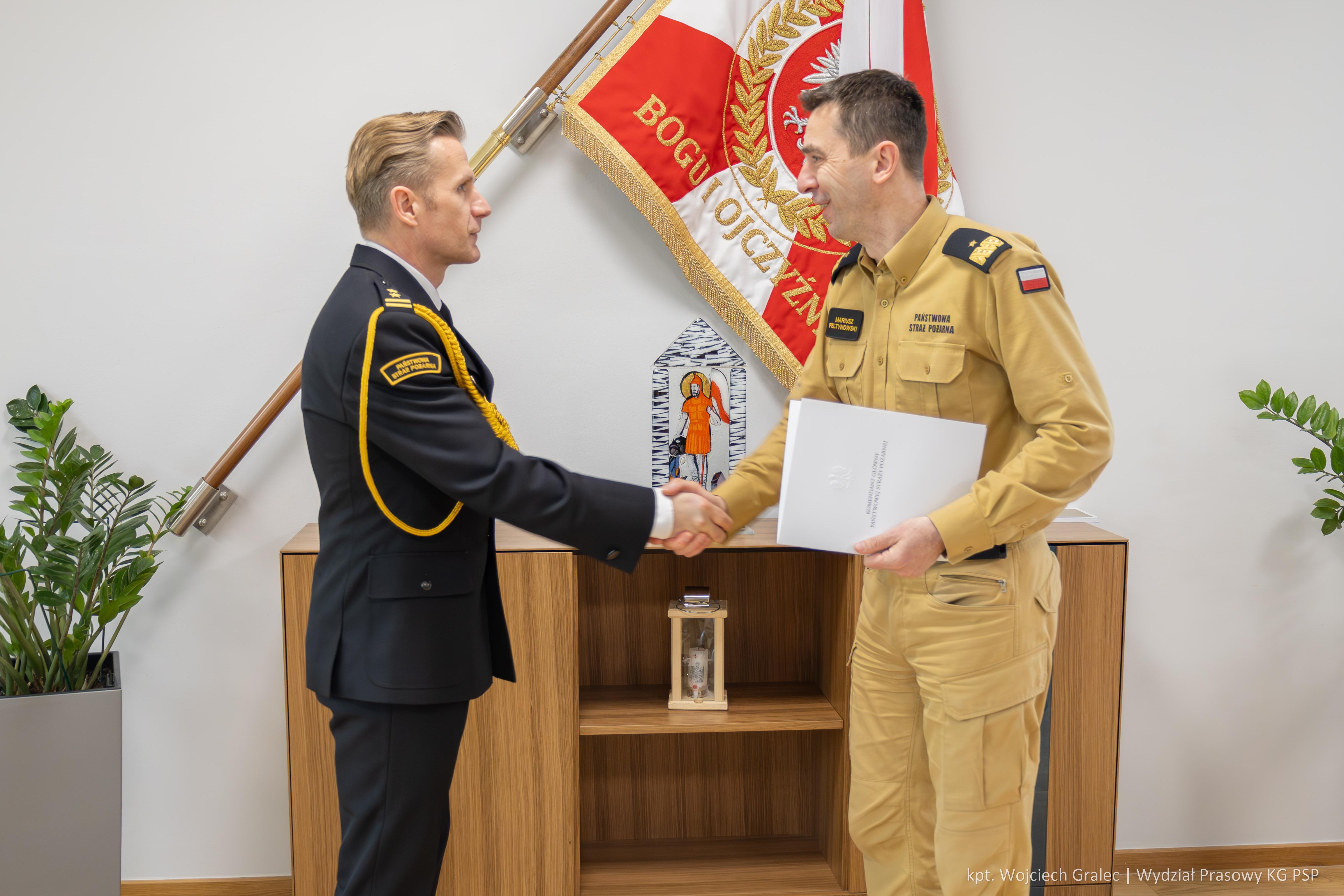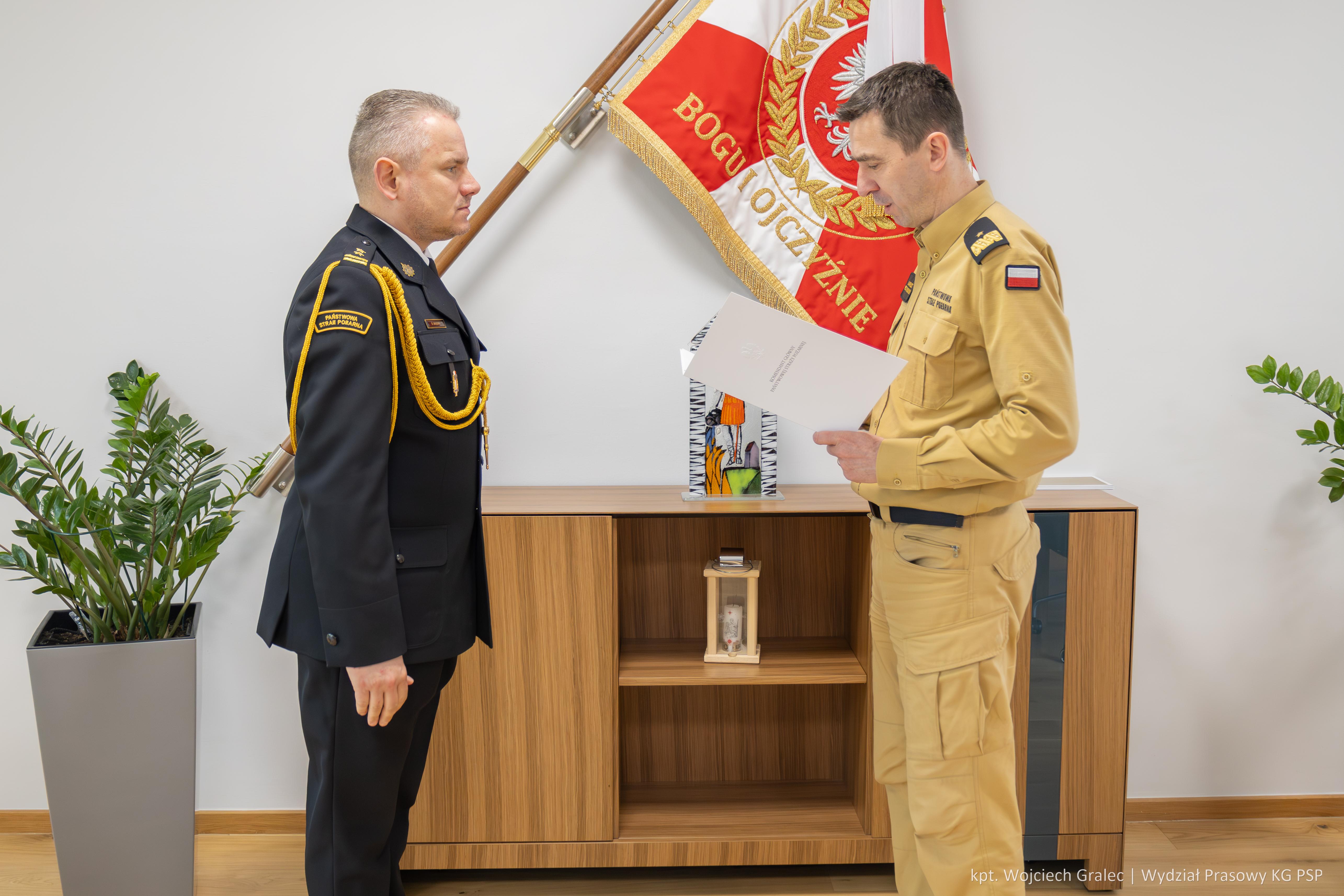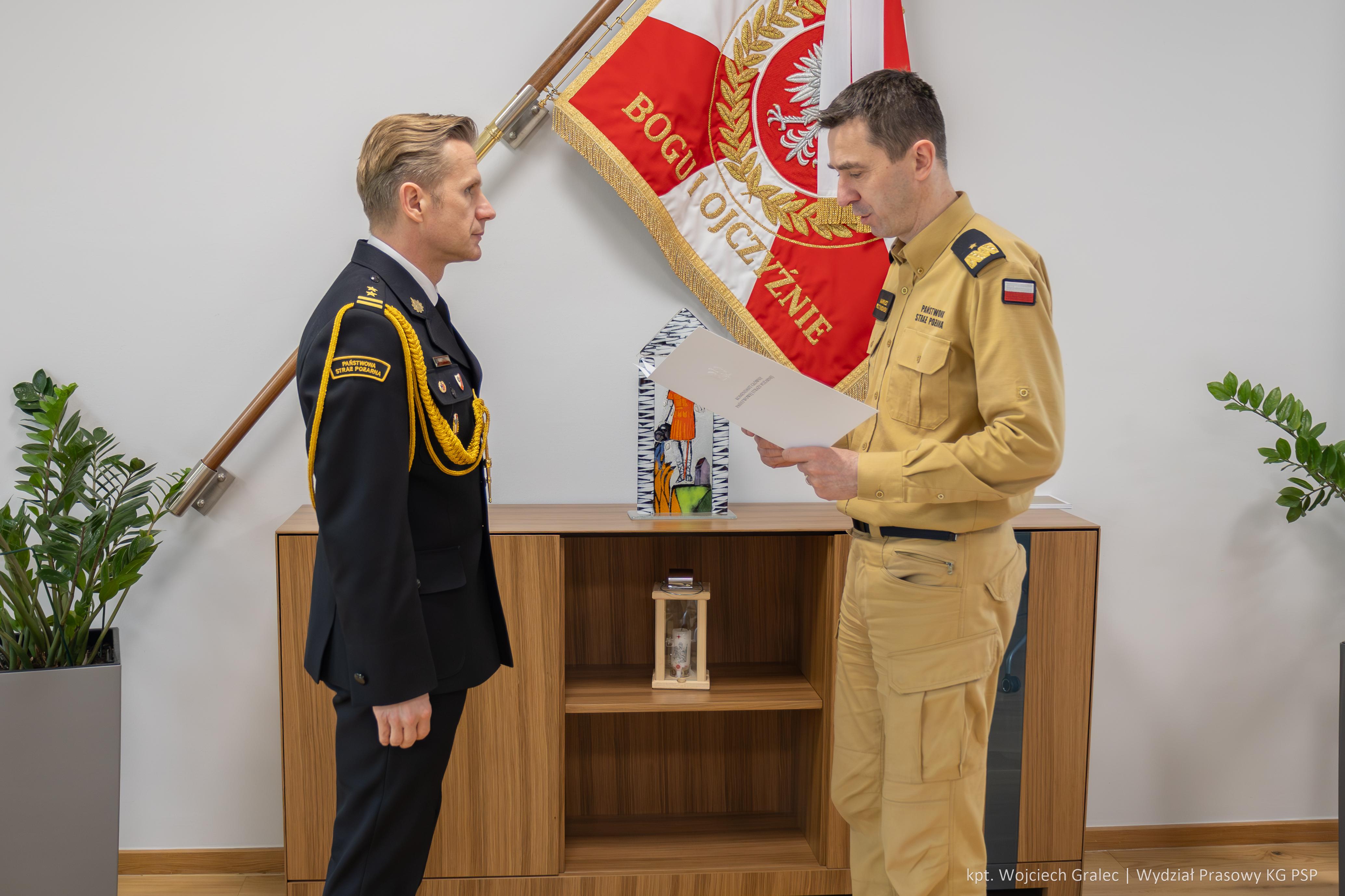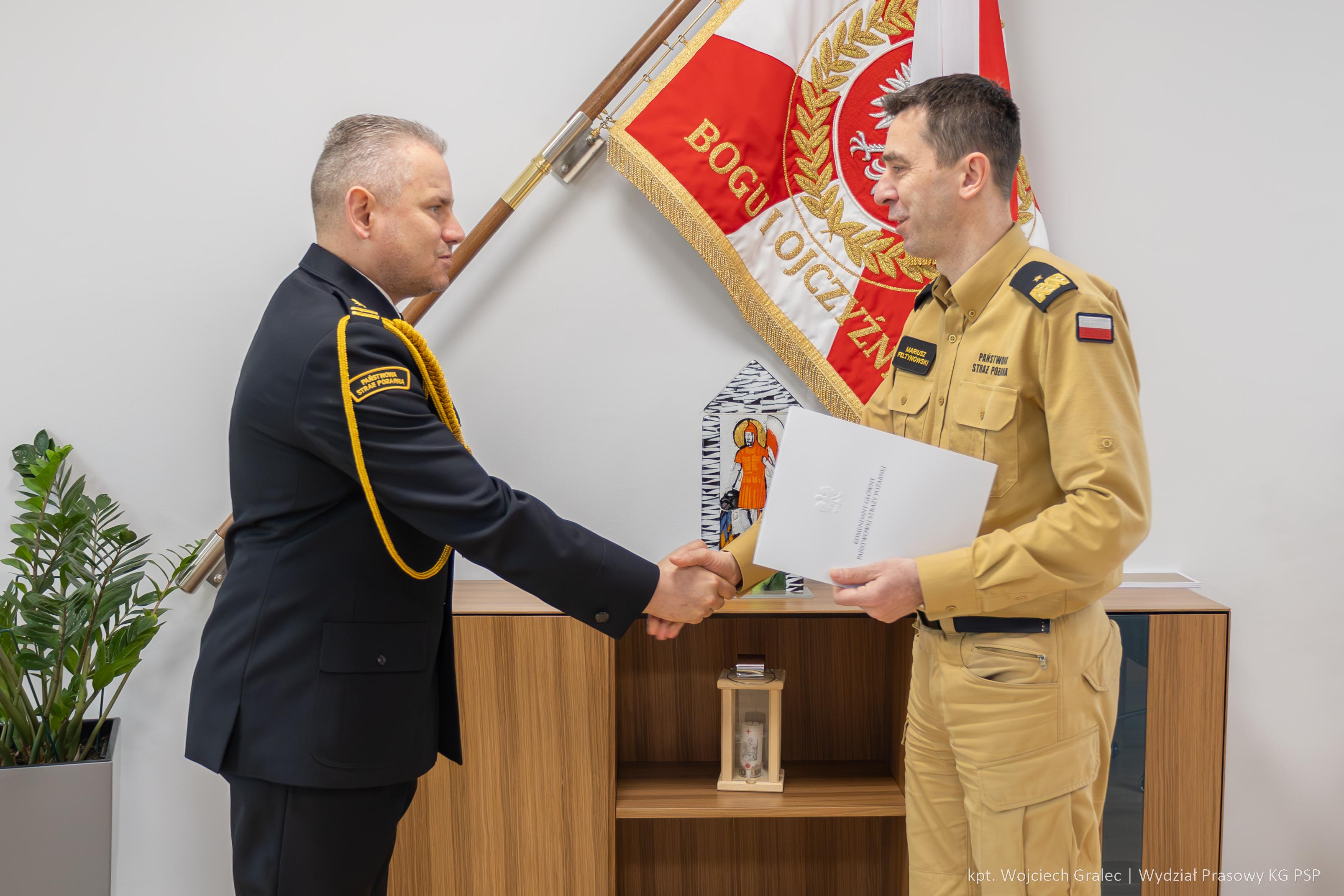 24 kwietnia 2024 r. komendant główny PSP nadbryg. dr inż. Mariusz Feltynowski wręczył decyzje personalne o powołaniu: