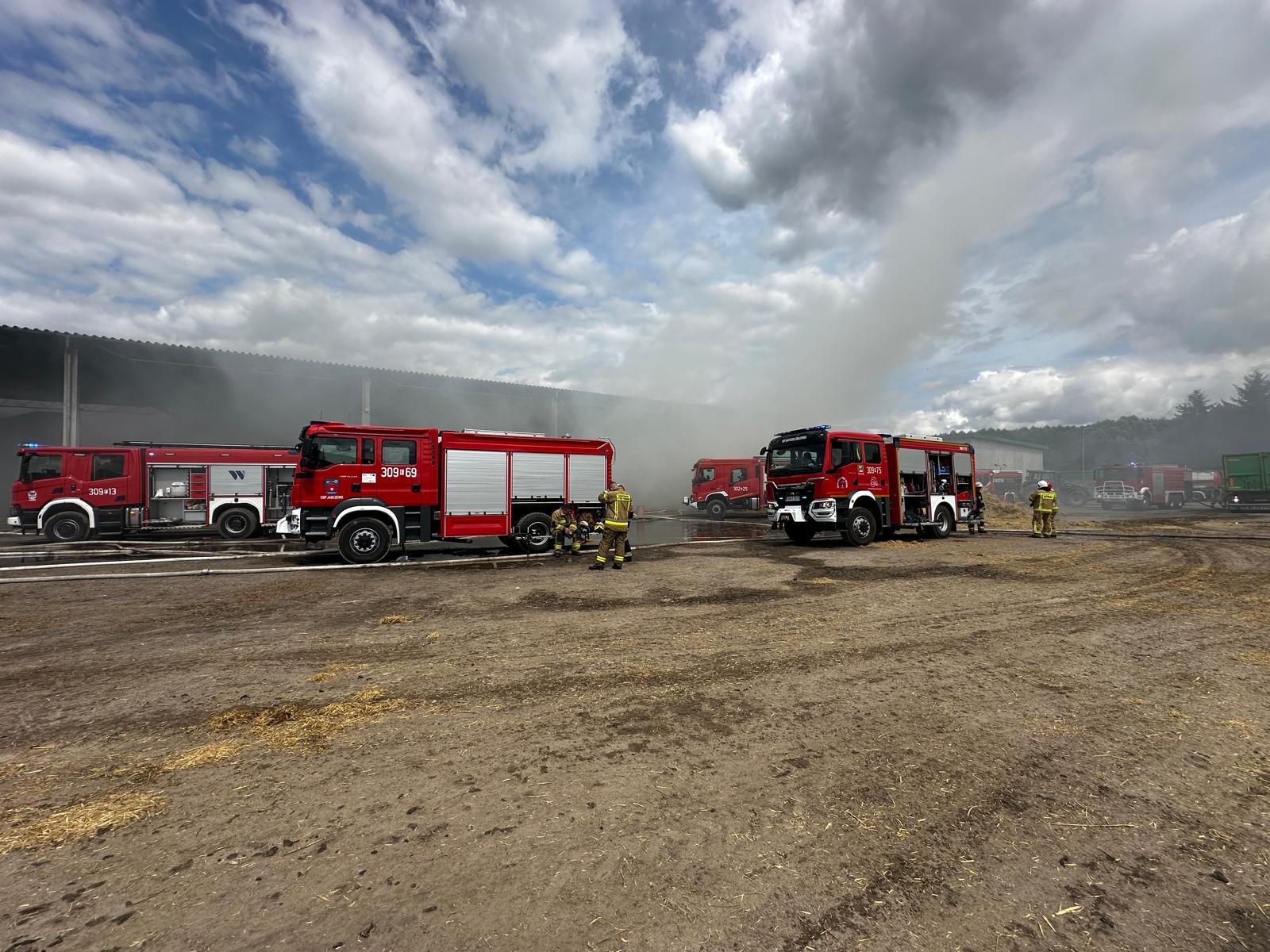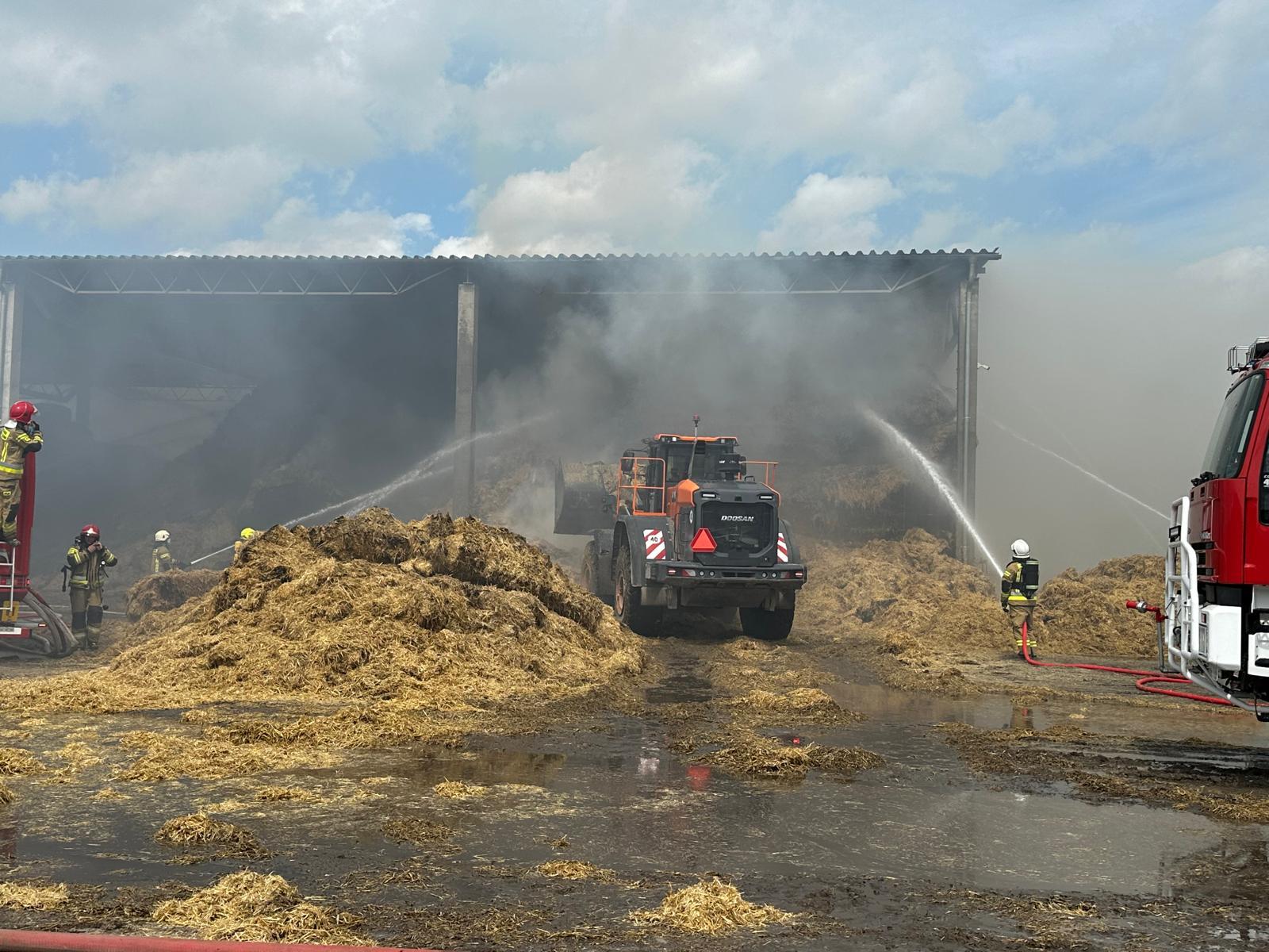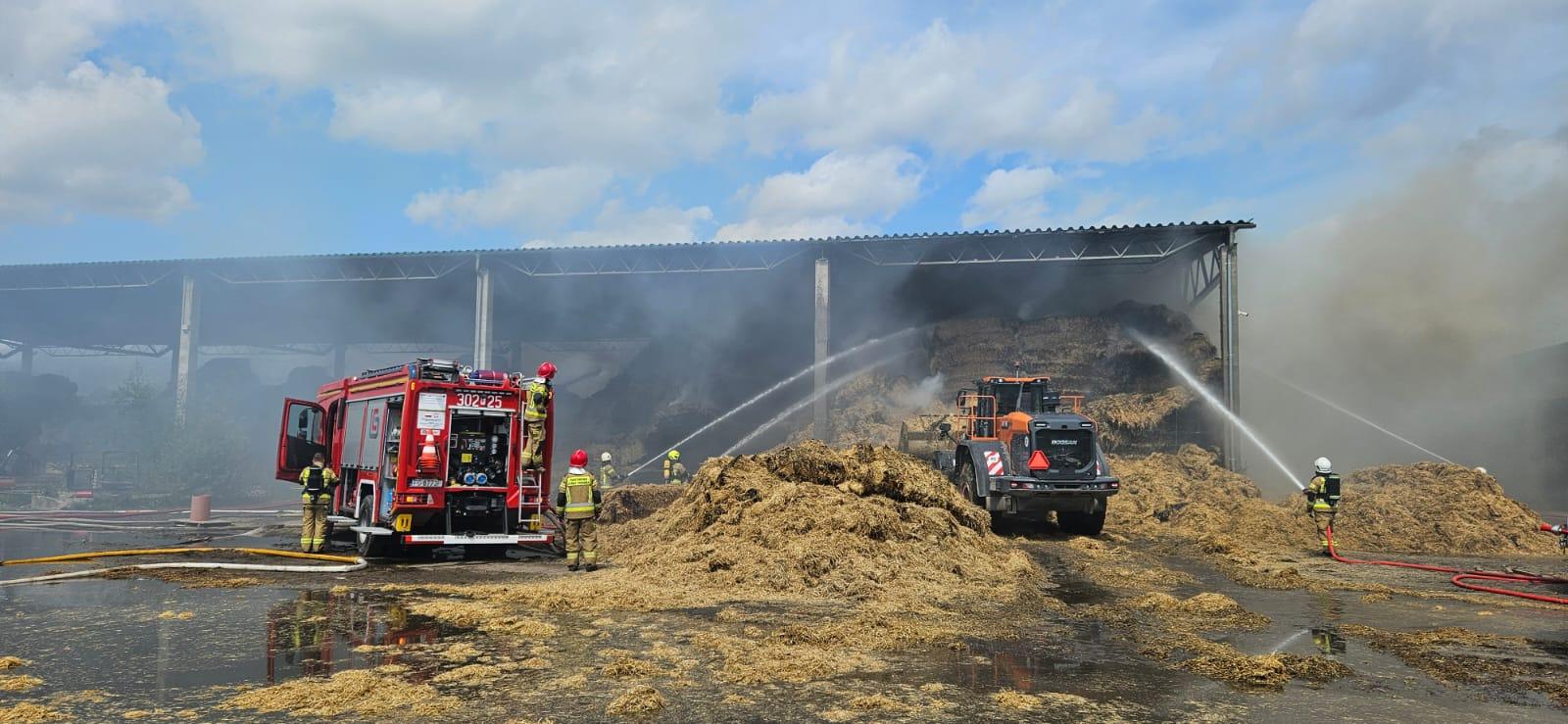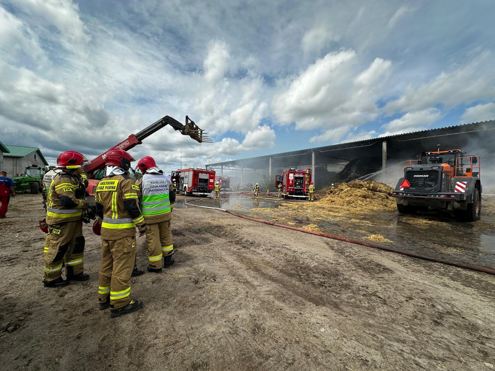 Pierwsze samochody gaśnicze przybyły po kilku minutach. Pożarem objęta była hala, w której zgromadzone były płody rolne (m.in. baloty słomy, siano, ziarno rzepaku) oraz maszyny rolnicze. Strażacy błyskawicznie przystąpili do akcji gaśniczej.