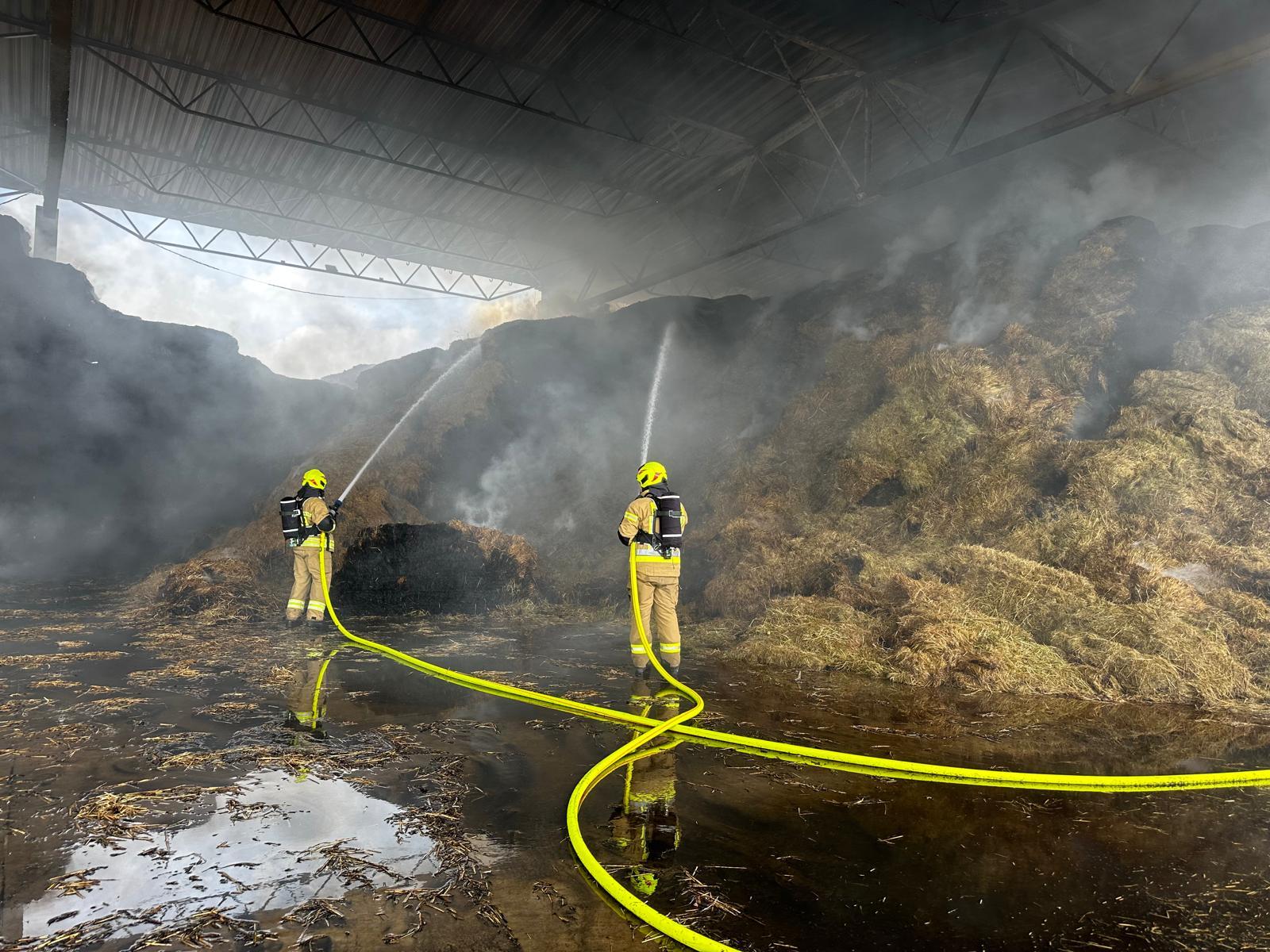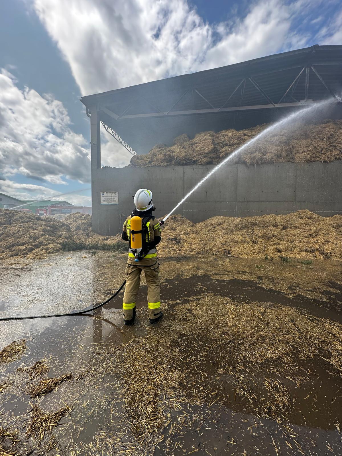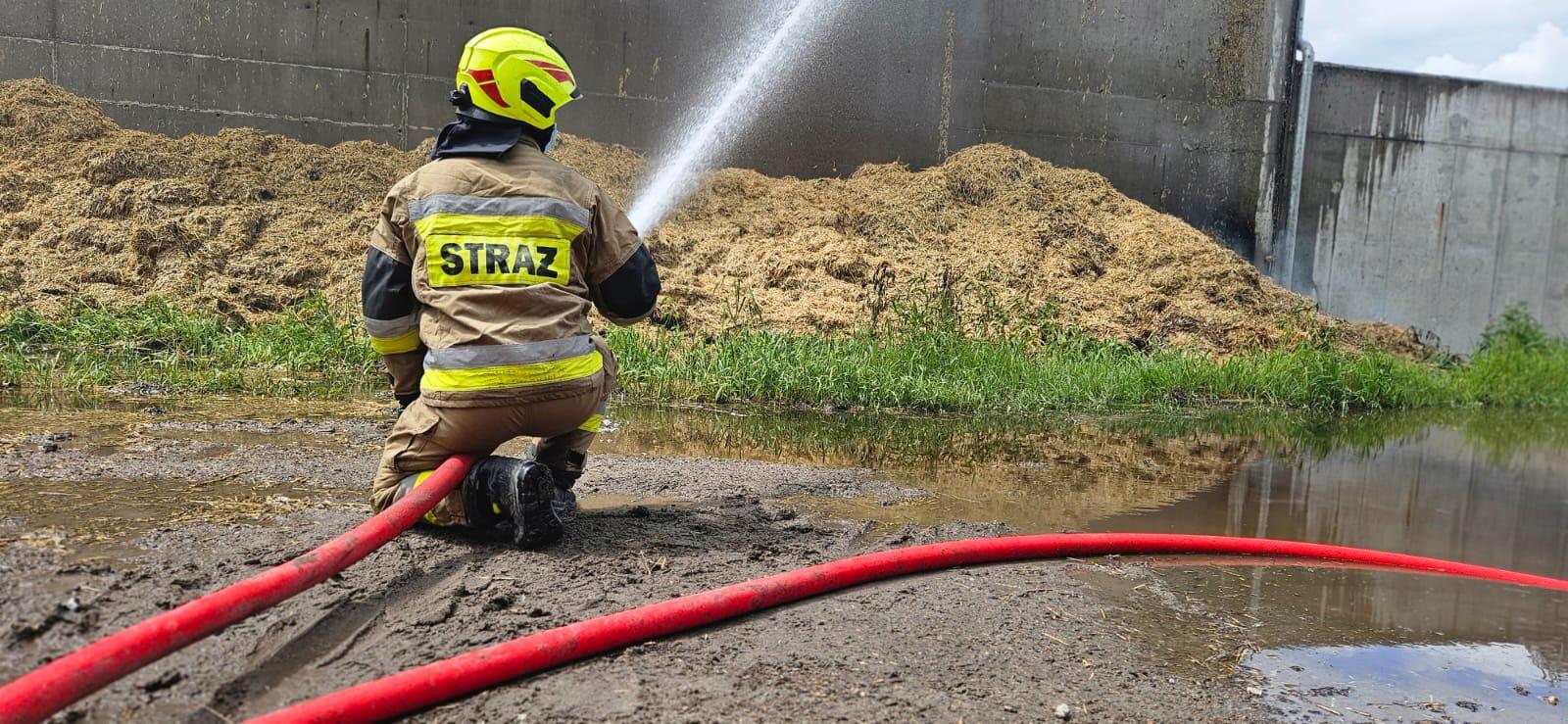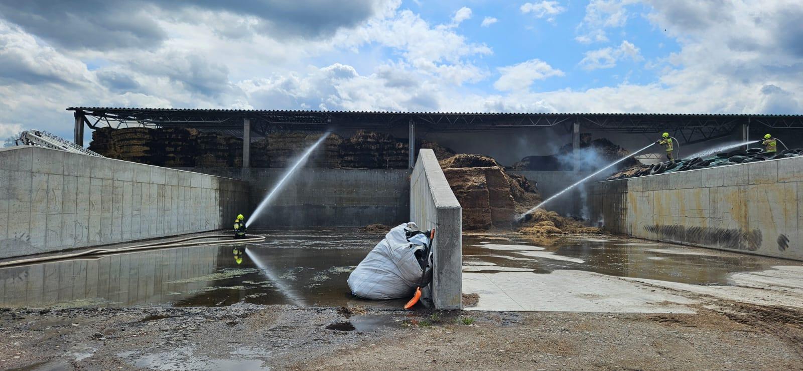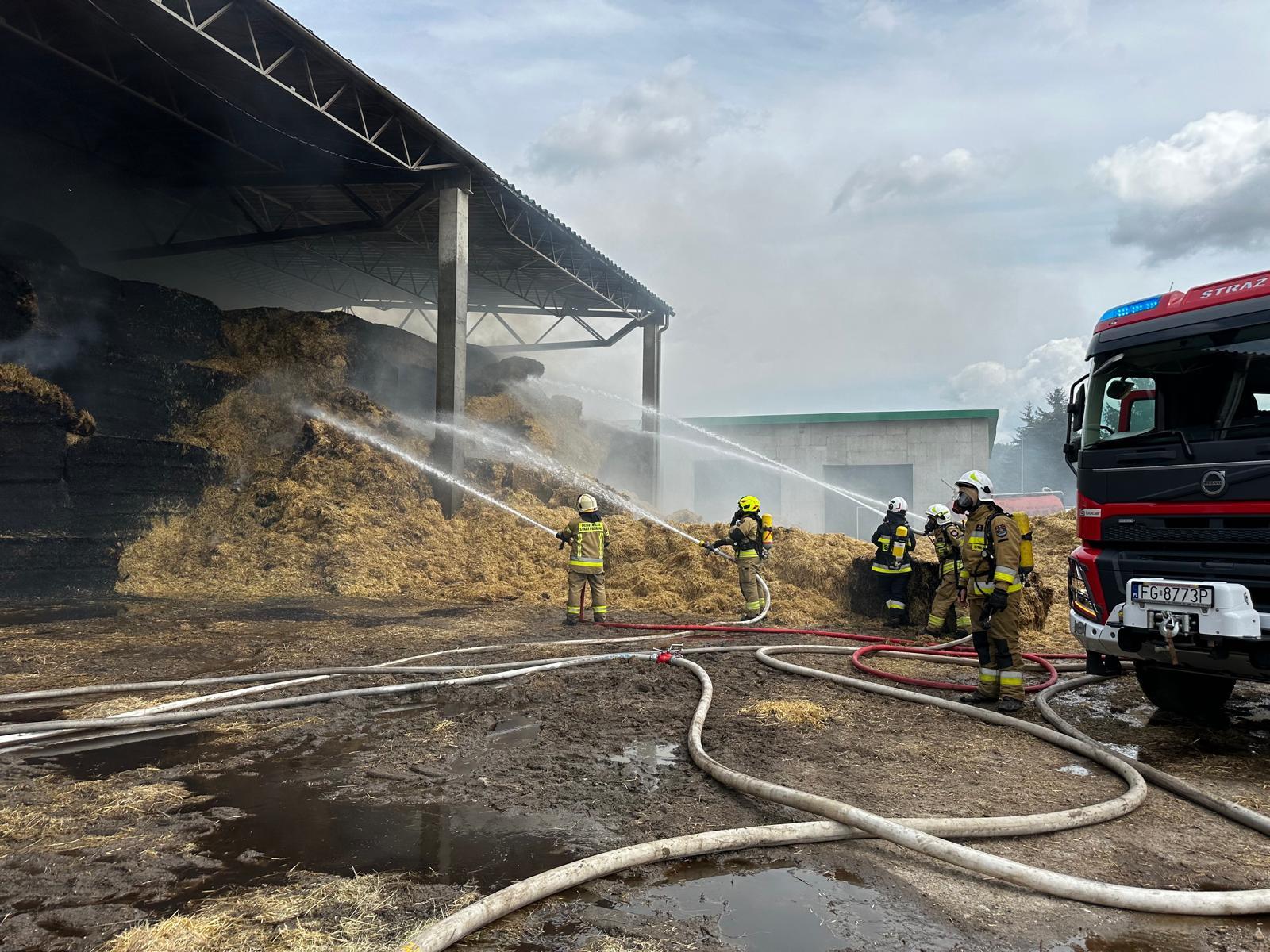 Pierwsze samochody gaśnicze przybyły po kilku minutach. Pożarem objęta była hala, w której zgromadzone były płody rolne (m.in. baloty słomy, siano, ziarno rzepaku) oraz maszyny rolnicze. Strażacy błyskawicznie przystąpili do akcji gaśniczej.