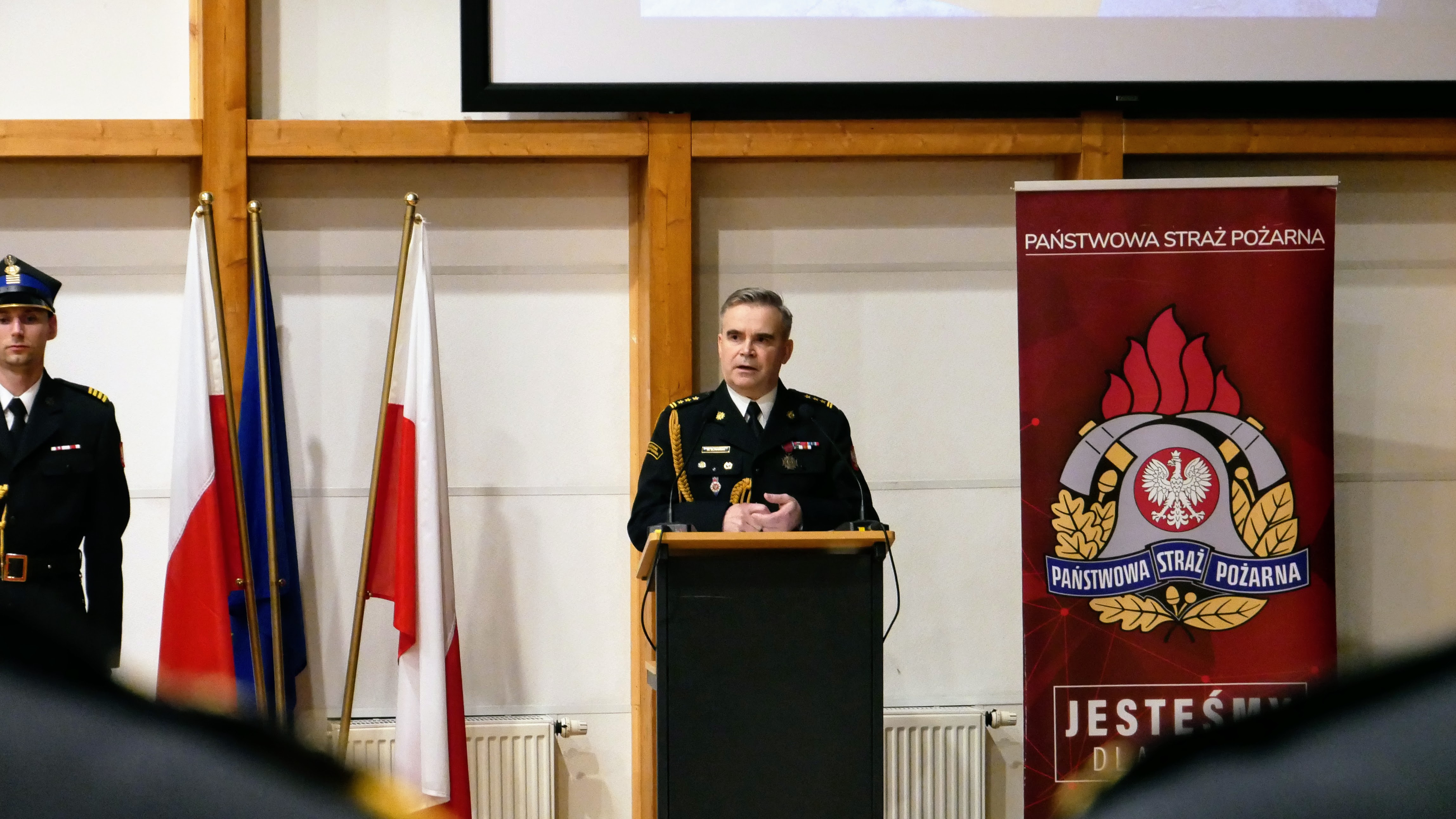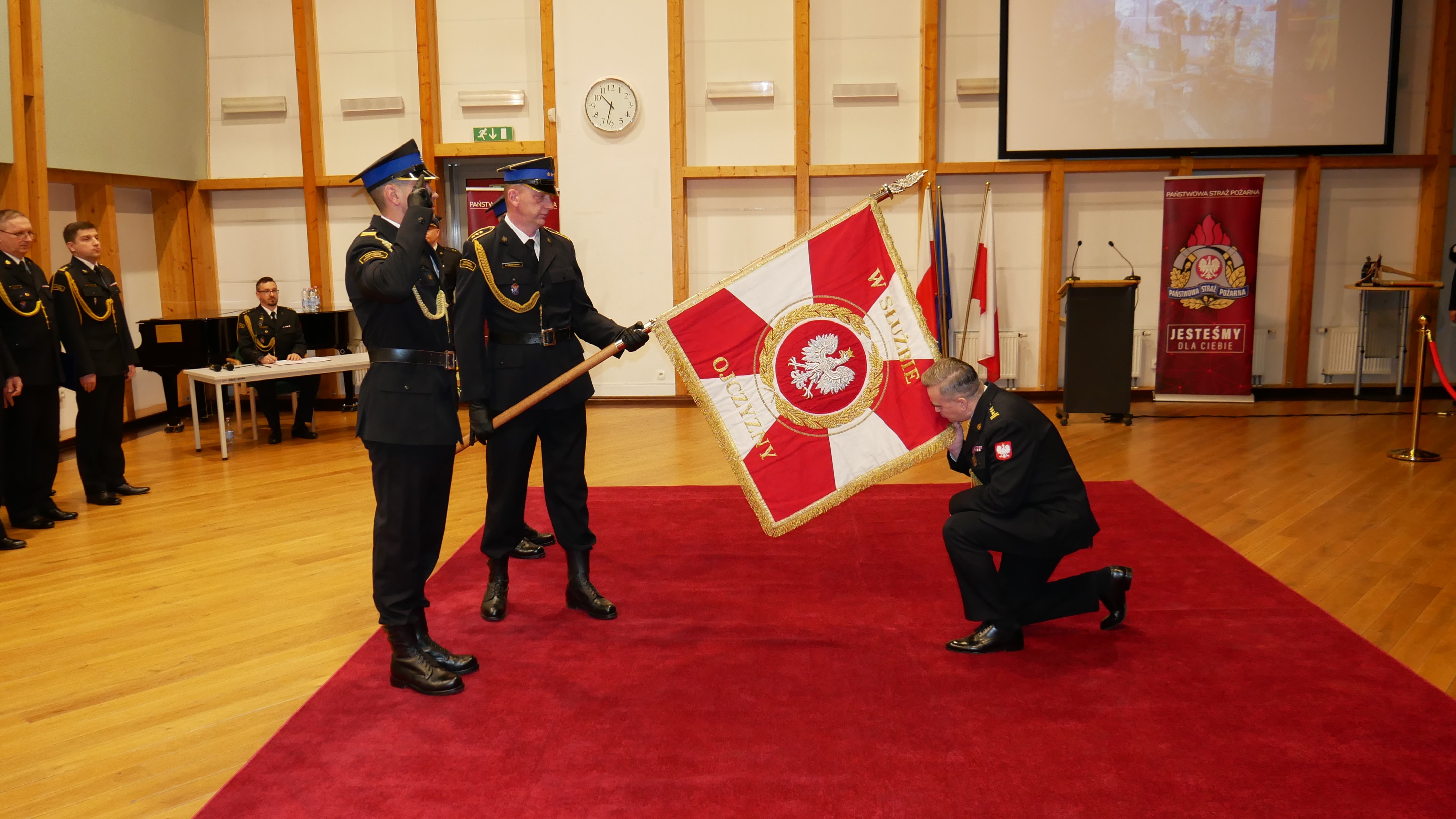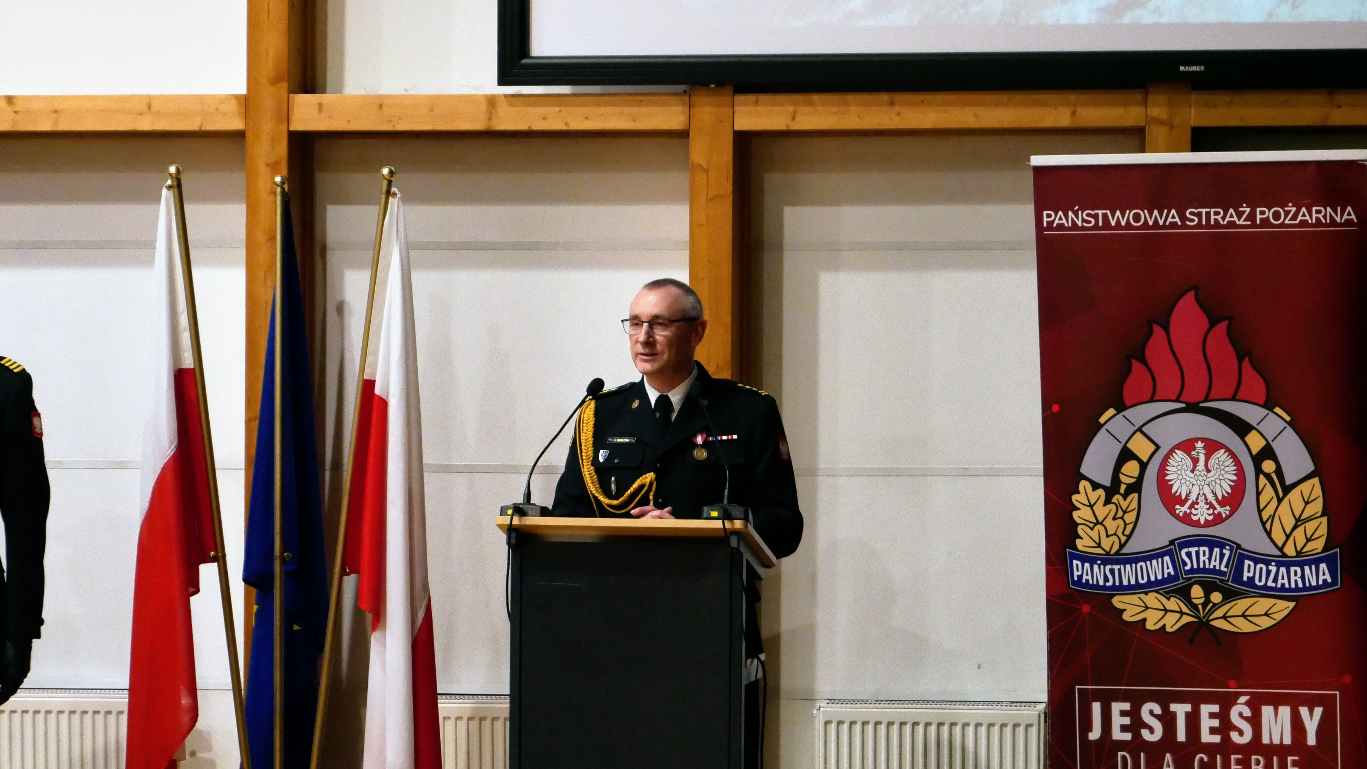 Uroczysty apel z okazji pożegnania ze służbą Komendanta Powiatowego Państwowej Straży Pożarnej w Słubicach st. bryg. Wojciecha Śliwińskiego, odbył się 22 marca 2024 r. w słubickim Collegium Polonicum.