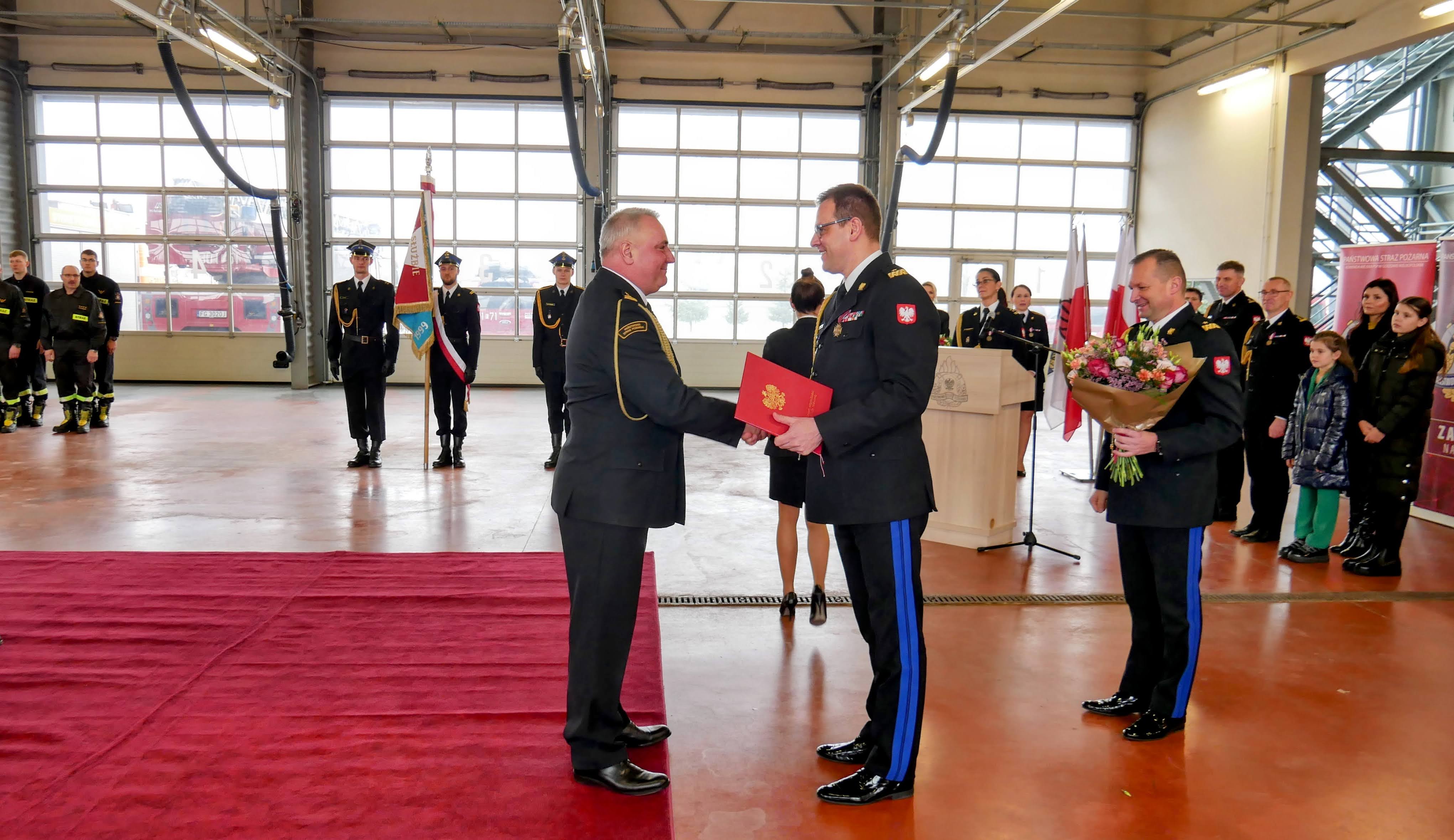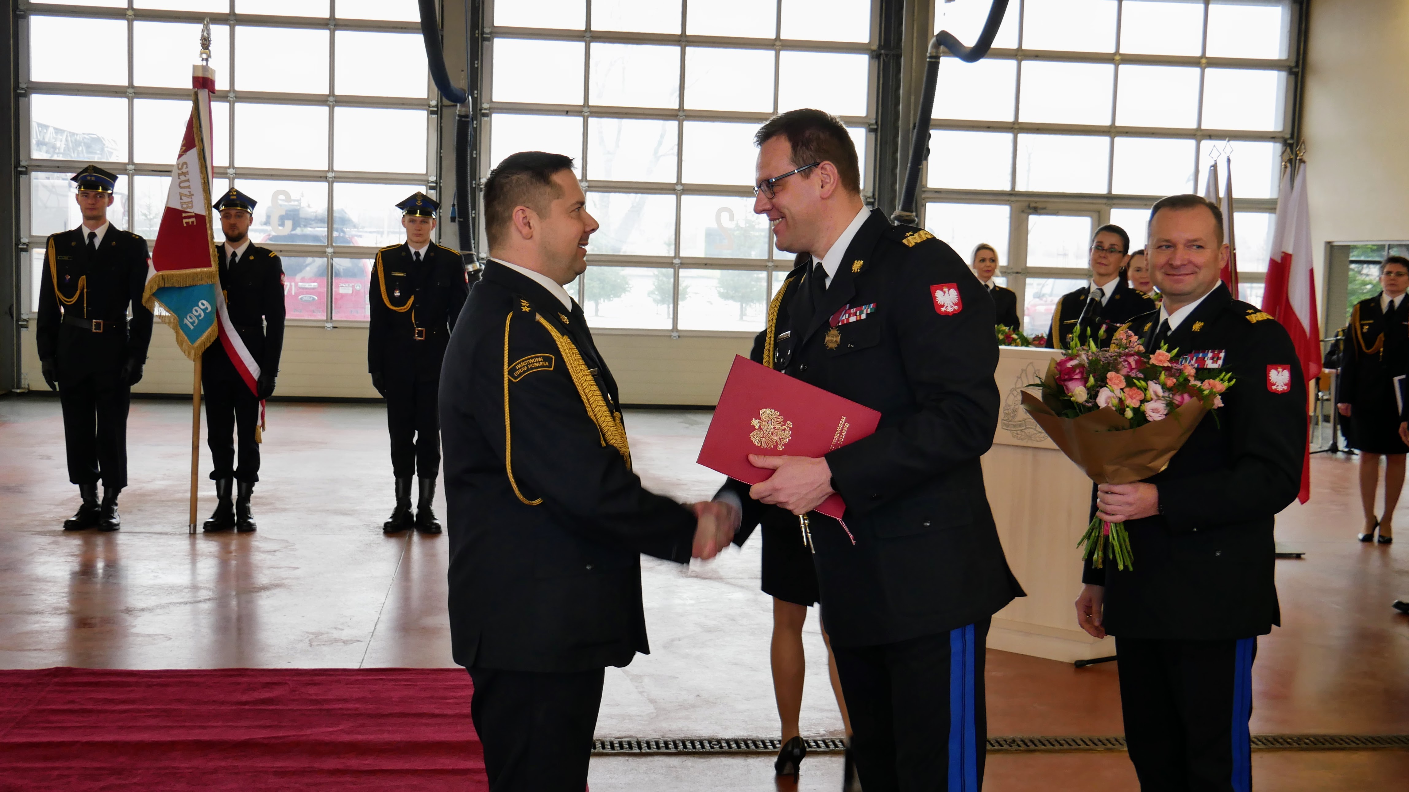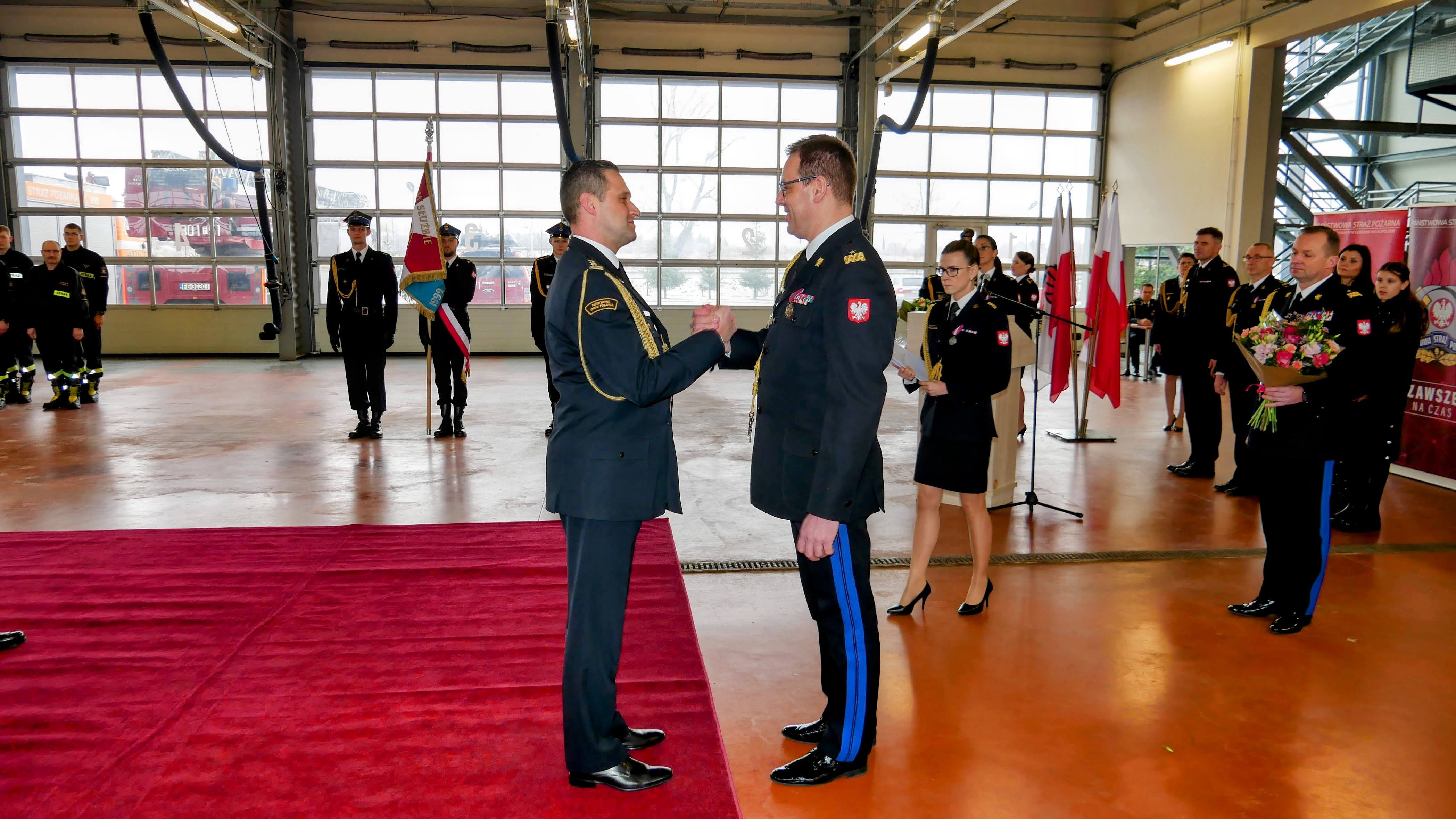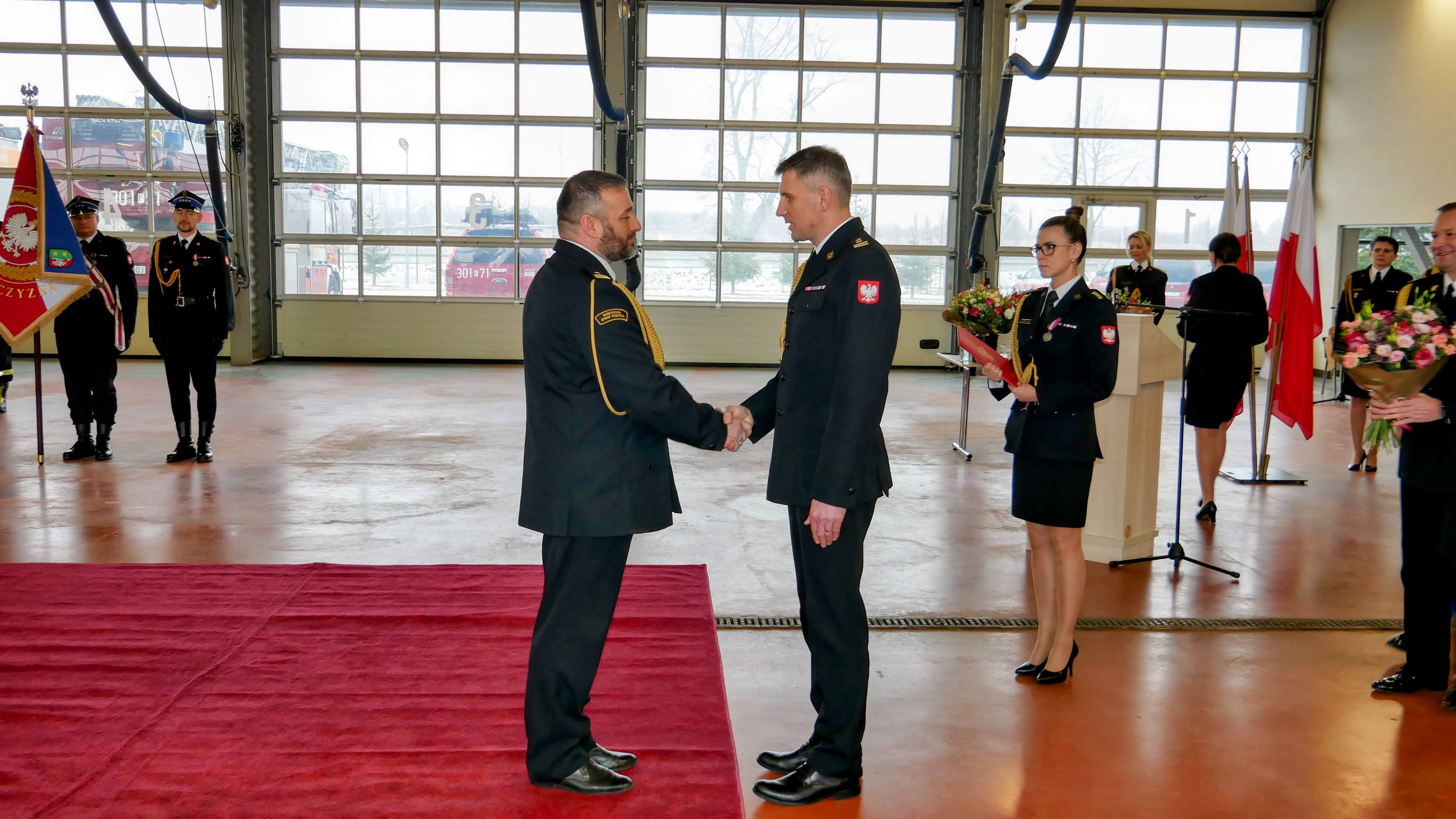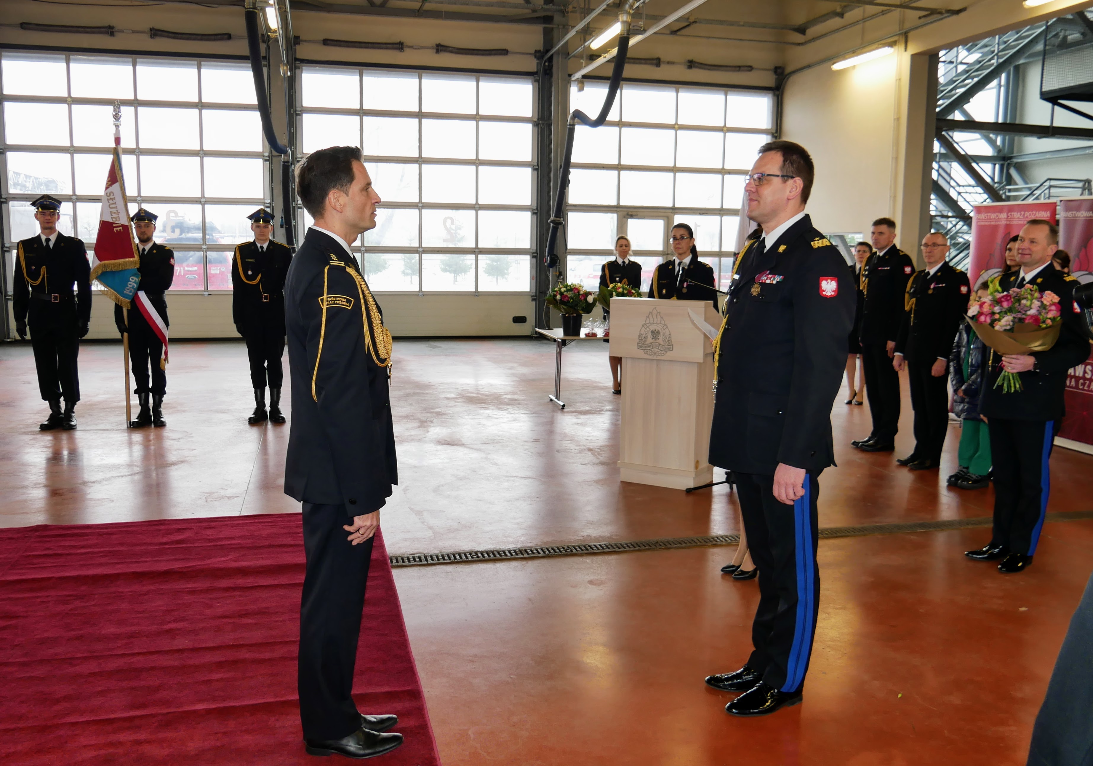 Obecny na uroczystości Zastępca Komendanta Głównego Państwowej Straży Pożarnej nadbryg. Adam Konieczny, z dniem 13 stycznia 2024 roku, powierzył pełnienie obowiązków Lubuskiego Komendanta Wojewódzkiego PSP st. bryg. Januszowi Drozdzie.