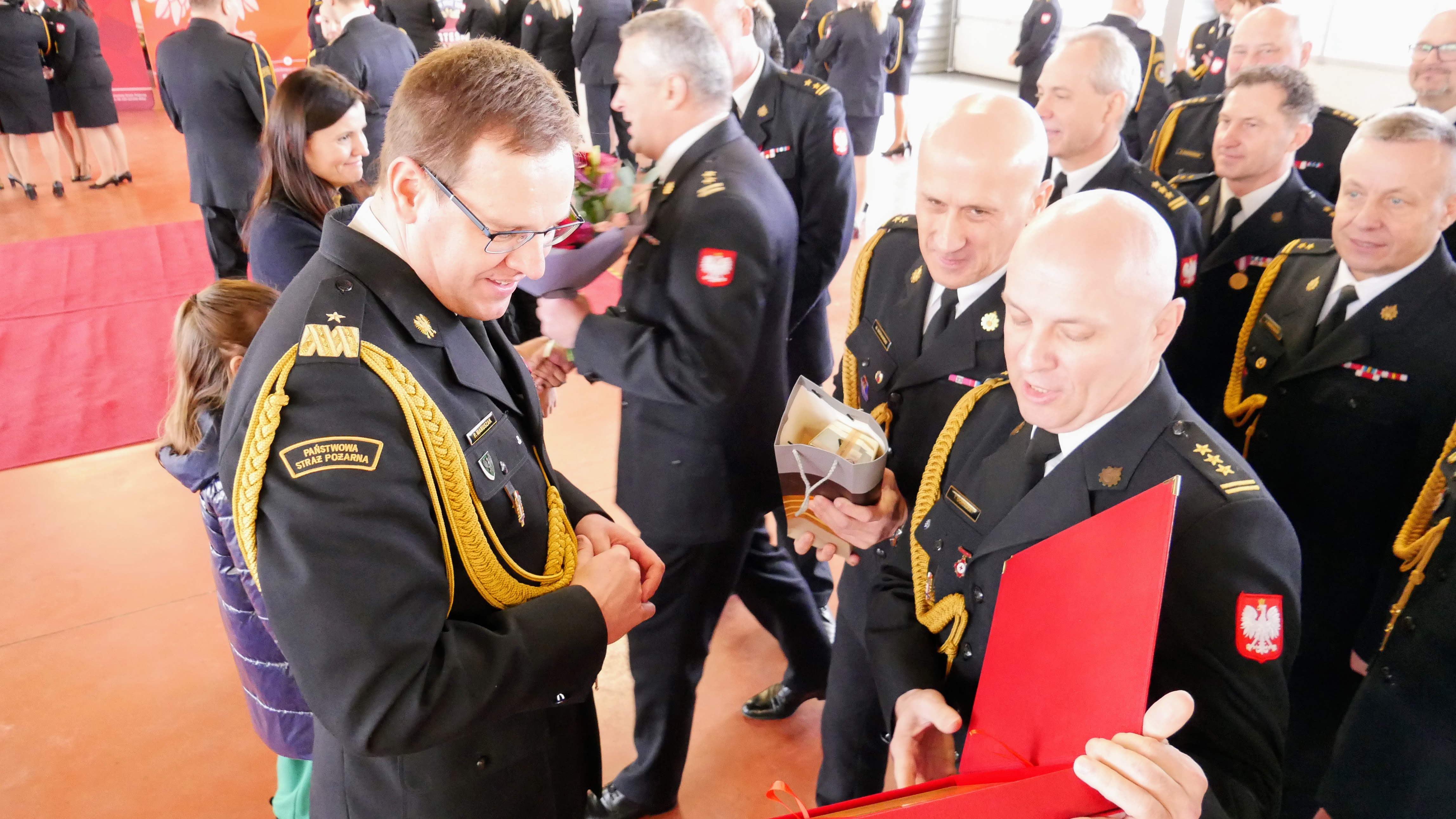 „W sposób szczególny dziękuję Wam, funkcjonariuszom i pracownikom cywilnym Komendy Miejskiej Państwowej Straży Pożarnej w Gorzowie Wielkopolskim – mojej Komendy. Mówię tak bo jestem szczęściarzem, który od zakończenia szkoły całą swoją służbę przepracował w jednej komendzie, przechodząc kolejne szczeble kariery, aż do miejsca w którym znalazłem się dzisiaj.” – powiedział mł. bryg. Jarosław Rojna.