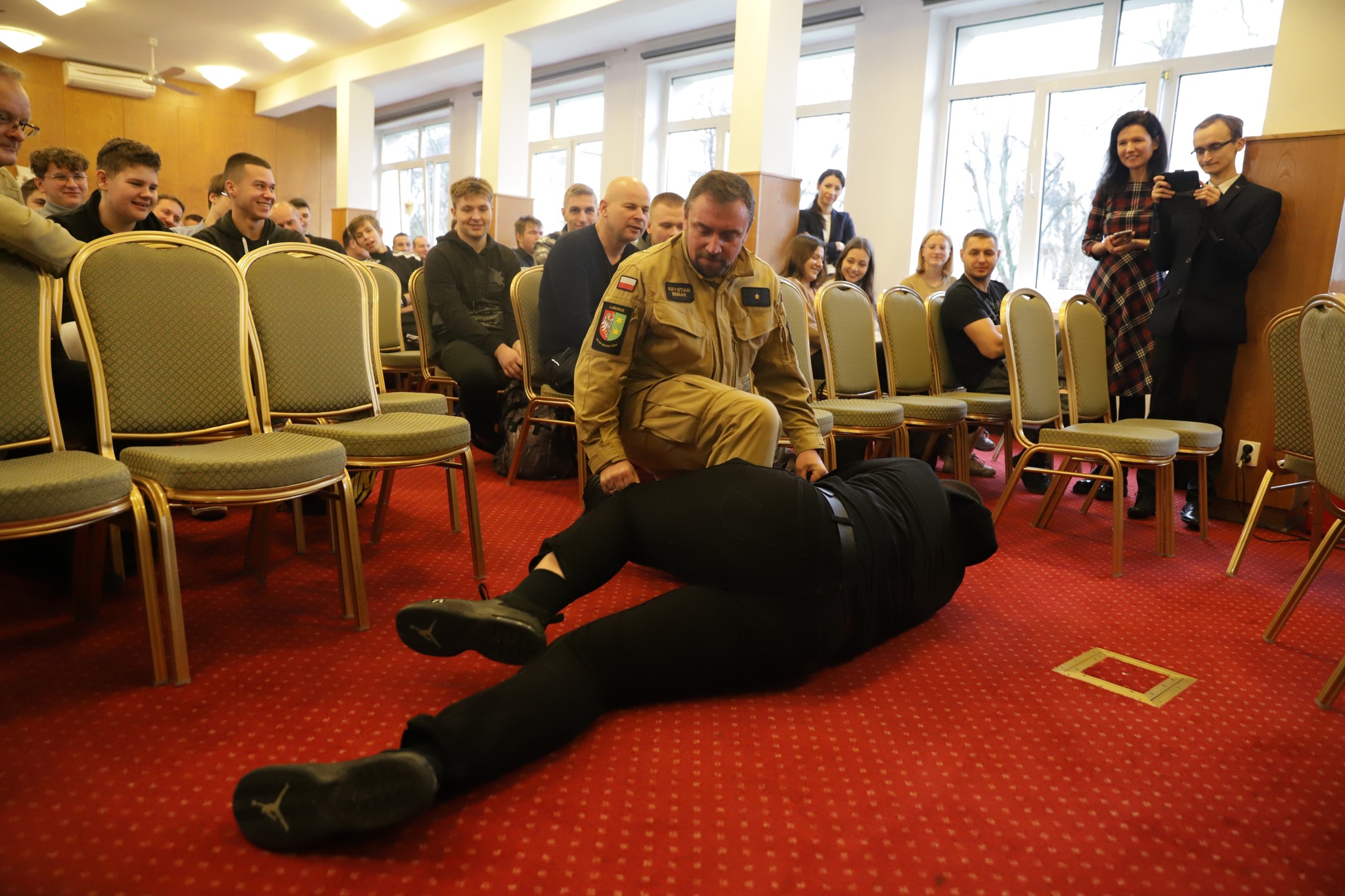 Podczas olimpiady, st. kpt. Aleksandra Świstel – koordynator Prewencji Społecznej PSP woj. lubuskiego oraz mł. asp. Krystian Misiak z Komendy Miejskiej PSP w Zielonej Górze przygotowali interaktywną prelekcję pt.: ROLA PREWENCJI W CODZIENNYM ŻYCIU.