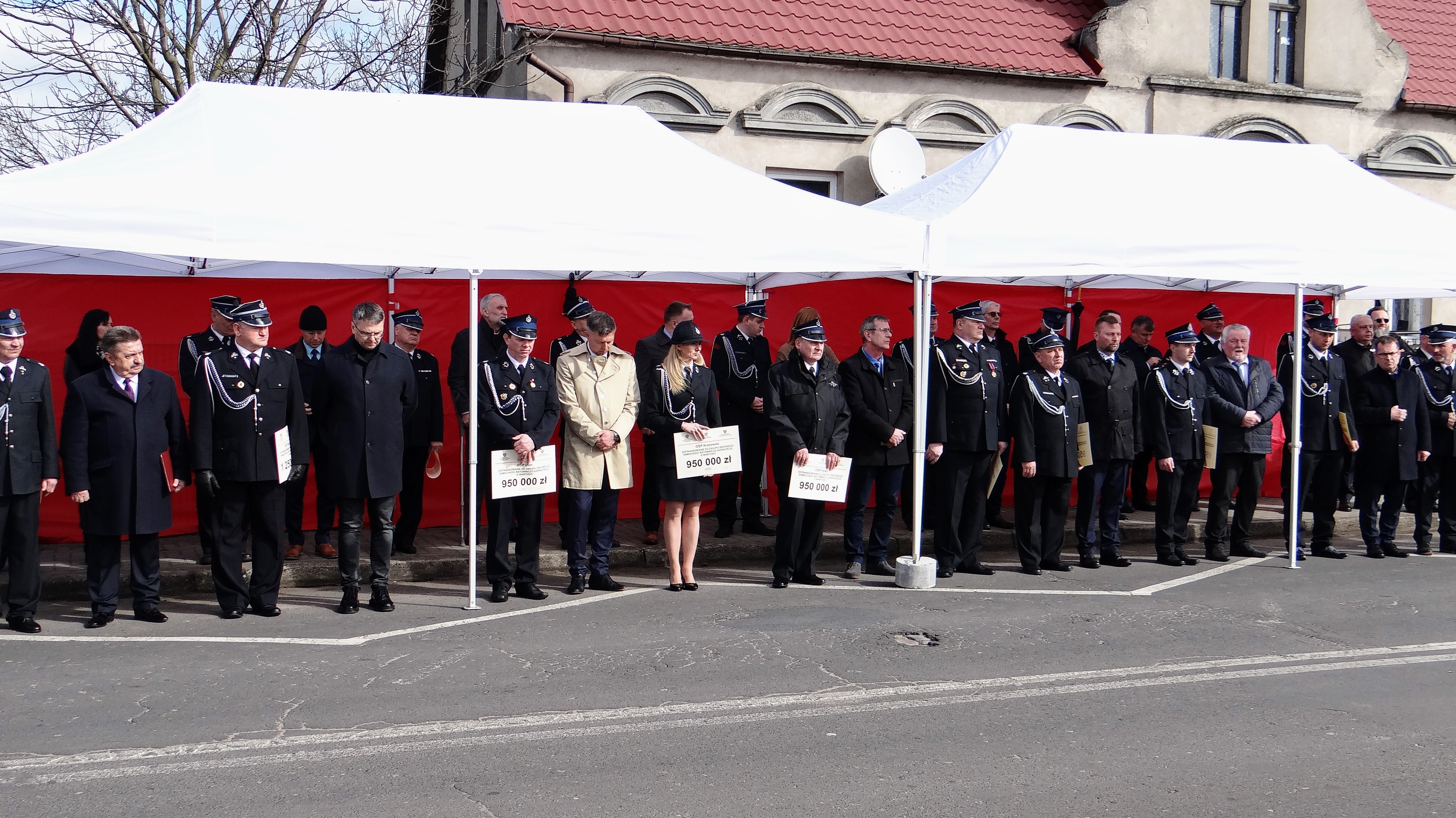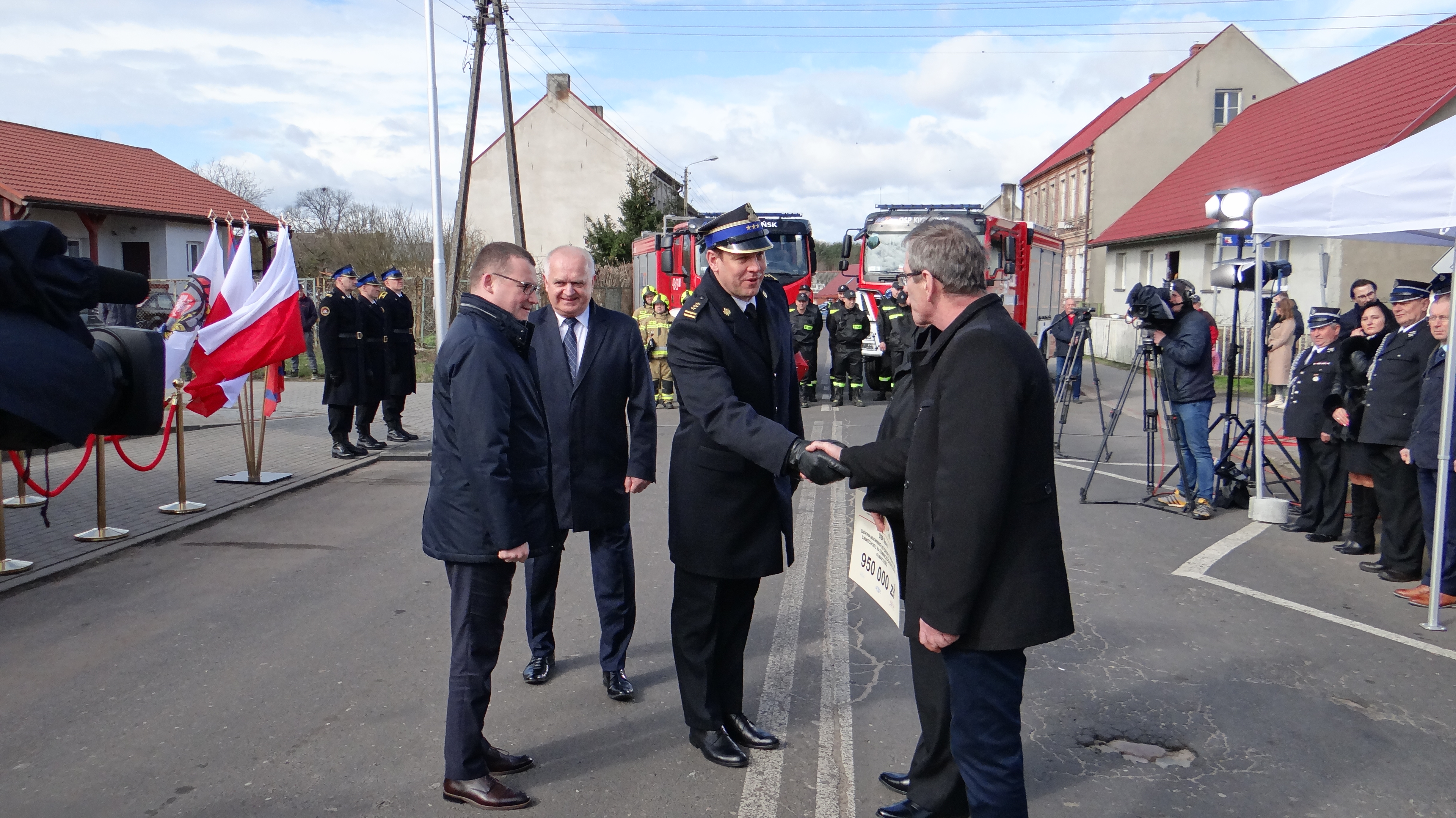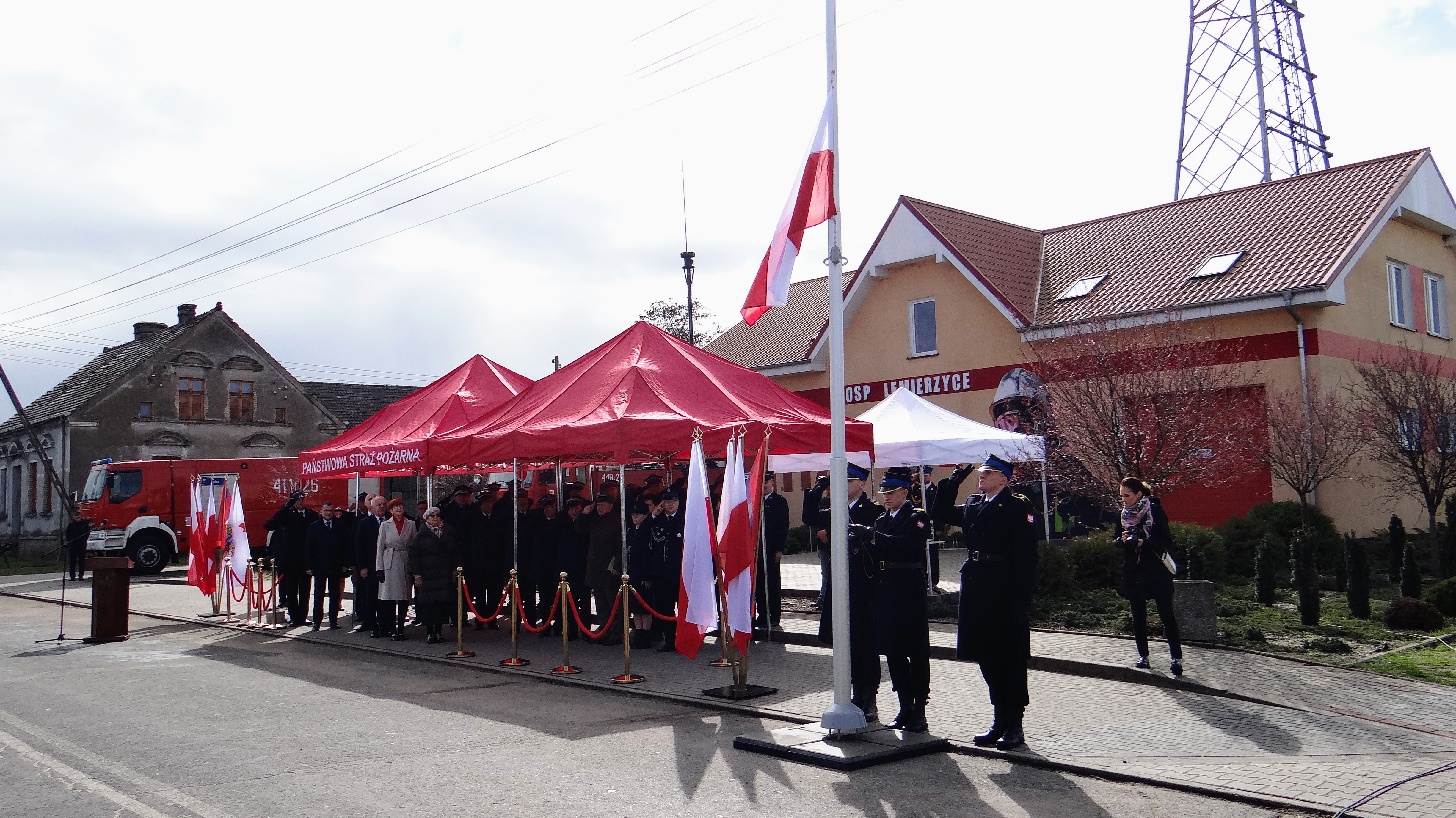 Lubuski Komendant Wojewódzki Państwowej Straży Pożarnej st. bryg. Patryk Maruszak wraz z Wojewodą Lubuskim Władysławem Dajczakiem, powitali przybyłych gości przed remizą OSP Lemierzyce, która jako jedna z 20 lubuskich jednostek OSP otrzymała deklarację wsparcia finansowego.
