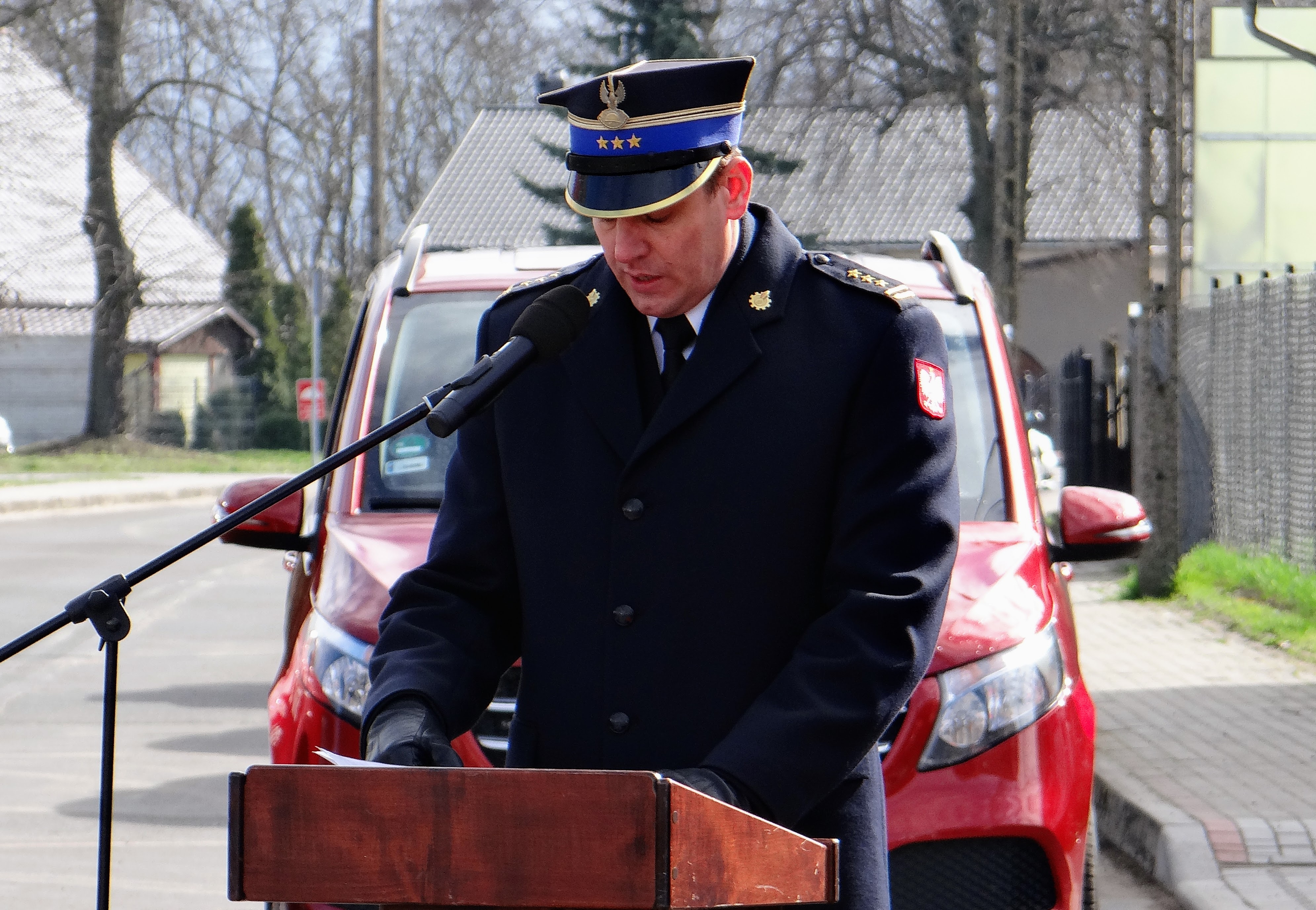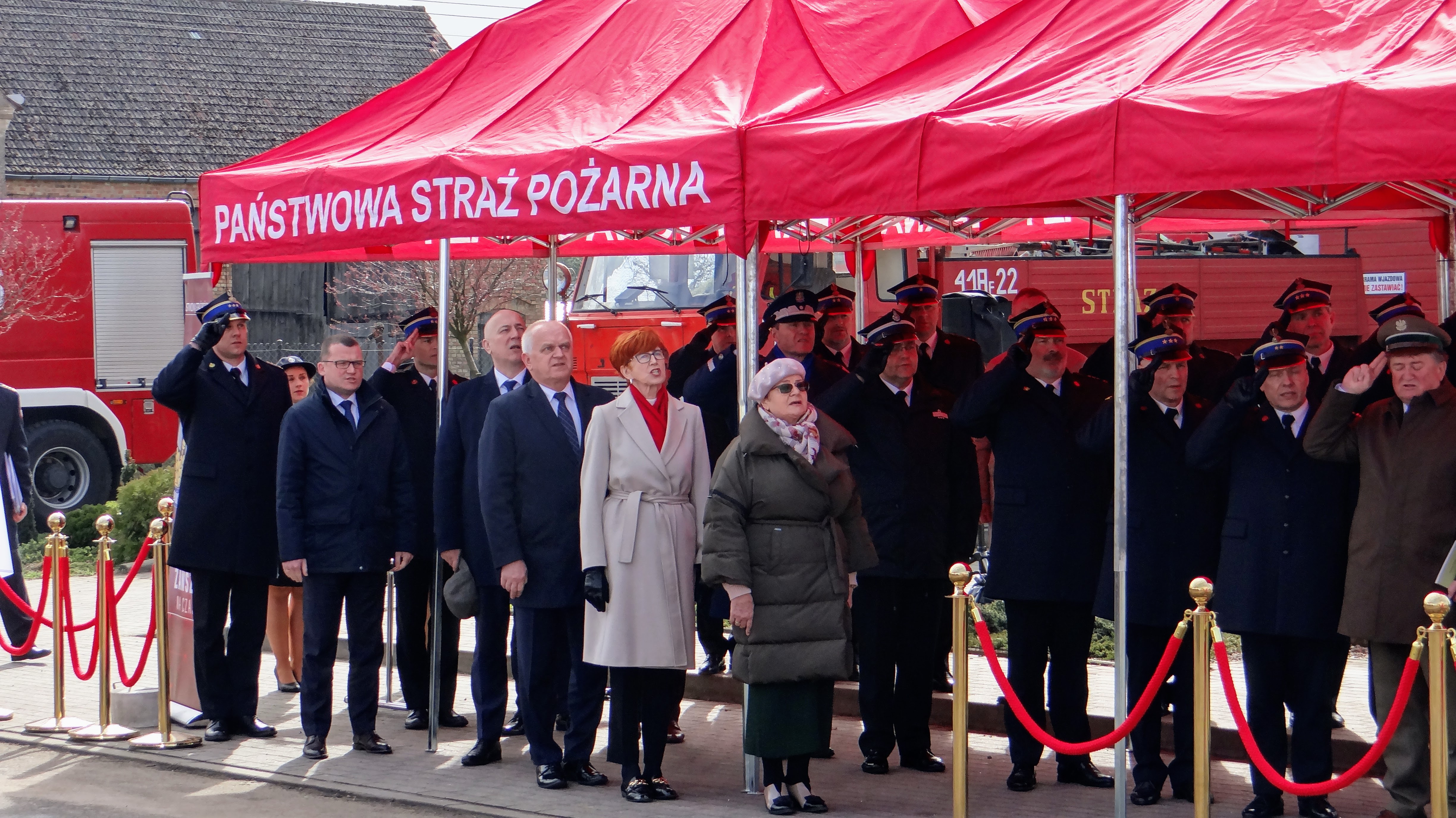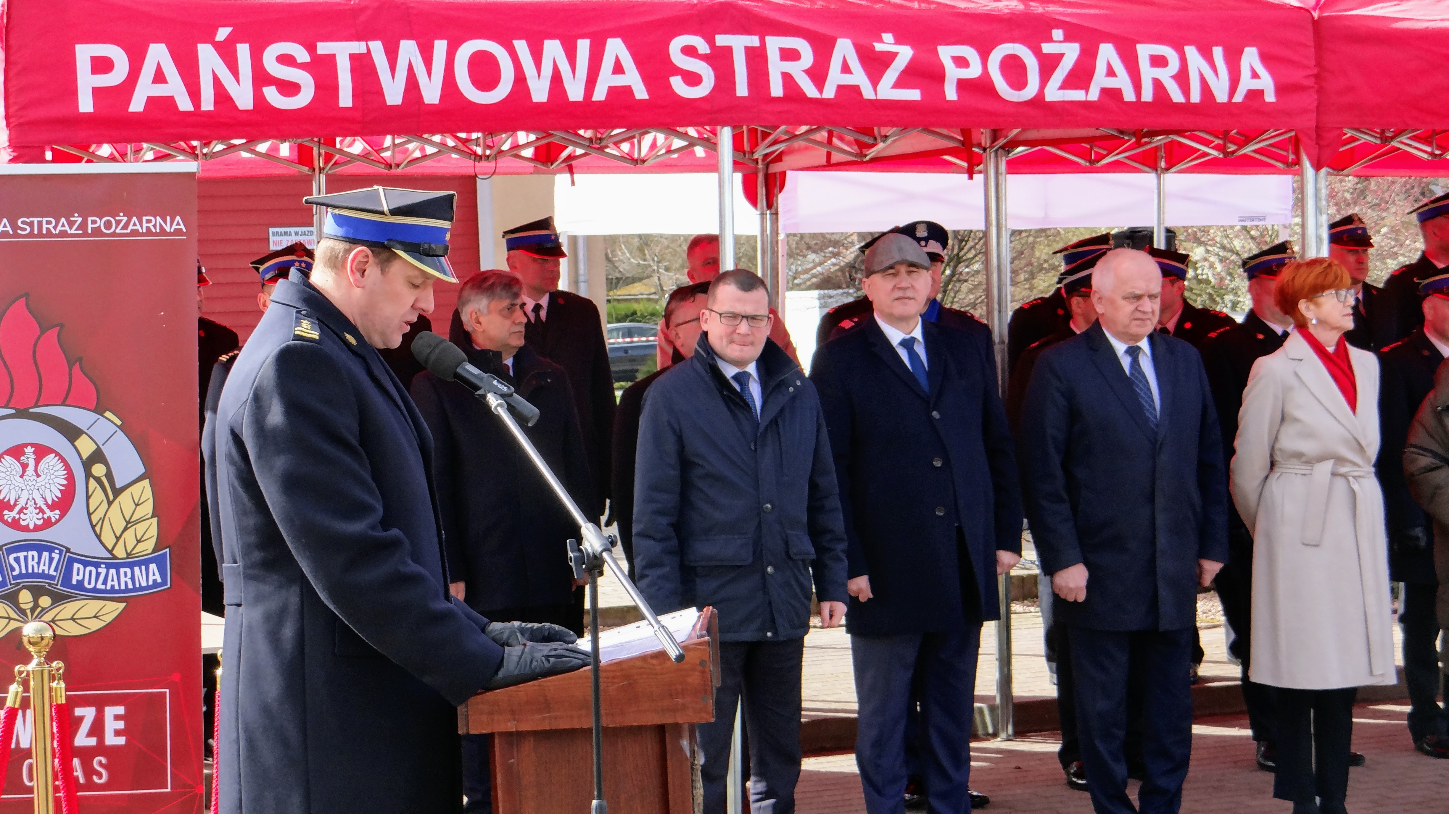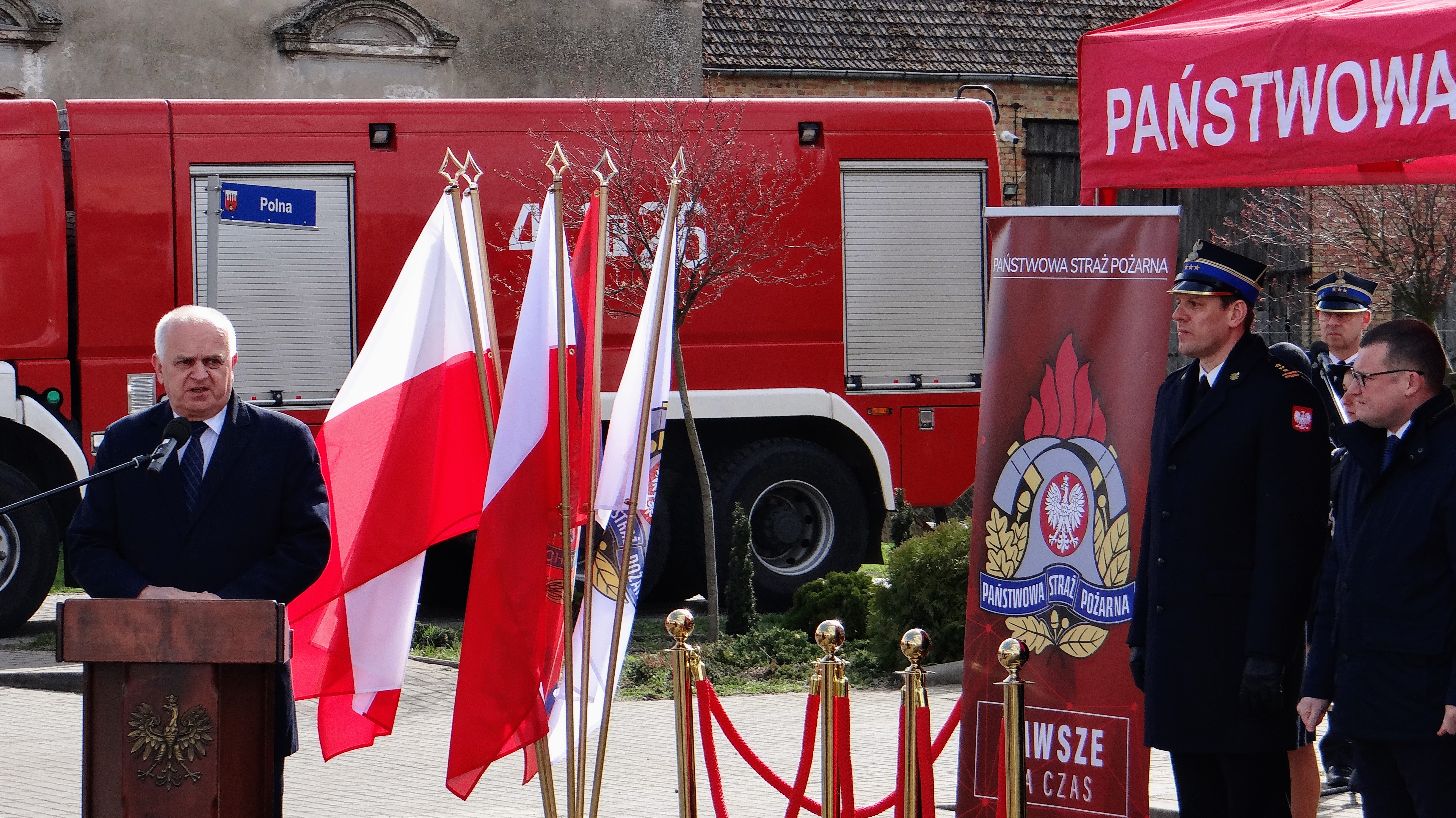 Lubuski Komendant Wojewódzki Państwowej Straży Pożarnej st. bryg. Patryk Maruszak wraz z Wojewodą Lubuskim Władysławem Dajczakiem, powitali przybyłych gości przed remizą OSP Lemierzyce, która jako jedna z 20 lubuskich jednostek OSP otrzymała deklarację wsparcia finansowego.