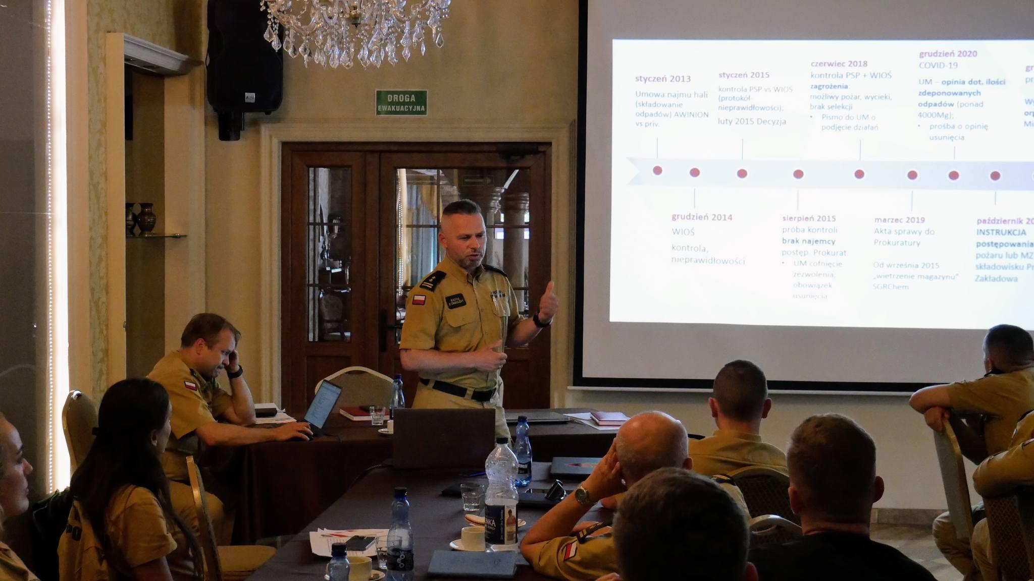 Zagadnienia omawiali funkcjonariusze odpowiedzialni za podejmowane tematy: st. bryg. Bartłomiej Mądry, bryg. Rafał Konieczny, st. bryg. Rafał Naks, bryg. Marcin Bohuszko, mł. bryg. Piotr Wiliński, mł. bryg. Tomasz Fedko, mł. bryg. Ireneusz Woźniak, mł. bryg. Arkadiusz Kaniak, kpt. Michał Mołodczak, mł. kpt. Lucjan Cybulski, mł. kpt. Adam Domański, mł. asp. Paweł Posmyk, st. str. Martyna Zielińska.