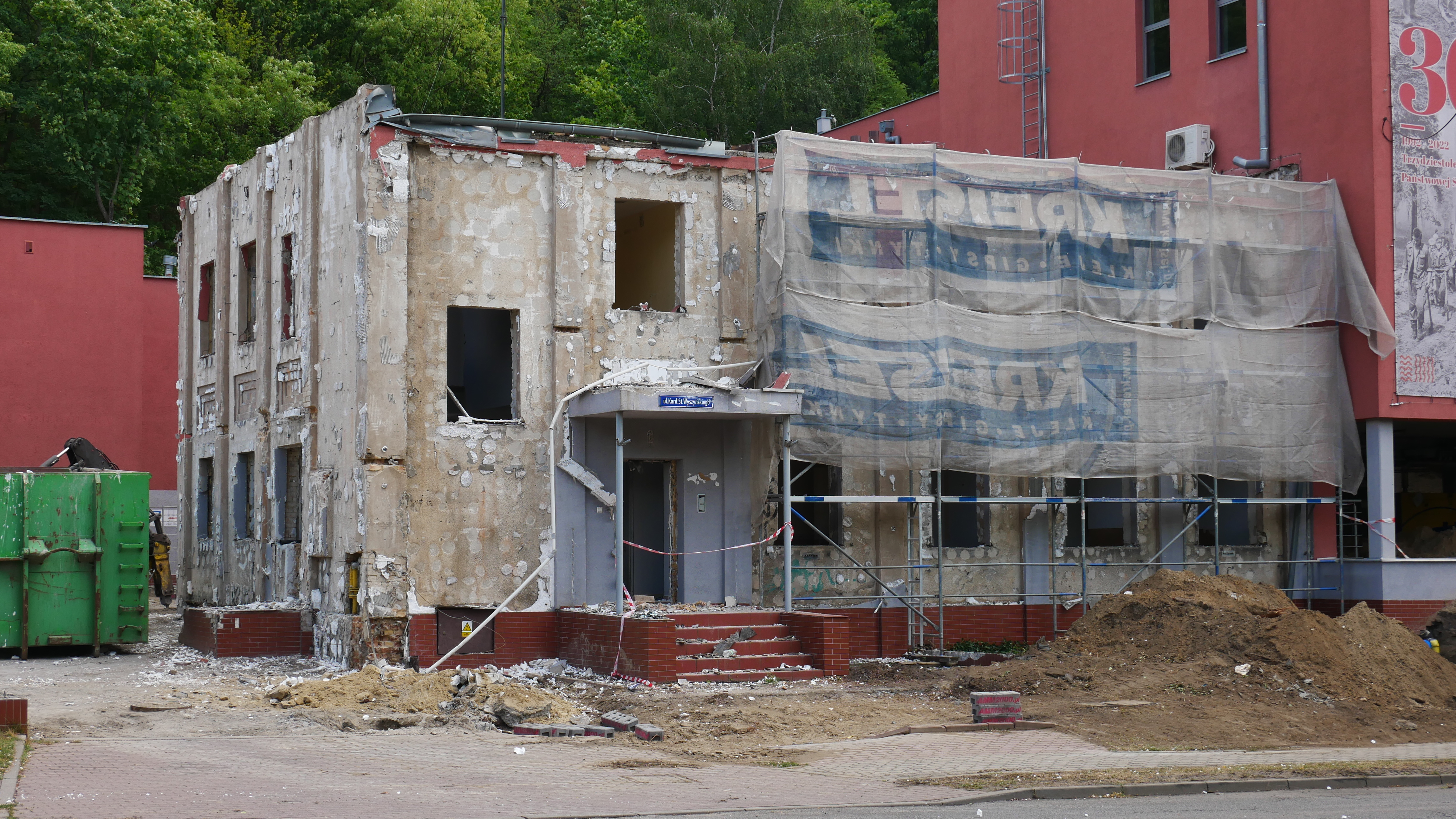W związku z prowadzonymi pracami i możliwymi utrudnieniami w ruchu jakie mogą nastąpić w okresie przebudowy budynków, kierowcy przejeżdżający ulicą Wyszyńskiego muszą zachować szczególną ostrożność. Petentów z niepełnosprawnością ruchową chcących załatwić sprawy urzędowe prosimy o wcześniejszy telefon do komendy.