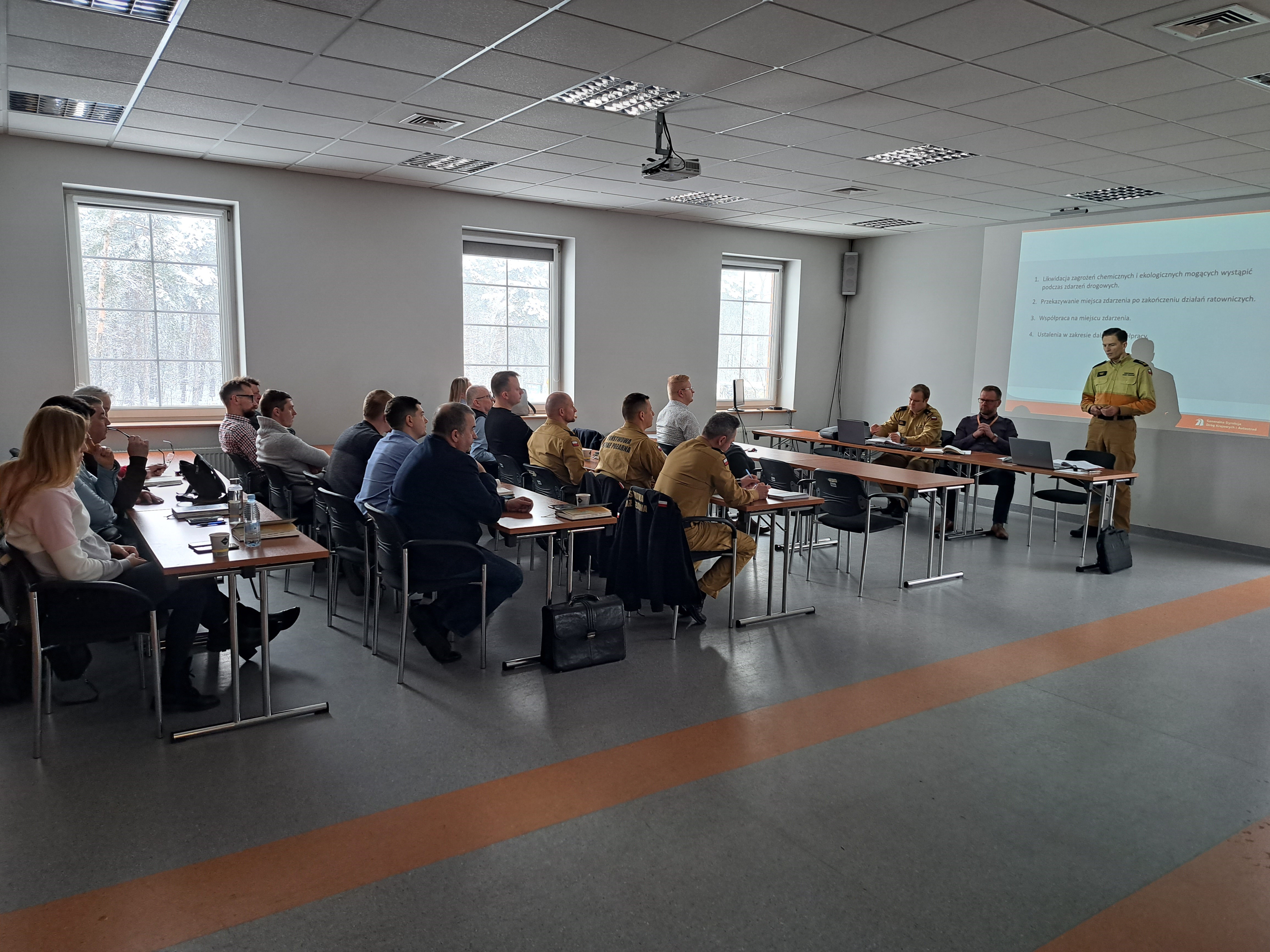 Stronę GDDKiA reprezentował Pan Leszek Słowik Naczelnik Zarządzania Kryzysowego i Bezpieczeństwa GDDKiA o/Zielona Góra wraz z kierownikami rejonów oraz przedstawicielami odwodów utrzymania dróg.
