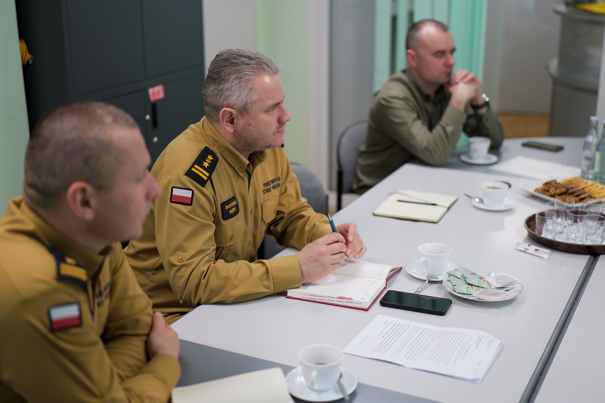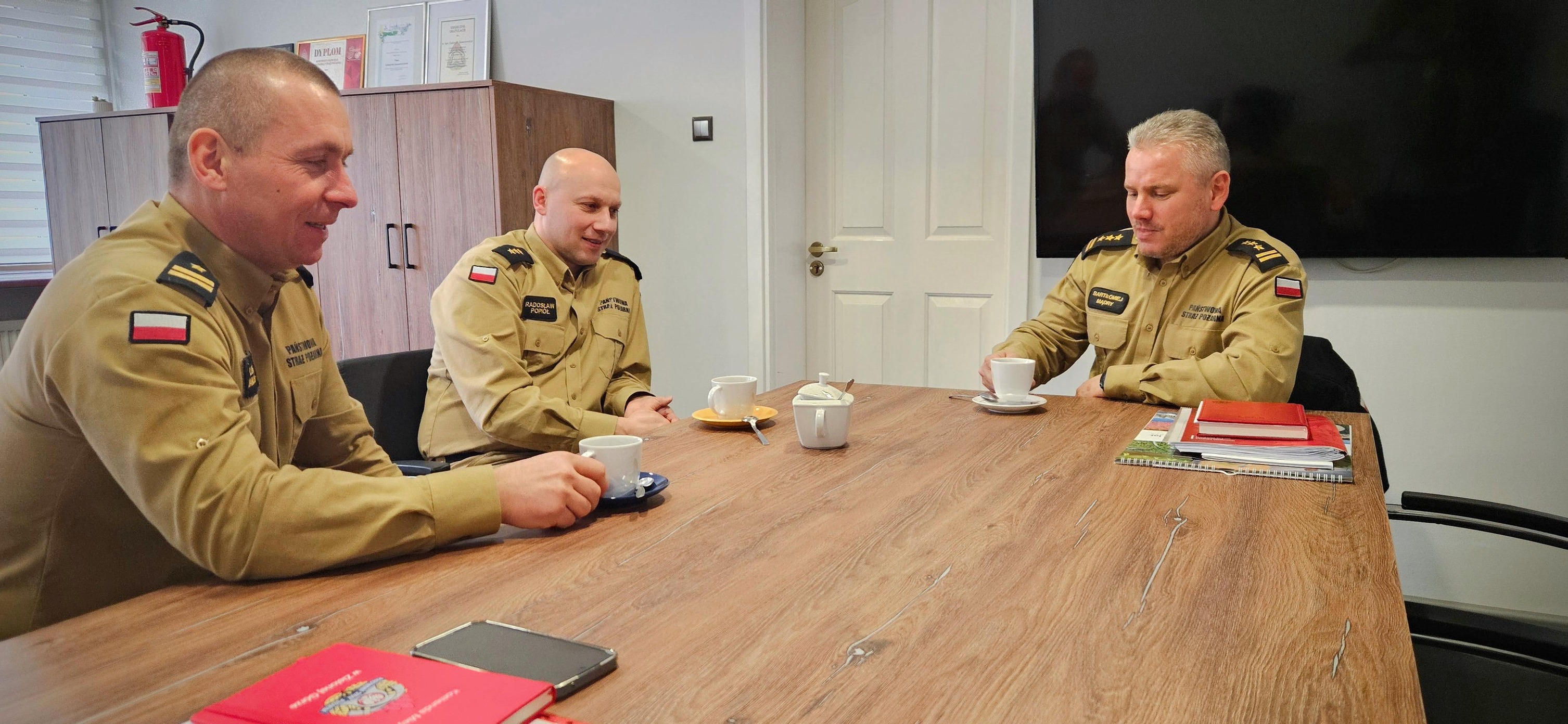 Wizyta Zastępcy Lubuskiego Komendanta Wojewódzkiego PSP st. bryg. Bartłomieja Mądrego była także okazją do omówienia bieżących zagadnień z kierownictwem Komendy Miejskiej PSP w Zielonej Górze. Podczas rozmów poruszono kwestie organizacyjne oraz współpracy w zakresie bezpieczeństwa przeciwpożarowego na terenie miasta i regionu.