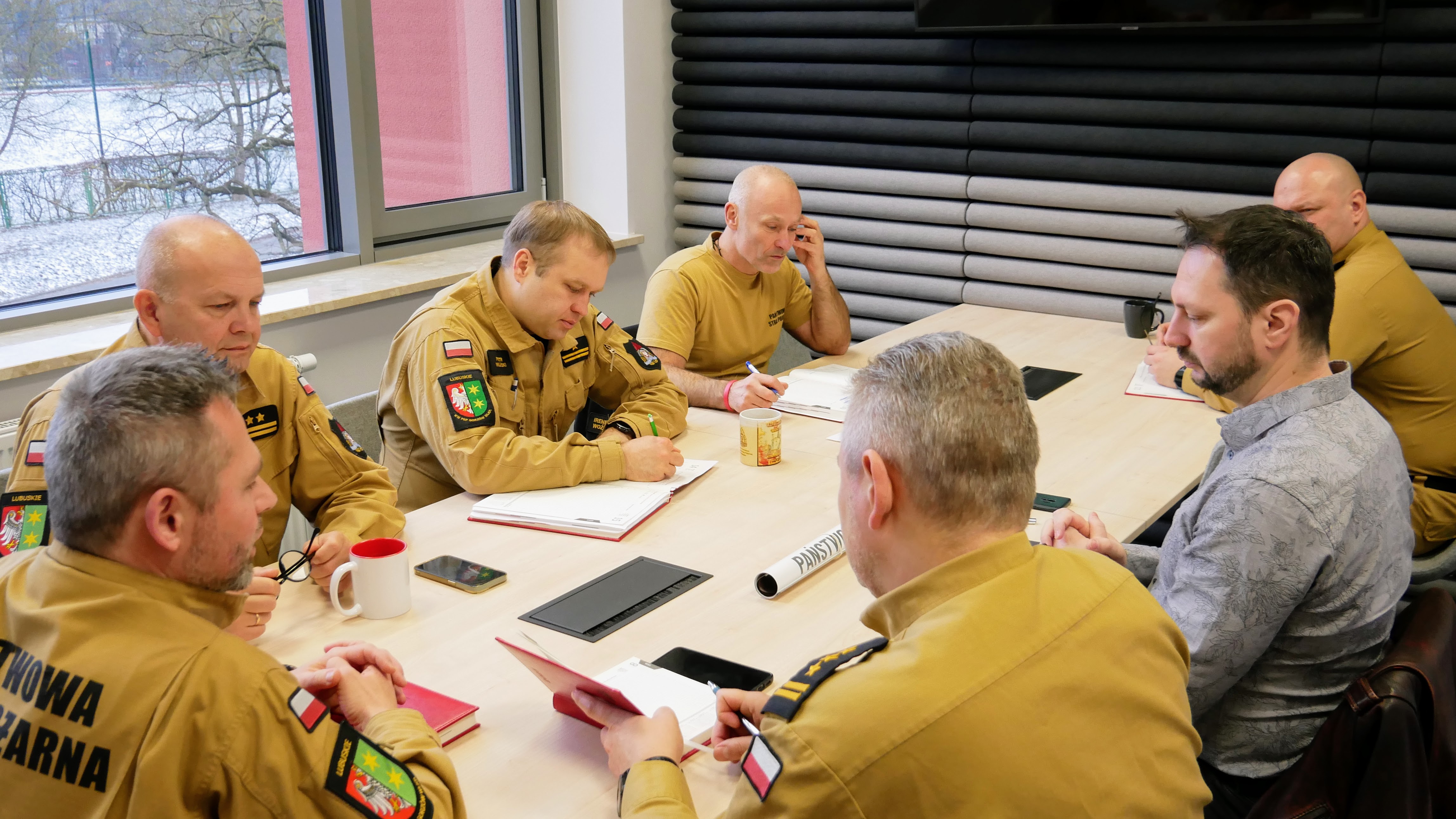 Dnia 14 stycznia 2025 r. w siedzibie Komendy Wojewódzkiej PSP w Gorzowie Wielkopolskim odbyło się spotkanie z Panem Michałem Czarnuszewiczem – konsultantem medycyny ratunkowej Lubuskiego Urzędu Wojewódzkiego. W rozmowach uczestniczyli Zastępcy Lubuskiego Komendanta Wojewódzkiego PSP: st. bryg. Rafał Konieczny oraz st. bryg. Bartłomiej Mądry, a także funkcjonariusze z Wydziału Planowania Operacyjnego oraz Ośrodka Szkolenia KW PSP w Gorzowie.