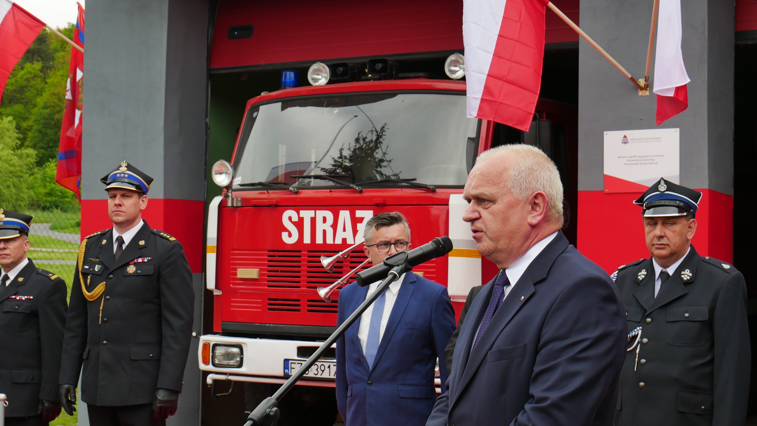 Uroczyste wręczenie promes na zakup nowych średnich samochodów ratowniczo-gaśniczych dla jednostek OSP