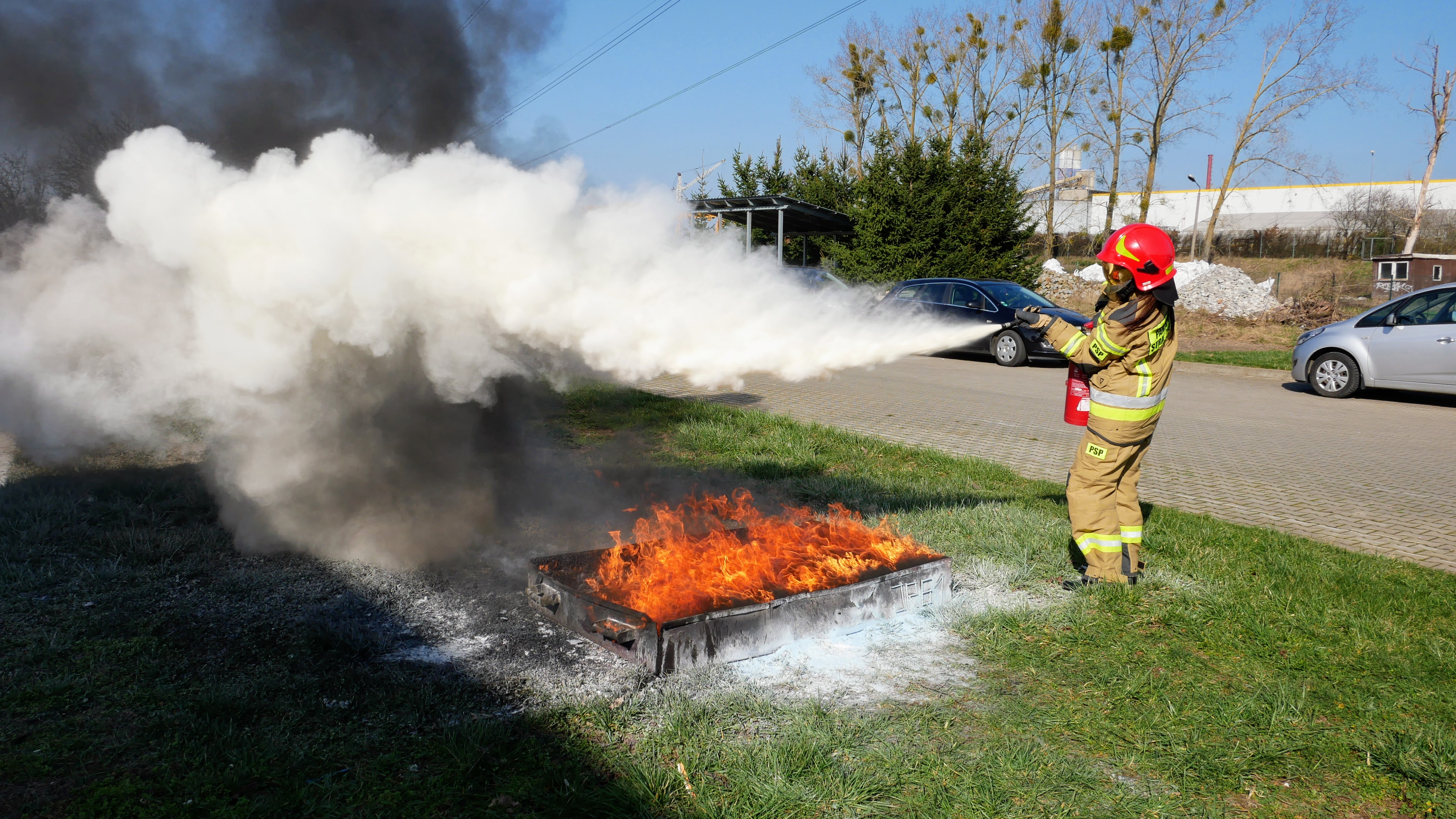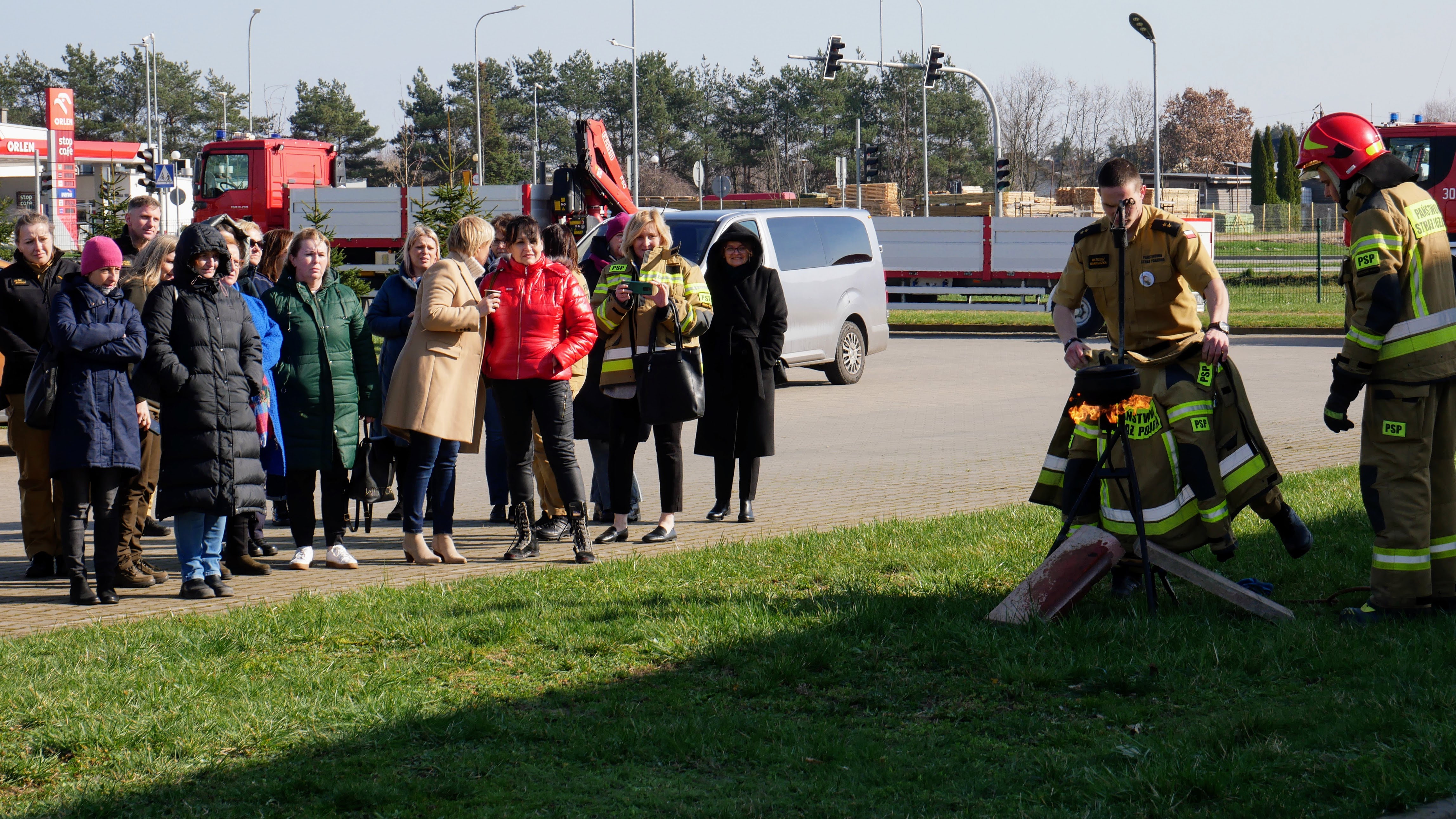 Na zakończenie, uczestniczki mogły zobaczyć widowiskowy pokaz wyrzutu płonącego oleju spożywczego po niewłaściwej próbie gaszenia go wodą.