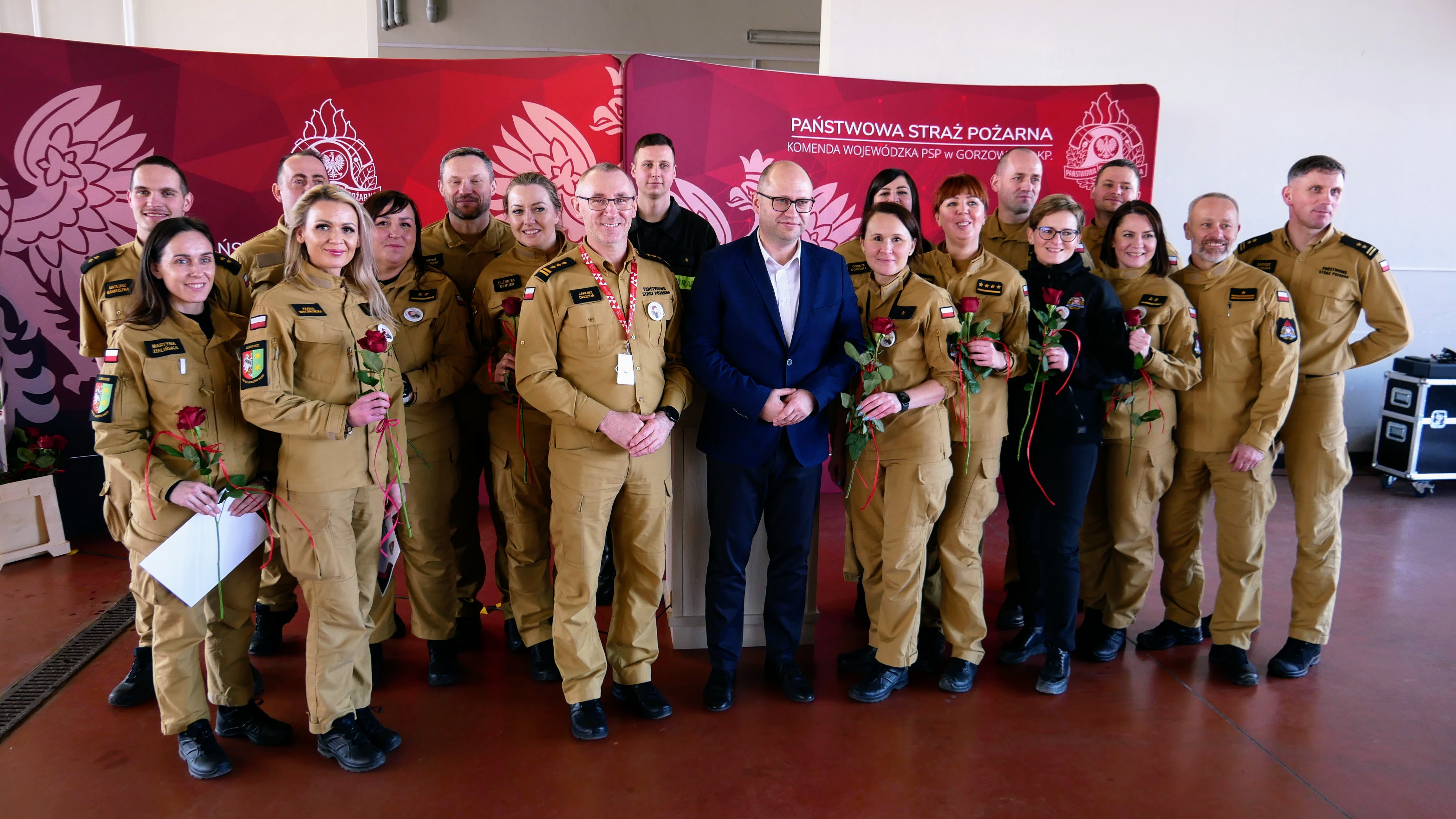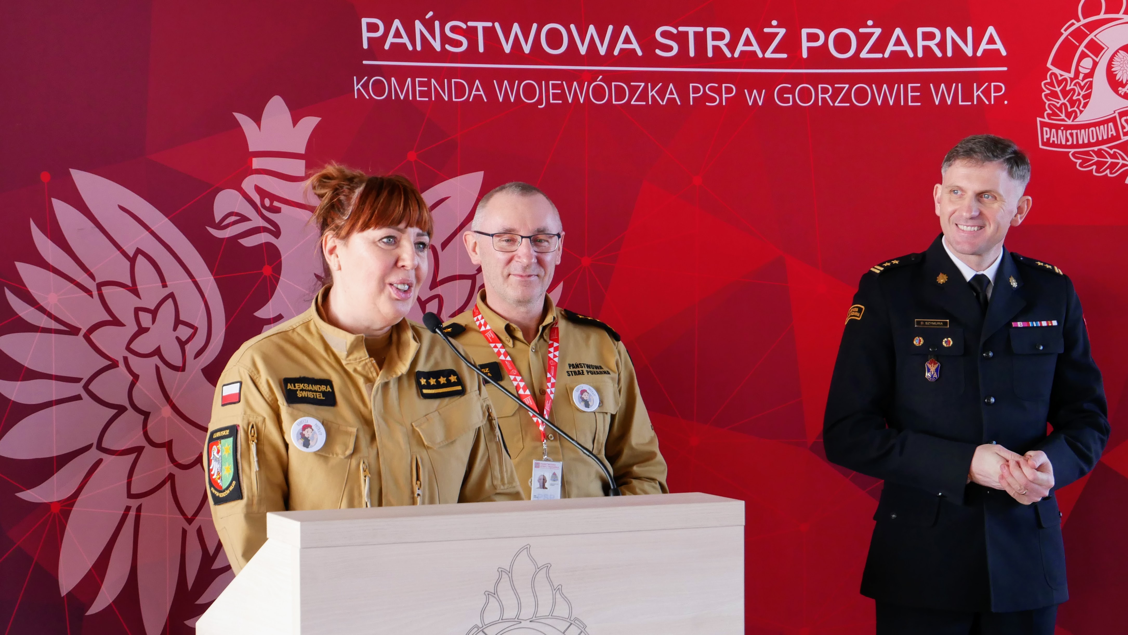 Panie gorąco powitali obecni na szkoleniu Lubuski Komendant Wojewódzki Państwowej Straży Pożarnej st. bryg. Janusz Drozda, Dyrektor Generalny Lubuskiego Urzędu Wojewódzkiego Radosław Wróblewski oraz Komendant Miejski PSP w Gorzowie Wielkopolskim bryg. Dariusz Szymura.