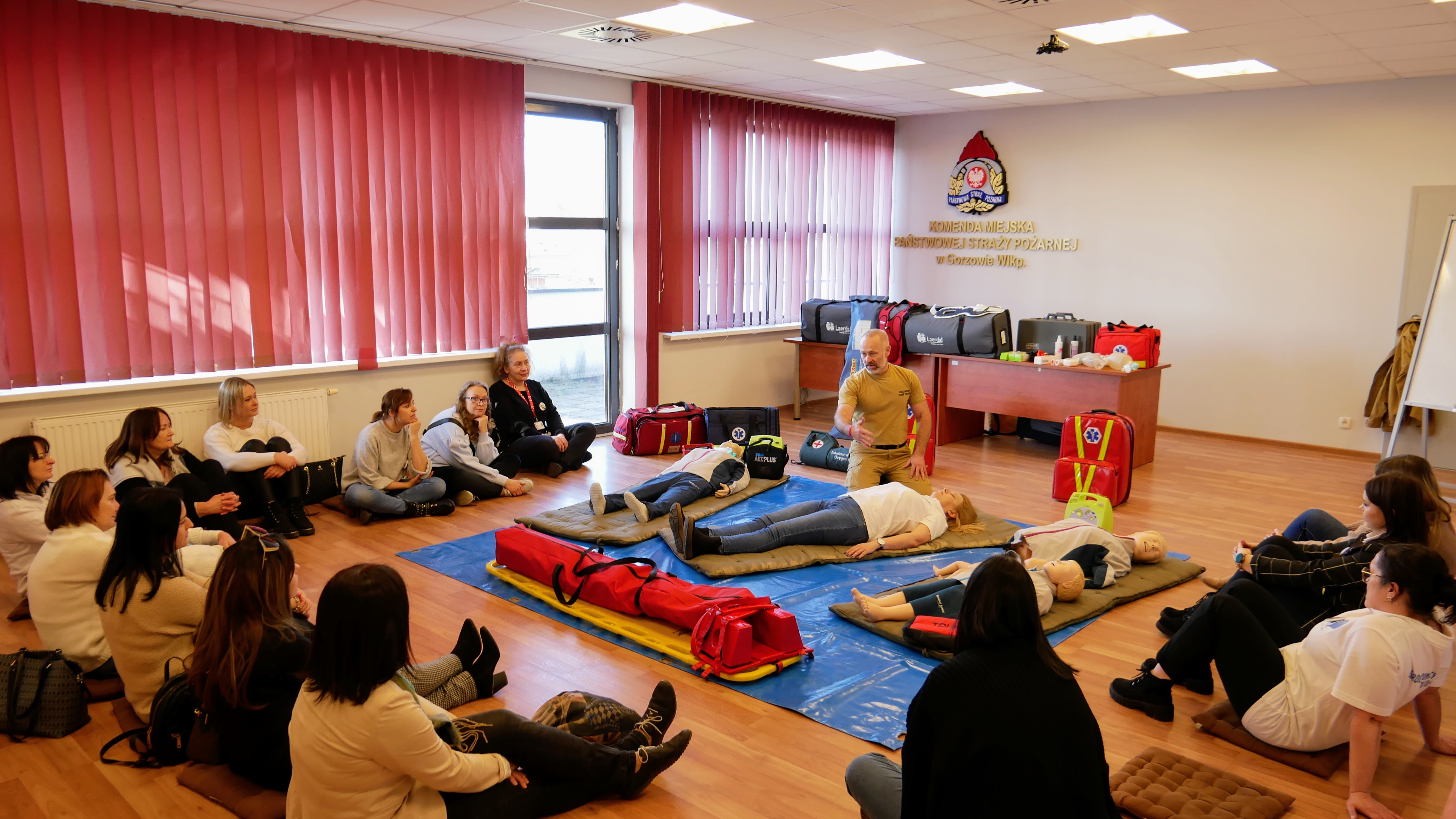 Jak co roku, uczestniczki zostały podzielone na grupy, które w cyklu rotacyjnym odwiedzały przygotowane przez strażaków stanowiska, przy których poruszane były zagadnienia z zakresu pierwszej pomocy przedmedycznej, ewakuacji osoby poszkodowanej z pojazdu, prawidłowego użycia gaśnicy, zapobiegania niebezpieczeństwom w domu oraz szybkiego podejmowania decyzji ratujących życie z wykorzystaniem świata wirtualnego.