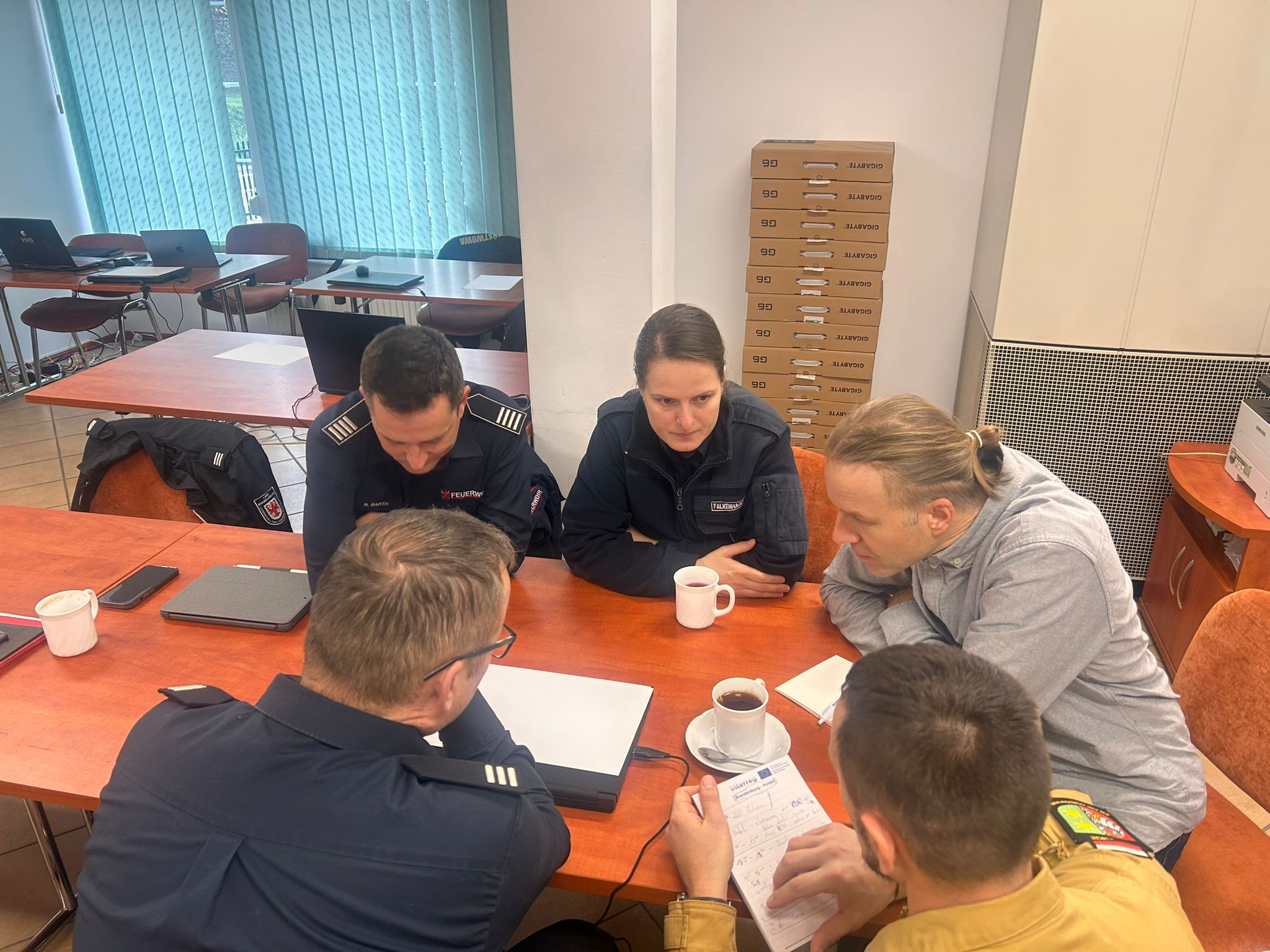 Podczas warsztatów uczestnicy trenowali umiejętności dydaktyczne, niezbędne do przeprowadzenia zajęć przy pomocy nowego narzędzia. Wartością dodaną spotkania było przedstawienie organizacji działań ratowniczo-gaśniczych w Polsce i w Niemczech oraz wymiana doświadczeń związanych z prowadzeniem akcji ratowniczych.