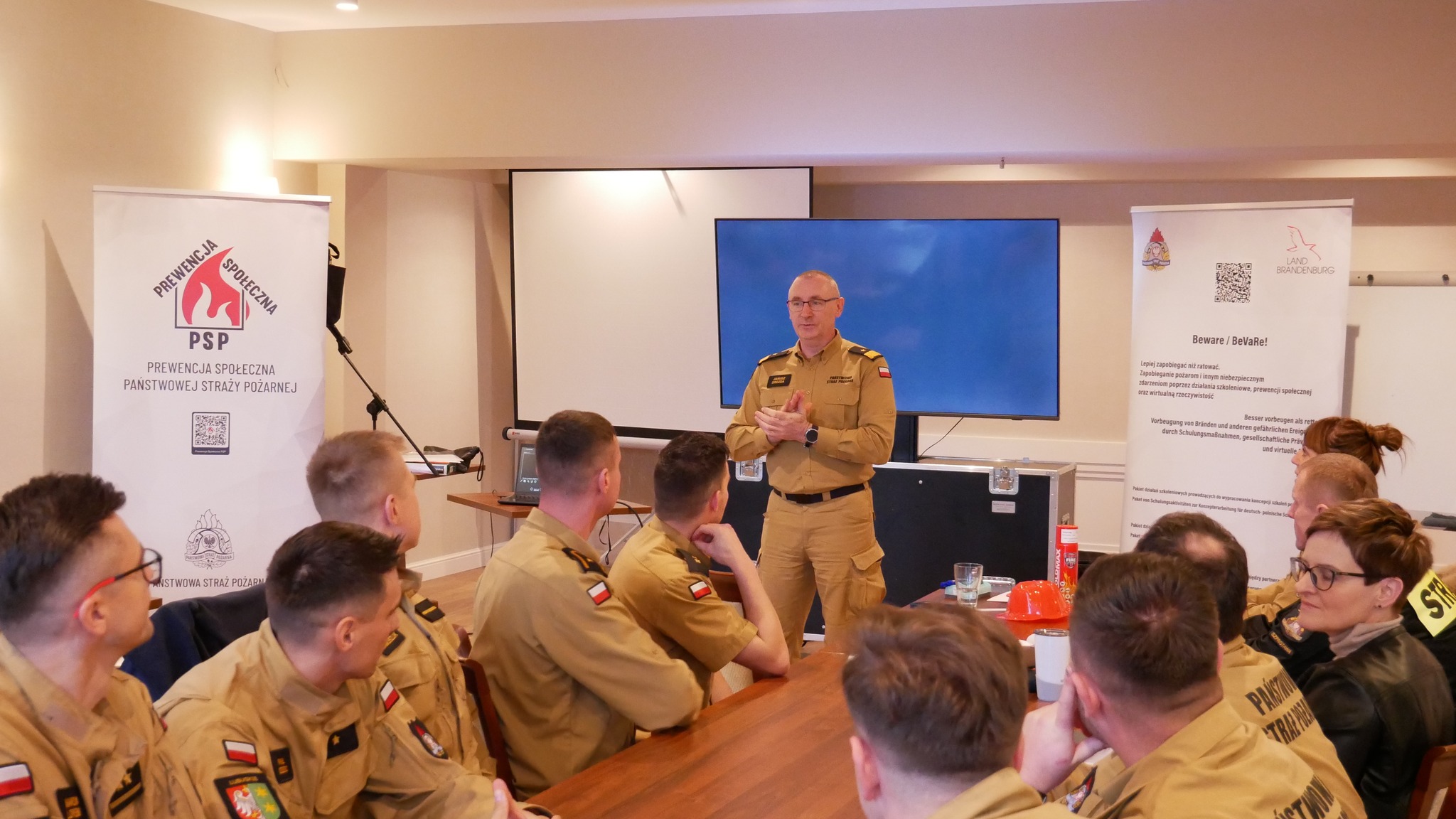 W warsztatach uczestniczyli powiatowi i miejscy koordynatorzy prewencji społecznej PSP województwa lubuskiego oraz partnerzy projektu „Lepiej zapobiegać niż ratować” z Landowej Szkoły Ochrony Przeciwpożarowej i przed Katastrofami LSTE w Eisenhüttenstadt.