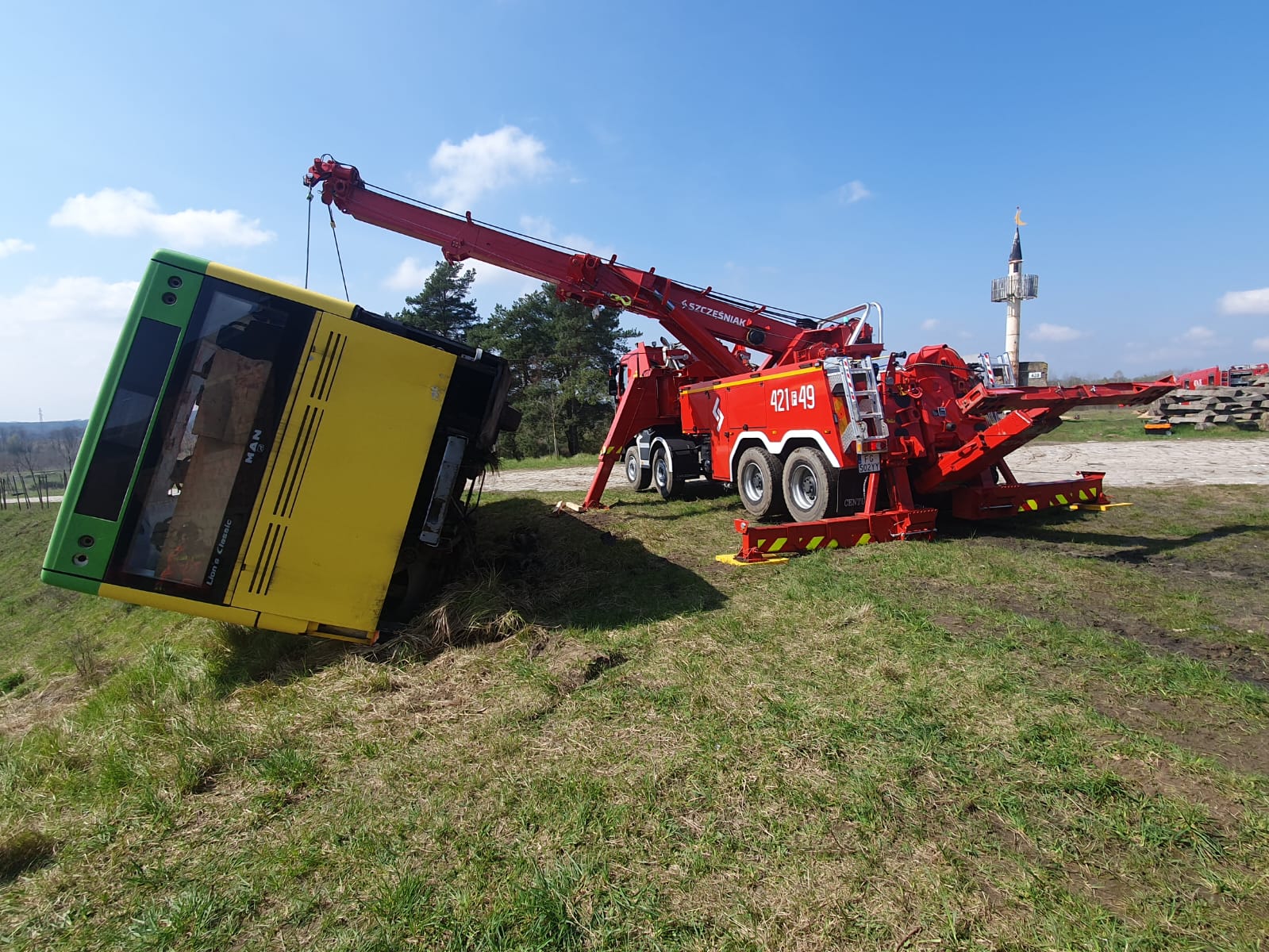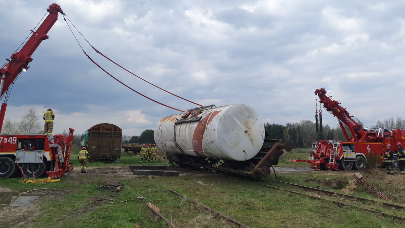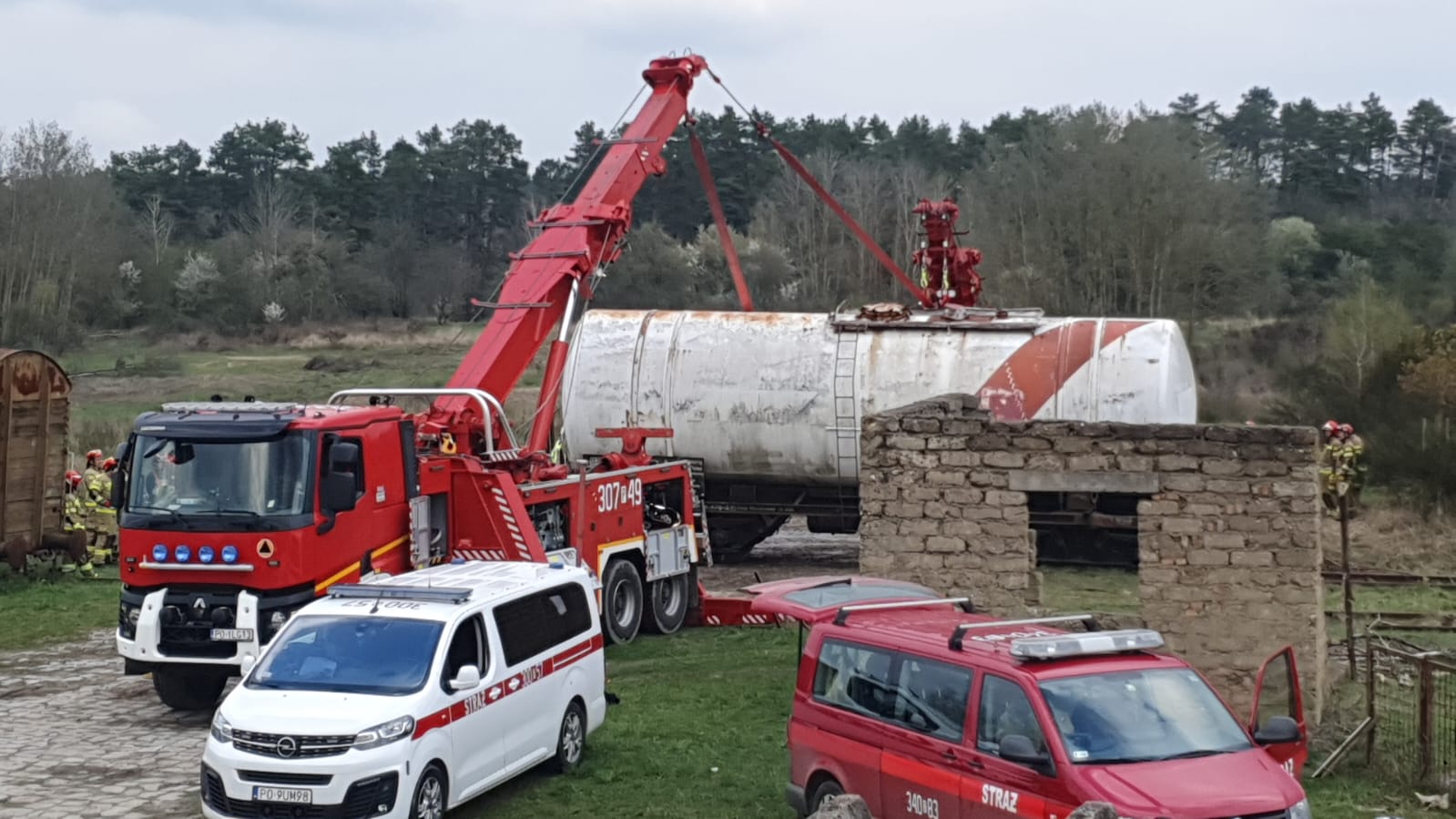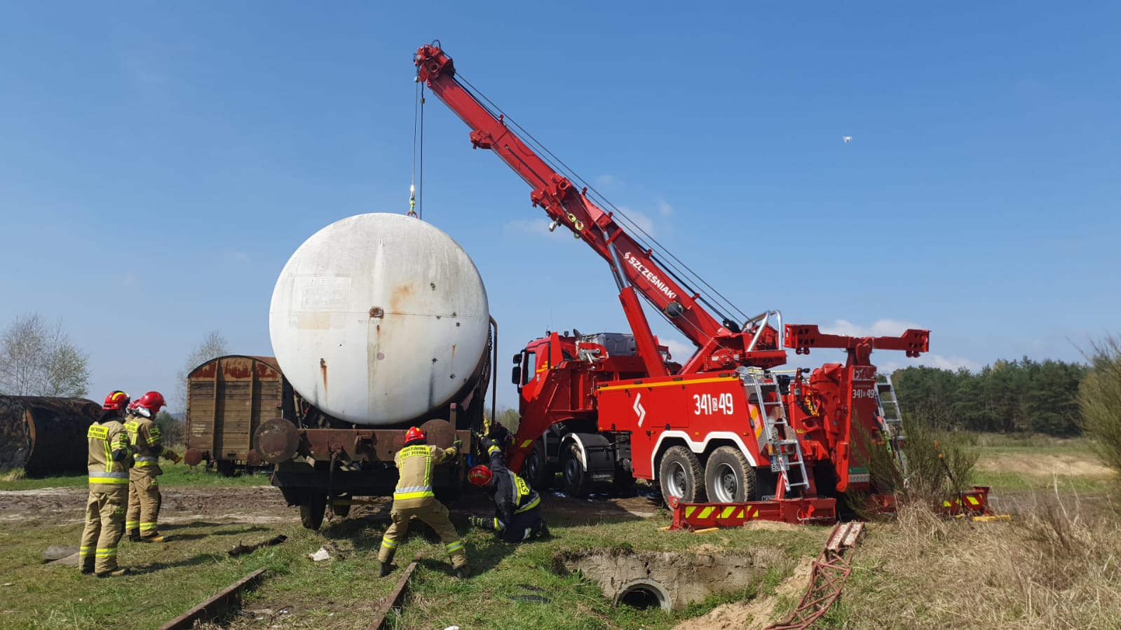 Dziś ćwiczyły Specjalistyczne Grupy Ratownictwa Technicznego z Poznania, Świebodzina, Torunia i Żnina. Celem warsztatów było wypracowanie zasad współpracy pomiędzy specjalistycznymi grupami ratownictwa technicznego podczas działań ratowniczych przy przemieszczaniu ładunków wielkogabarytowych oraz doskonalenie umiejętności wykorzystywania wyciągarek znajdujących się na zabudowie samochodu SCRT typu Rotator.