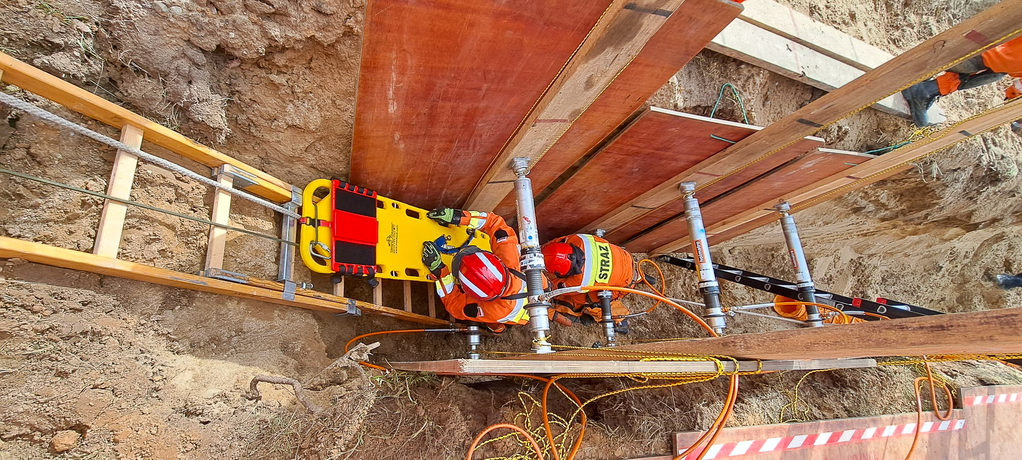 Zajęcia rozpoczęły się od wykładu poświęconego stabilizacji wykopów, po czym ratownicy przystąpili do ćwiczeń praktycznych. Podczas warsztatów przećwiczono między innymi: