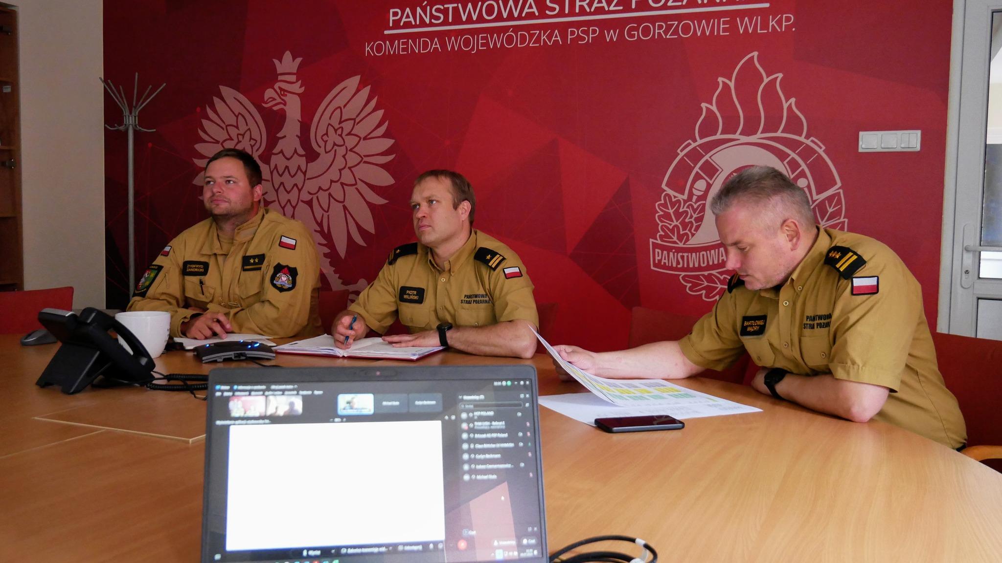 W wideokonferencji z ramienia Komendy Wojewódzkiej PSP w Gorzowie Wielkopolskim uczestniczył zastępca lubuskiego komendanta wojewódzkiego PSP st. bryg. Bartłomiej Mądry, naczelnik wydziału Planowania Operacyjnego mł. bryg. Piotr Wiliński oraz młodszy specjalista wydziału Informatyki i Łączności mł. kpt. Zygfryd Zandecki.