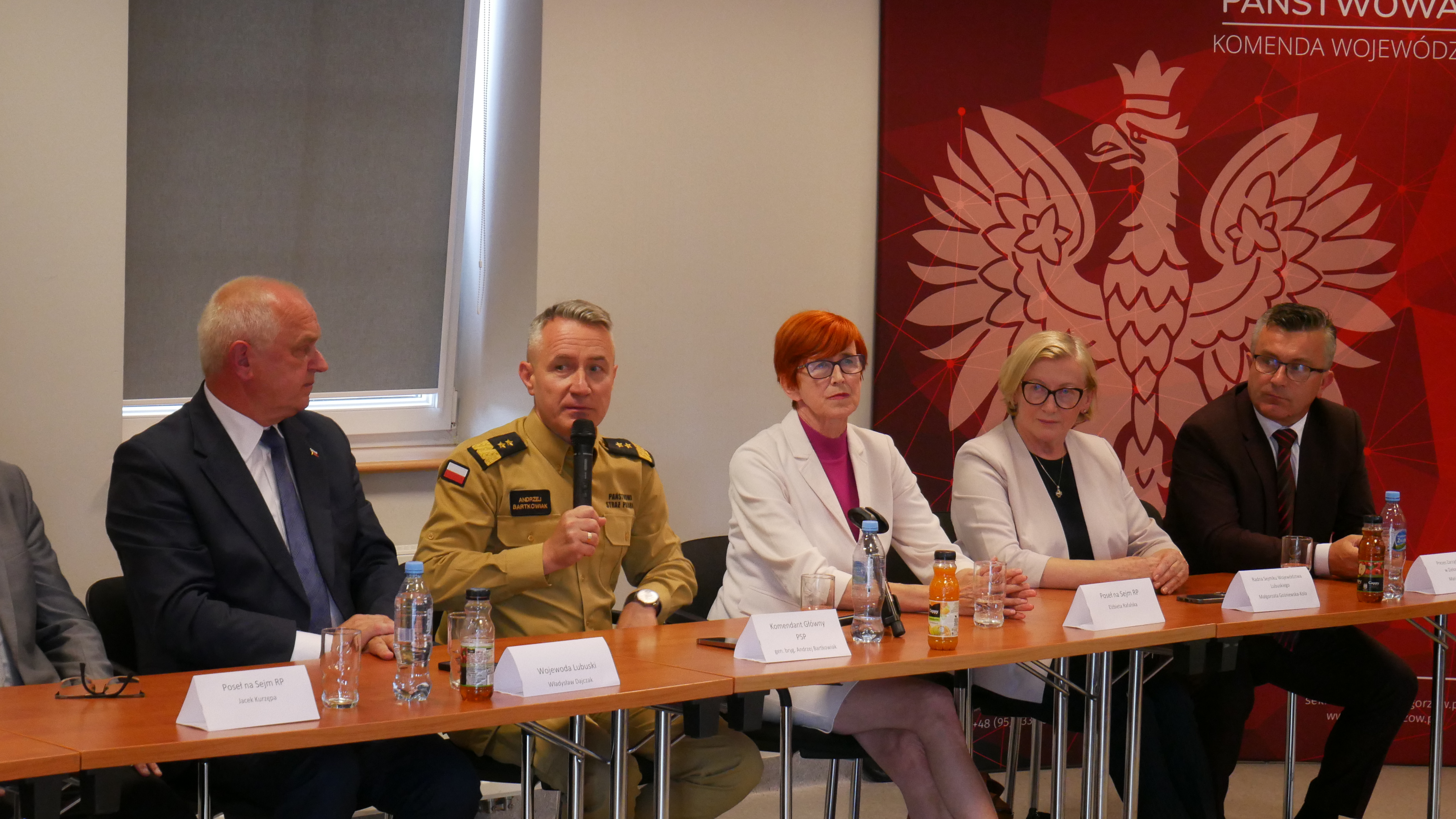 „Przyjechałem do województwa lubuskiego i Zielonej Góry nieprzypadkowo, dlatego, że chcę podziękować za ostatnią akcję w Przylepie, która według mojej oceny i wszystkich moich przyjaciół, którzy pracują w Komendzie Głównej, a ocena jest jedna – była dobrze przeprowadzoną akcją ratowniczo-gaśniczą. Chcę wszystkich mieszkańców Zielonej Góry i Przylepu uspokoić. Na strażaków zawsze możecie liczyć i to co robiliśmy - robiliśmy w sposób profesjonalny i nigdy by nam do głowy nie przyszło, żeby zadziałać inaczej (…)”