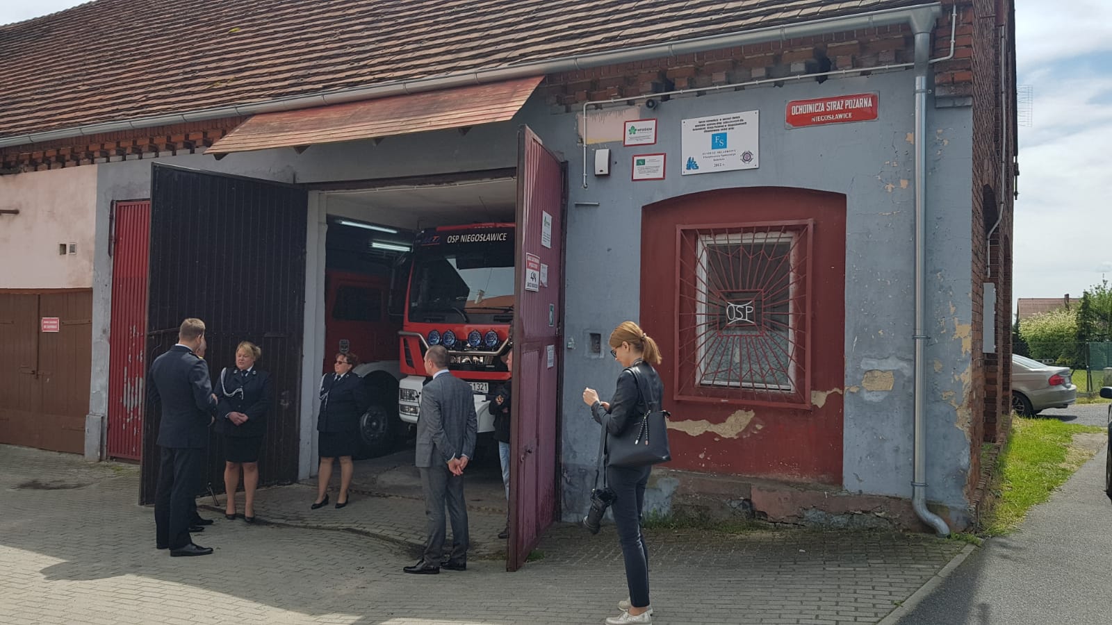 w Niegosławicach w powiecie żagańskim. Jednostkę OSP reprezentowali Pani Prezes OSP druhna Małgorzata Łozowska w asyście druhów ochotników. Wizyta w remizie była okazją do zapoznania