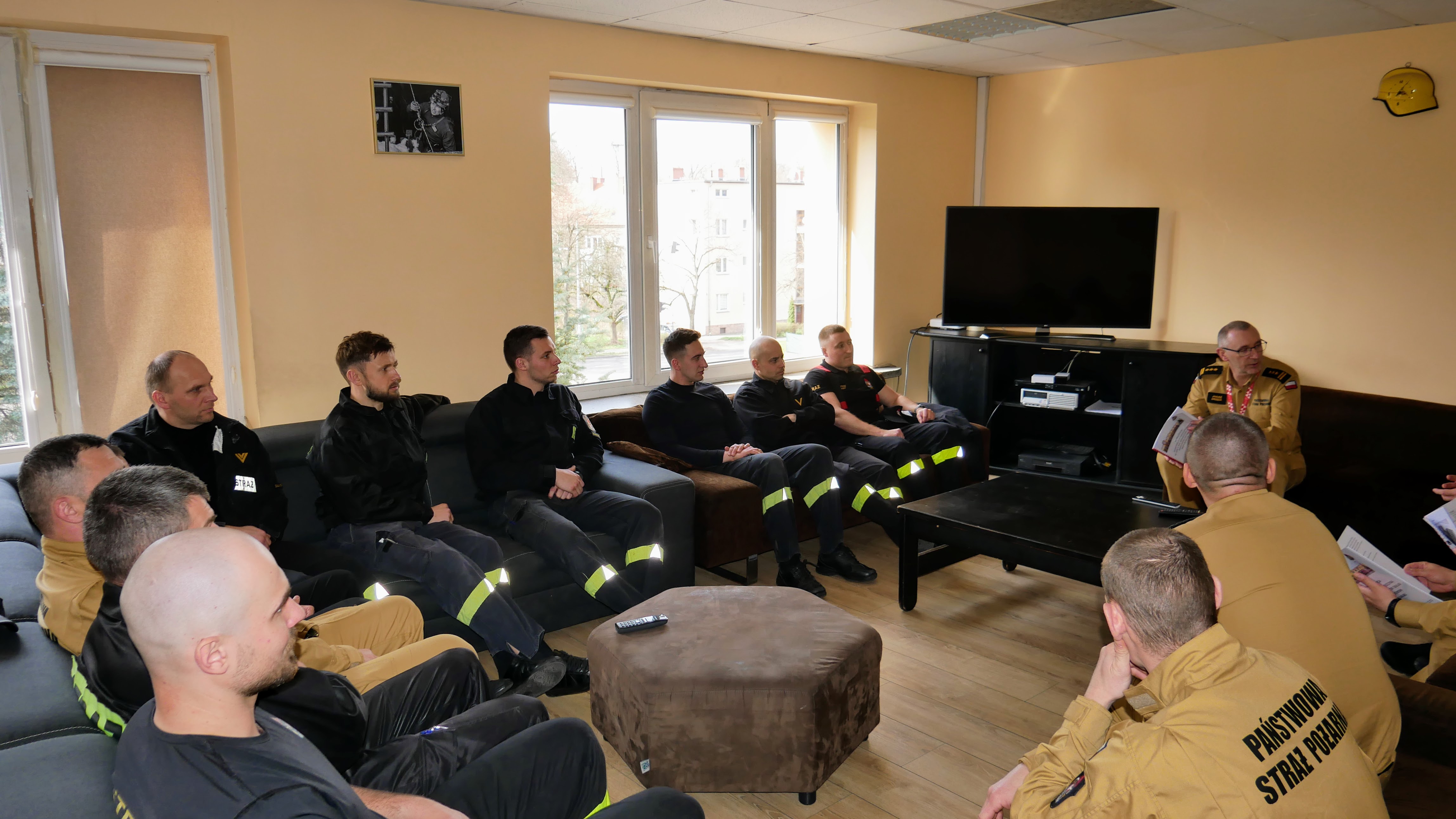 Wizyta była także okazją do spotkania ze strażakami, na co dzień pełniącymi służbę w JRG1. Zielonogórska jednostka to największa ze wszystkich w powiecie. Pełni w niej służbę 50 ratowników z czego codzienna zmiana służbowa liczy 10 strażaków. Cechą charakterystyczną pierwszego oddziału Komendy Miejskiej PSP w Zielonej Górze, jest podwójna specjalizacja.