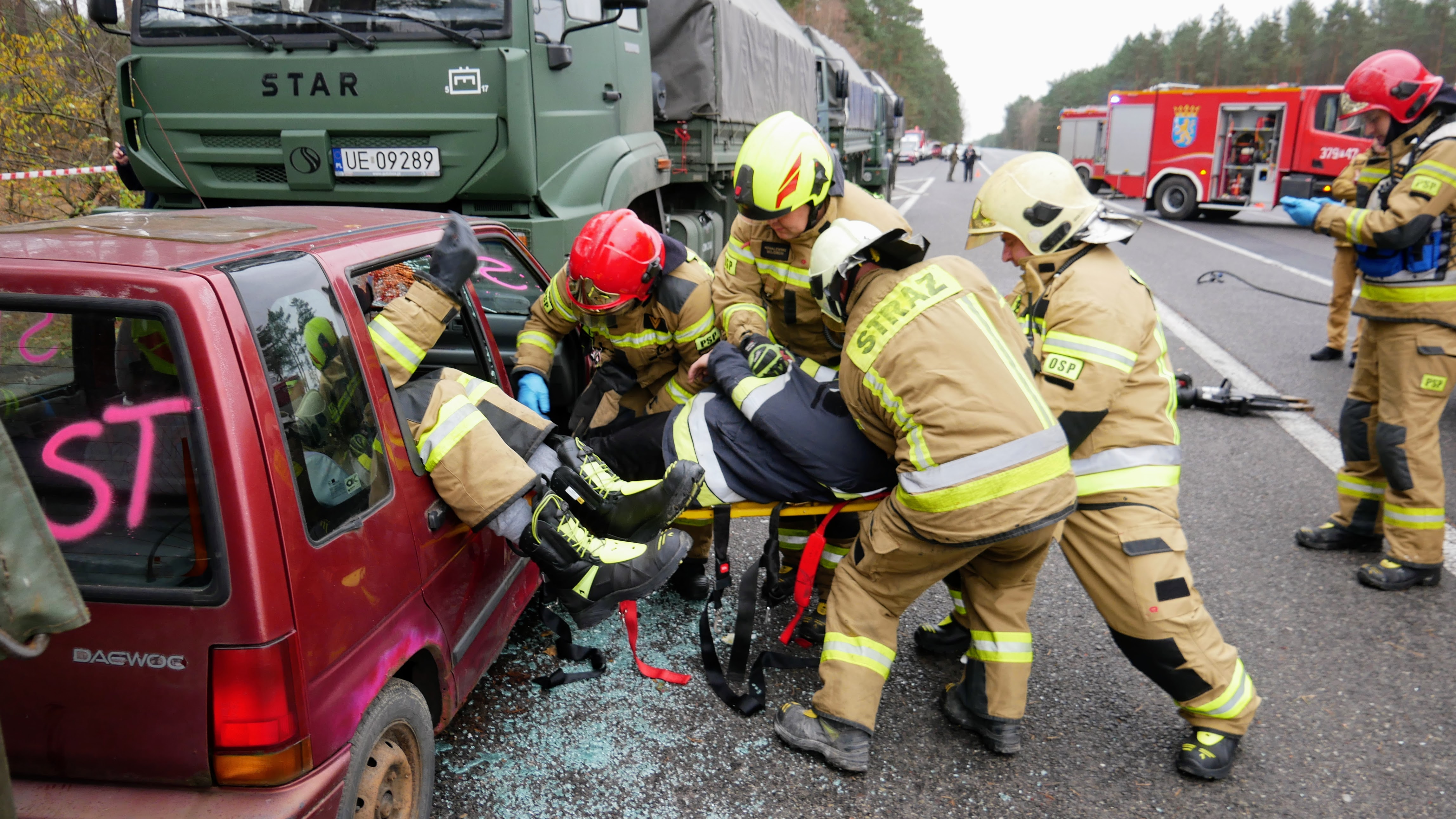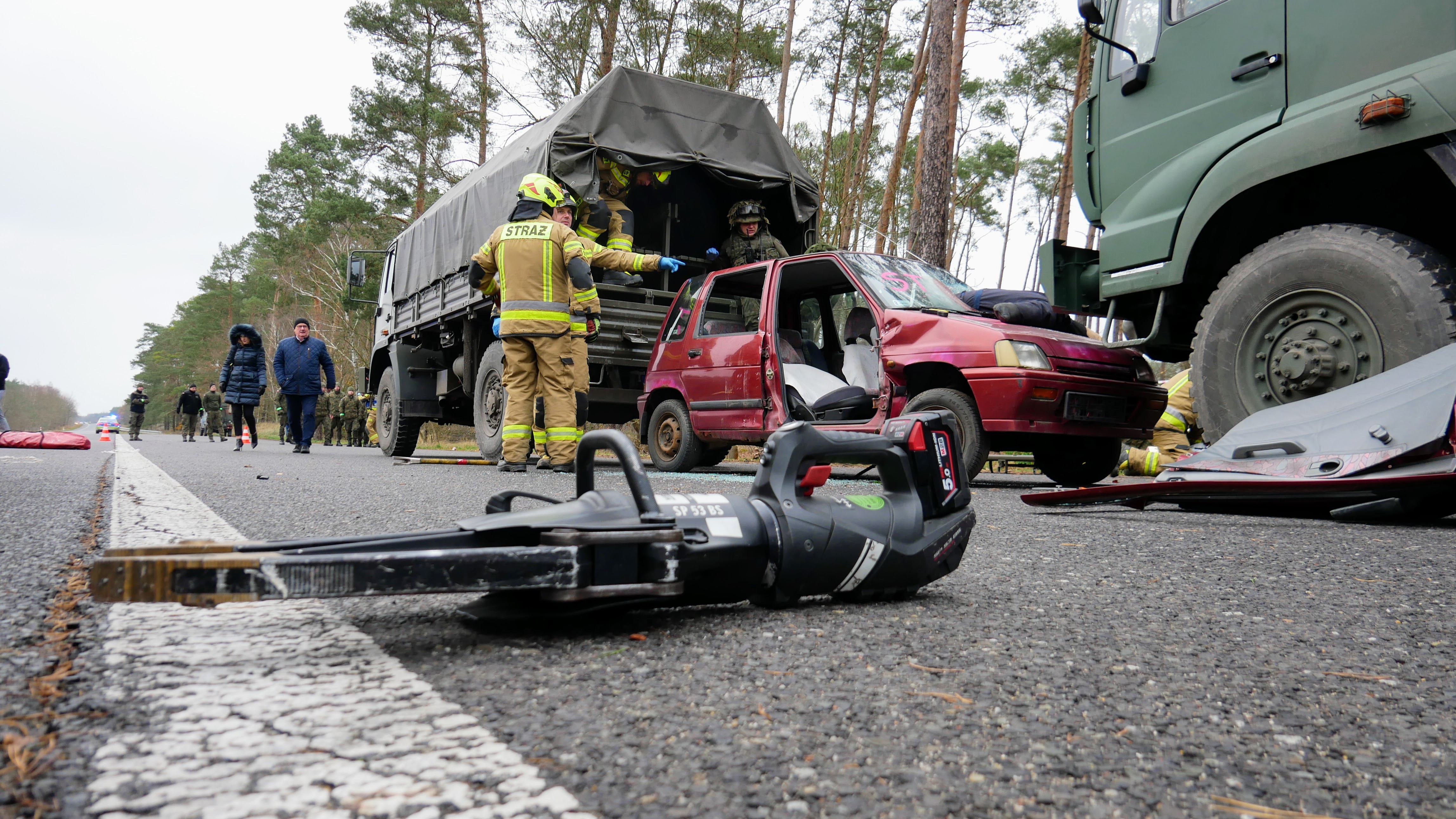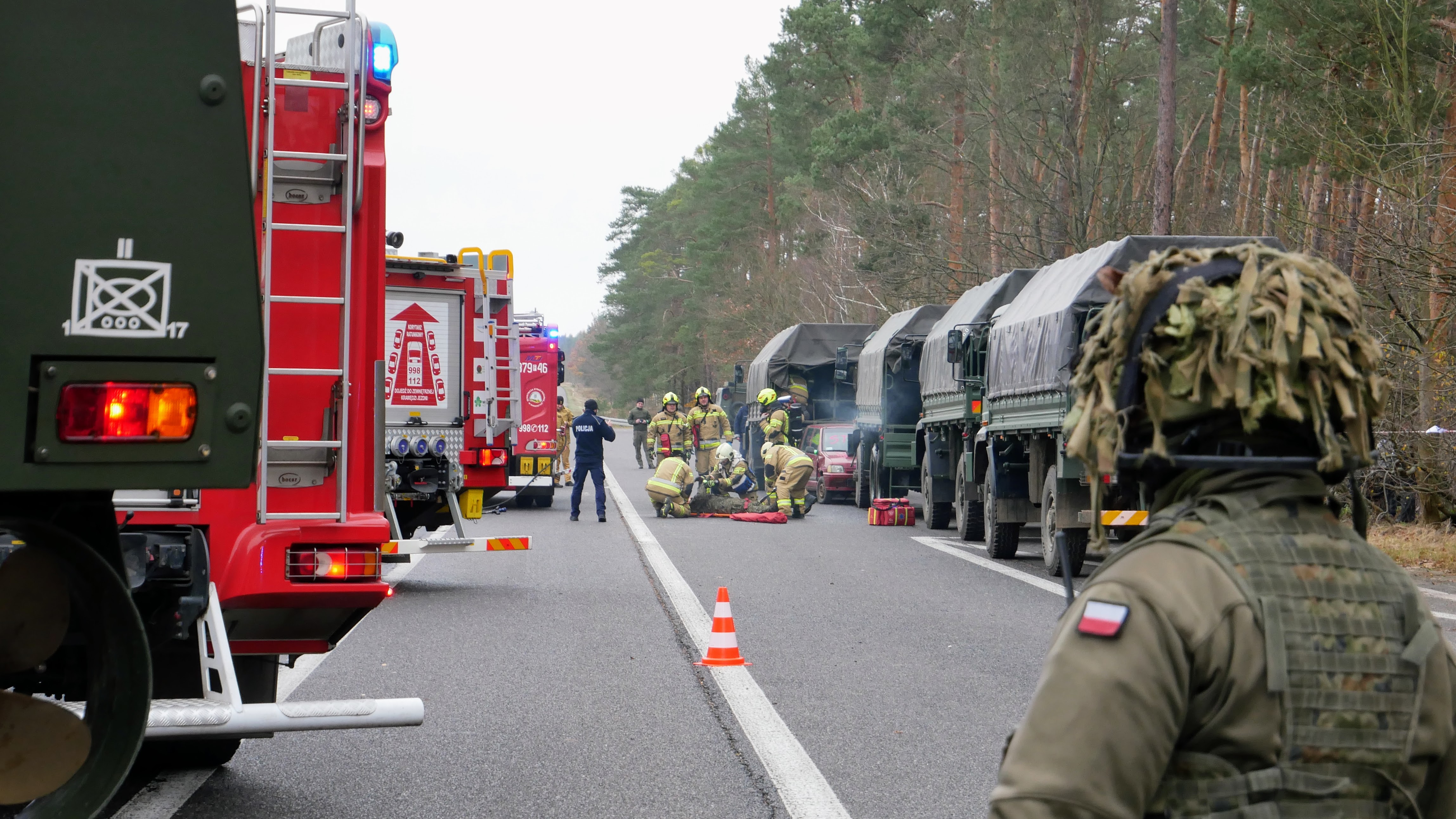 W drugim dniu, scenariusz zakładał wypadek komunikacyjny z udziałem samochodu osobowego i kolumny wojskowej transportującej żołnierzy. W wyniku zdarzenia doszło do pożaru jednego z pojazdów wojskowych. Przybyli na miejsce strażacy mieli za zadanie opanowanie pożaru, ewakuację osób poszkodowanych z pojazdów oraz zabezpieczenie medyczne rannych uczestników zdarzenia.
